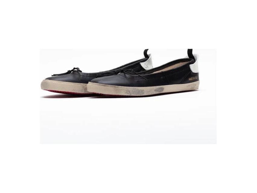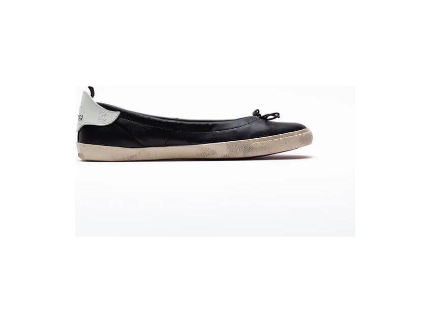 Discover the Amy Black/Ivory Ballerina, a bold fusion of classic elegance and urban style. Inspired by traditional French ballerinas, this shoe combines the comfort of a sneaker with the finesse of a dancer thanks to its premium leather and innovative all-around elastic. Its slightly worn look reflects the brand's rebellious spirit, bringing a unique touch to your outfit. Easy to wear, it brilliantly combines streetwear and sophistication to enhance your everyday style.