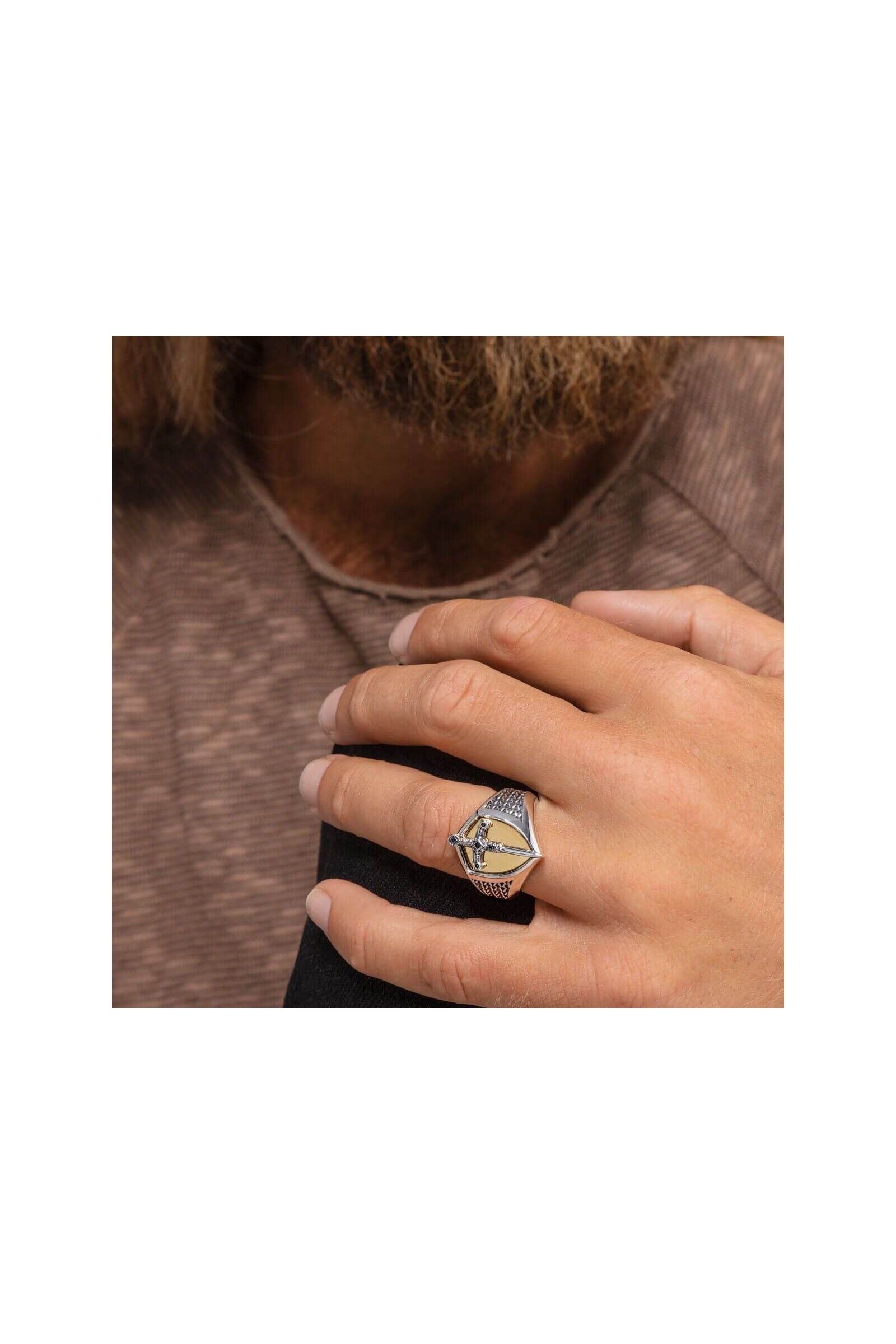 Discover the gold sword ring, a unique piece of jewelry that combines elegance and a symbol of power. Crafted from blackened 925 sterling silver, it features black zirconia stones on a yellow gold-plated insert, enhanced with a fine THOMAS SABO engraving. Inspired by the Rebel at Heart collection, this signet ring embodies strength and dignity, lending exceptional charisma to your style. A sophisticated accessory that fascinates with its legendary design and remarkable quality