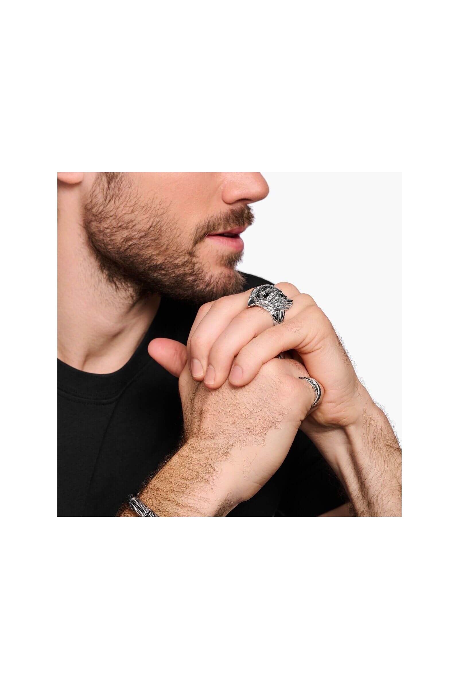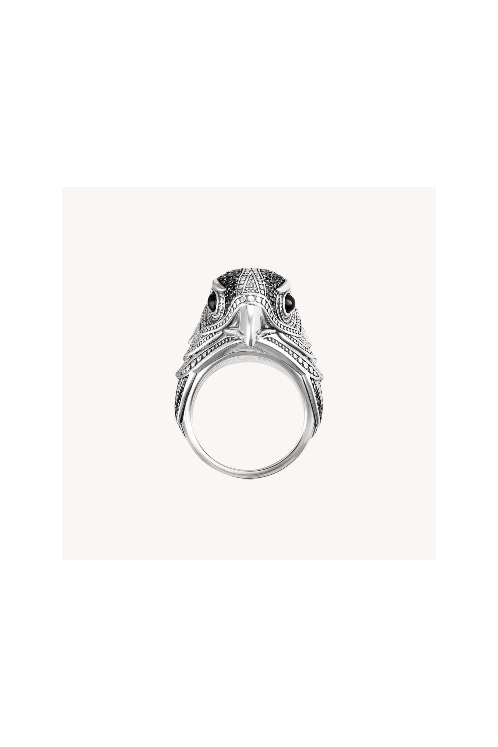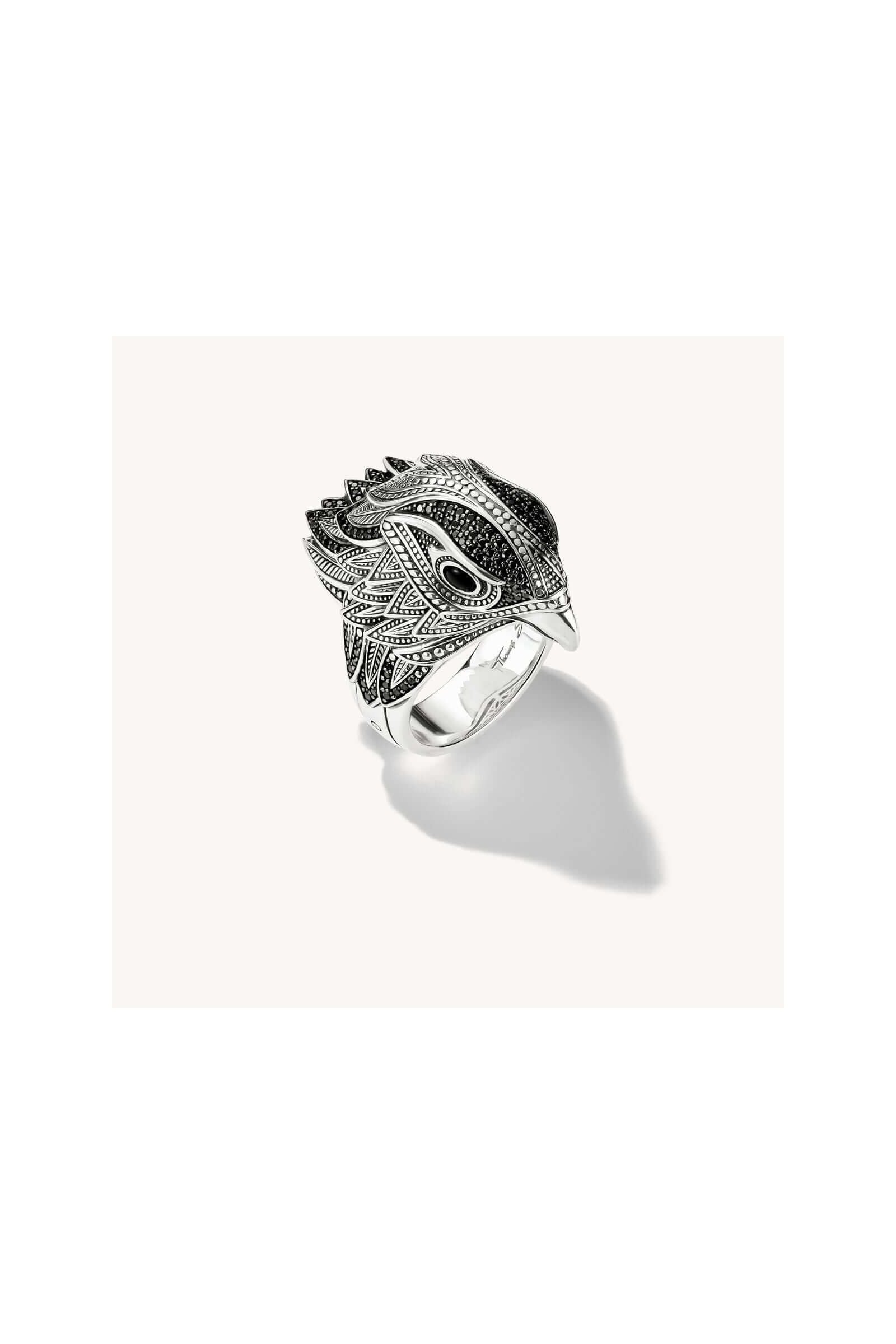 Bring a touch of boldness and elegance to your style with this falcon ring. Its brilliant onyx eyes and delicately shimmering plumage captivate the eye, making this piece of jewelry an expressive and unique accessory. Available exclusively in our THOMAS SABO online and physical stores, it subtly underlines your personality
