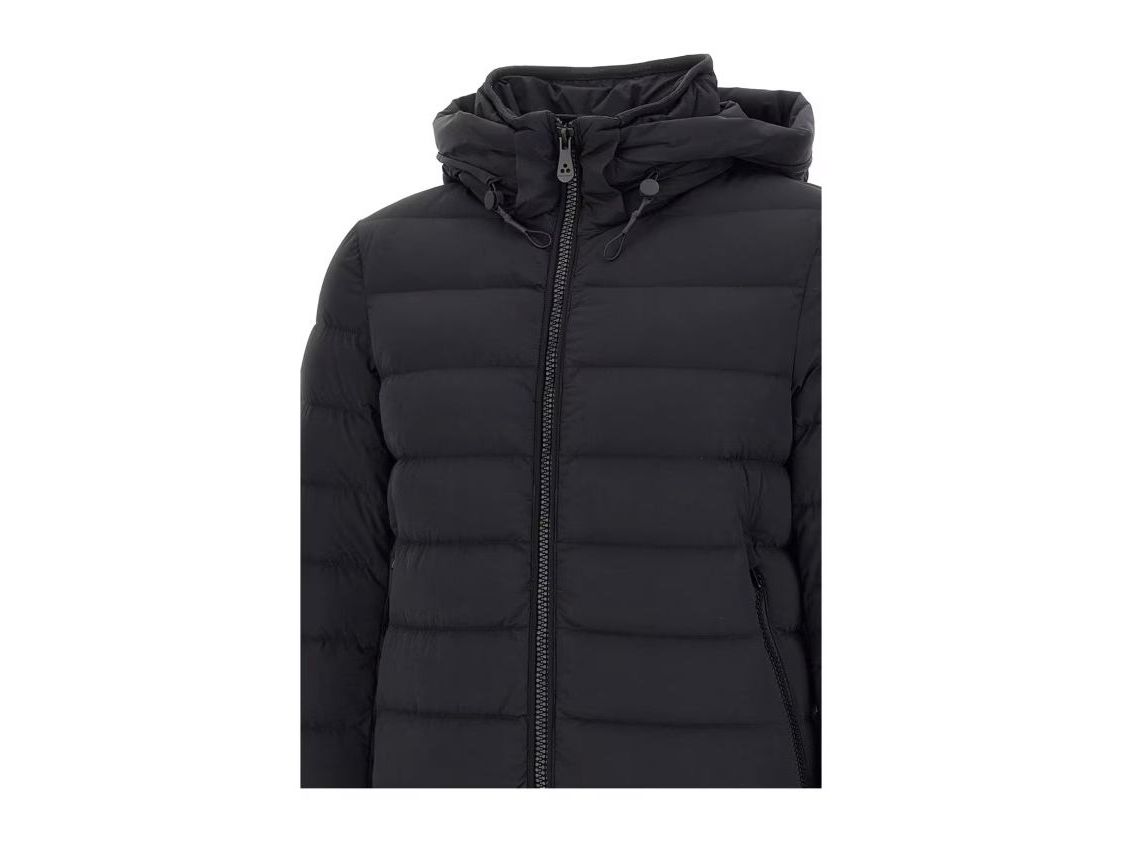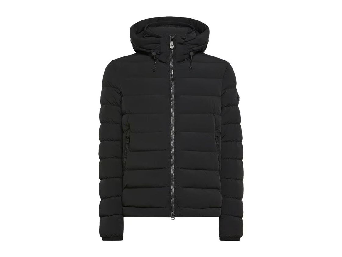Get ready for fall and winter with Peuterey's CARENA jacket. Its sleek black cut and horizontal quilted panels give it a modern and refined look. The zipper up to the high collar effectively protects from the cold, while the quilted hood guarantees warmth and comfort. Practical, it features two zippered side pockets to keep your essentials safe. With its discreet branding on the left sleeve, this jacket combines style and functionality to accompany you in style all season long.