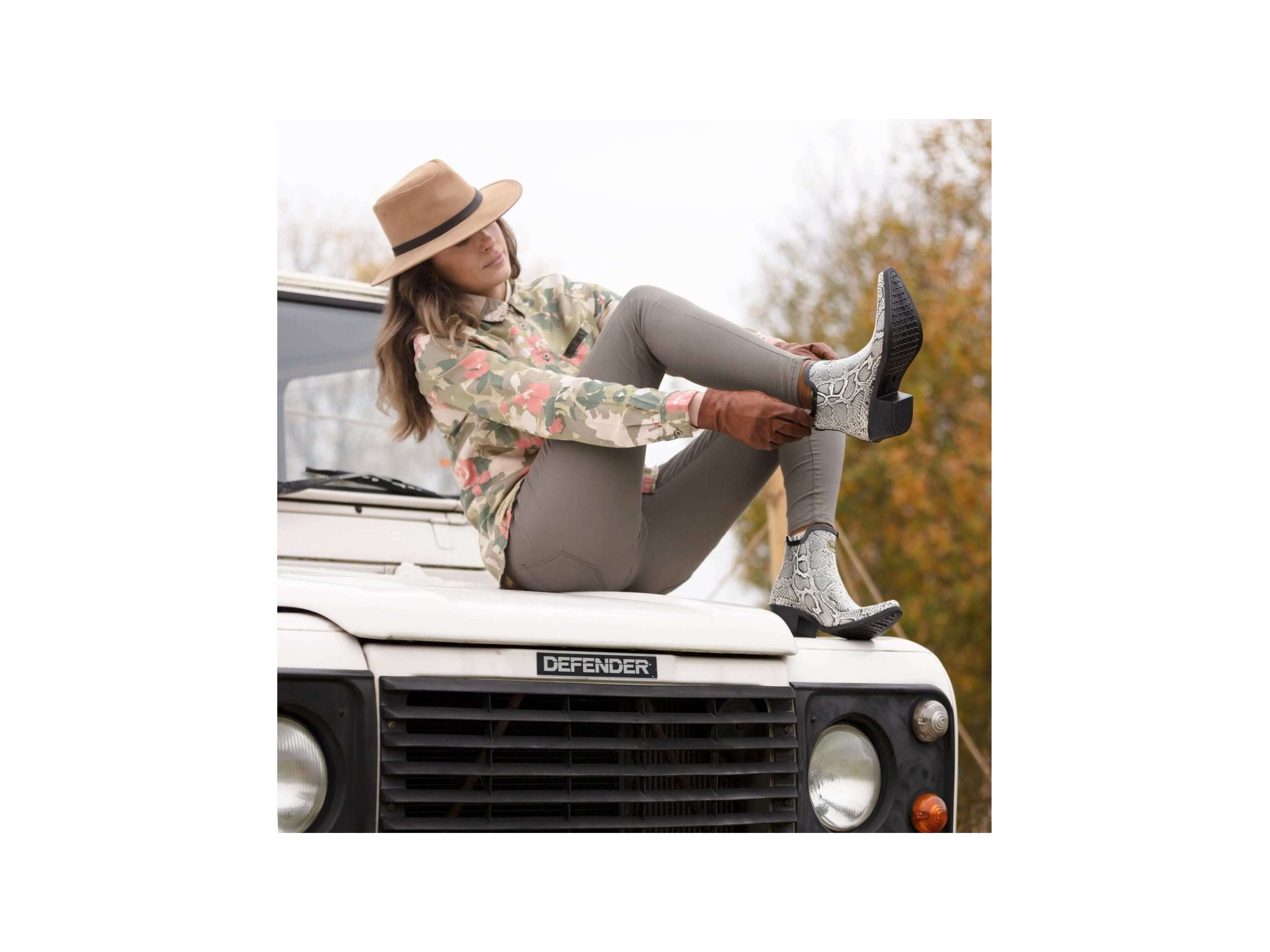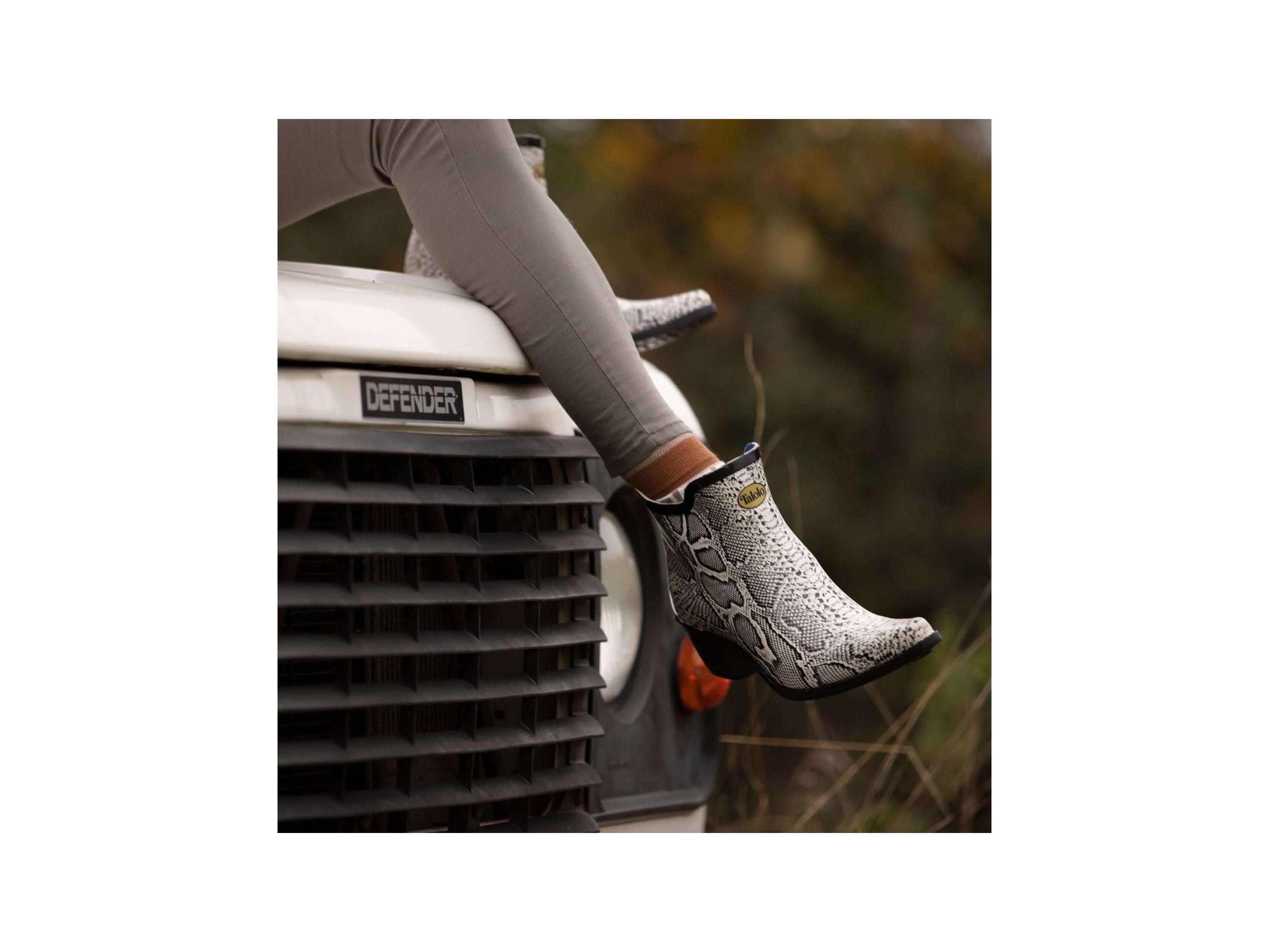 Snake print is a staple in modern footwear, which is why we've introduced it as an ankle cowboy boot, in a slightly more subdued print than the Bandy Snake calf-high boot.