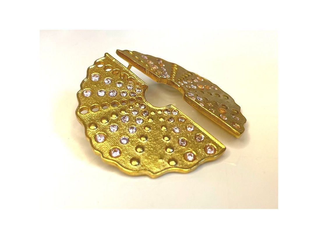 Discover the authentic elegance of our Corsican Half Sea Urchin earrings, plated in 18-carat gold for a luxurious finish. Their half-sea urchin design, available in green or pink, enhances your style with a Mediterranean marine touch. Lightweight and measuring 4 cm, they offer optimal comfort, worn as a single earring for a modern look or in pairs for added sophistication. Pair them with the Acqua Pregna collection or the full sea urchin earrings for a harmonious and unique ensemble.
