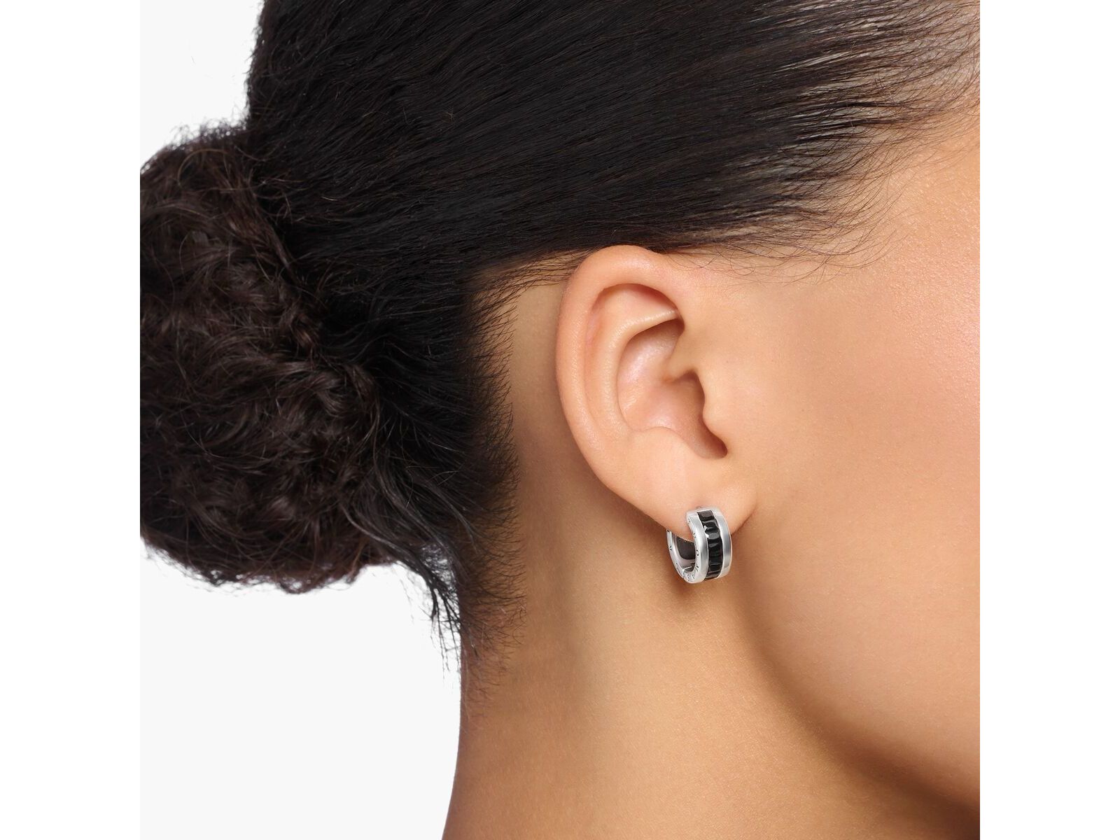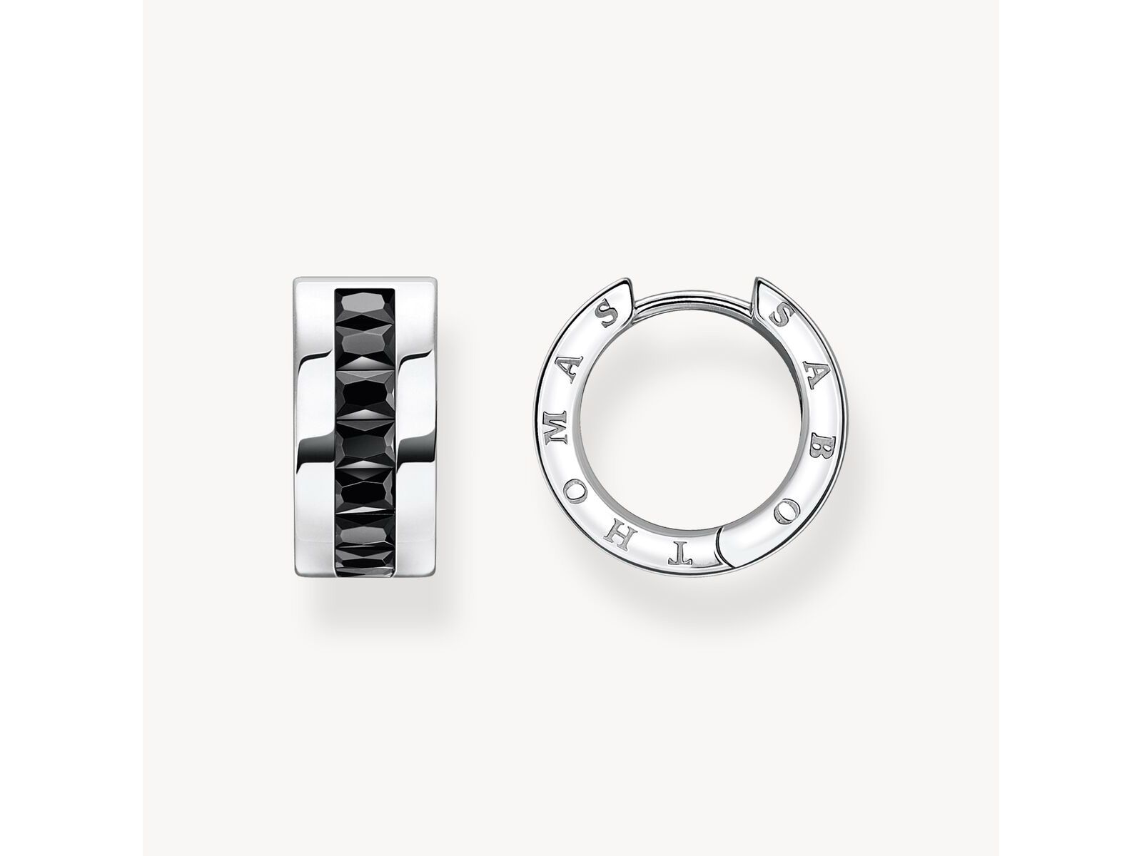 These hoop earrings in lightly blackened 925 sterling silver combine elegance and modernity. Adorned with hand-set baguette-cut black zirconia stones, they capture the light with intensity. Their refined design, enhanced by the THOMAS SABO engraving on the sides, will accompany you every day, alone or combined with other jewelry for a unique and sophisticated style.