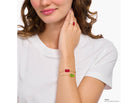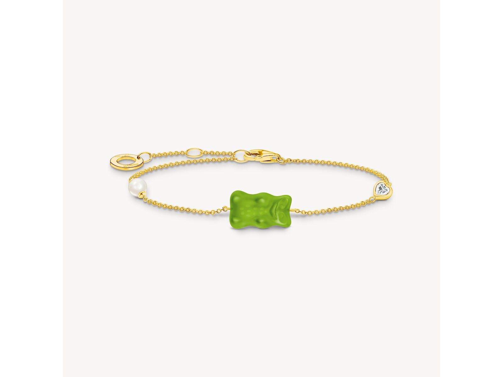 This bracelet combines elegance and originality with its HARIBO golden bear in satin green crystal, faithful to the original and shock-resistant. Made of 18-carat gold-plated recycled silver, it adapts perfectly to your wrist thanks to its adjustable length of 16 to 19 cm. The delicate touch of the freshwater pearl and the heart-shaped white zirconia bring a subtle refinement to enhance all your outfits. A unique piece of jewelry that combines responsible luxury and attractive design.