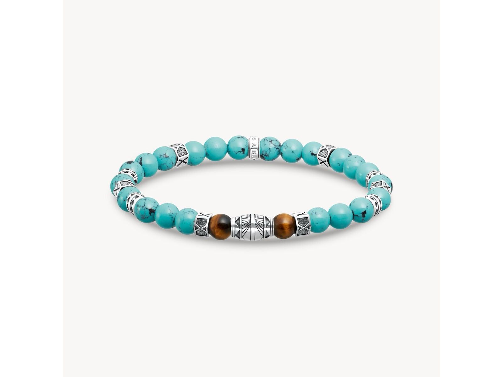 BRACELET WITH TURQUOISE BEADS AND TIGER'S EYE BEADS SILVER