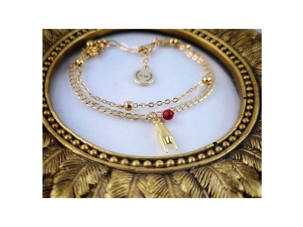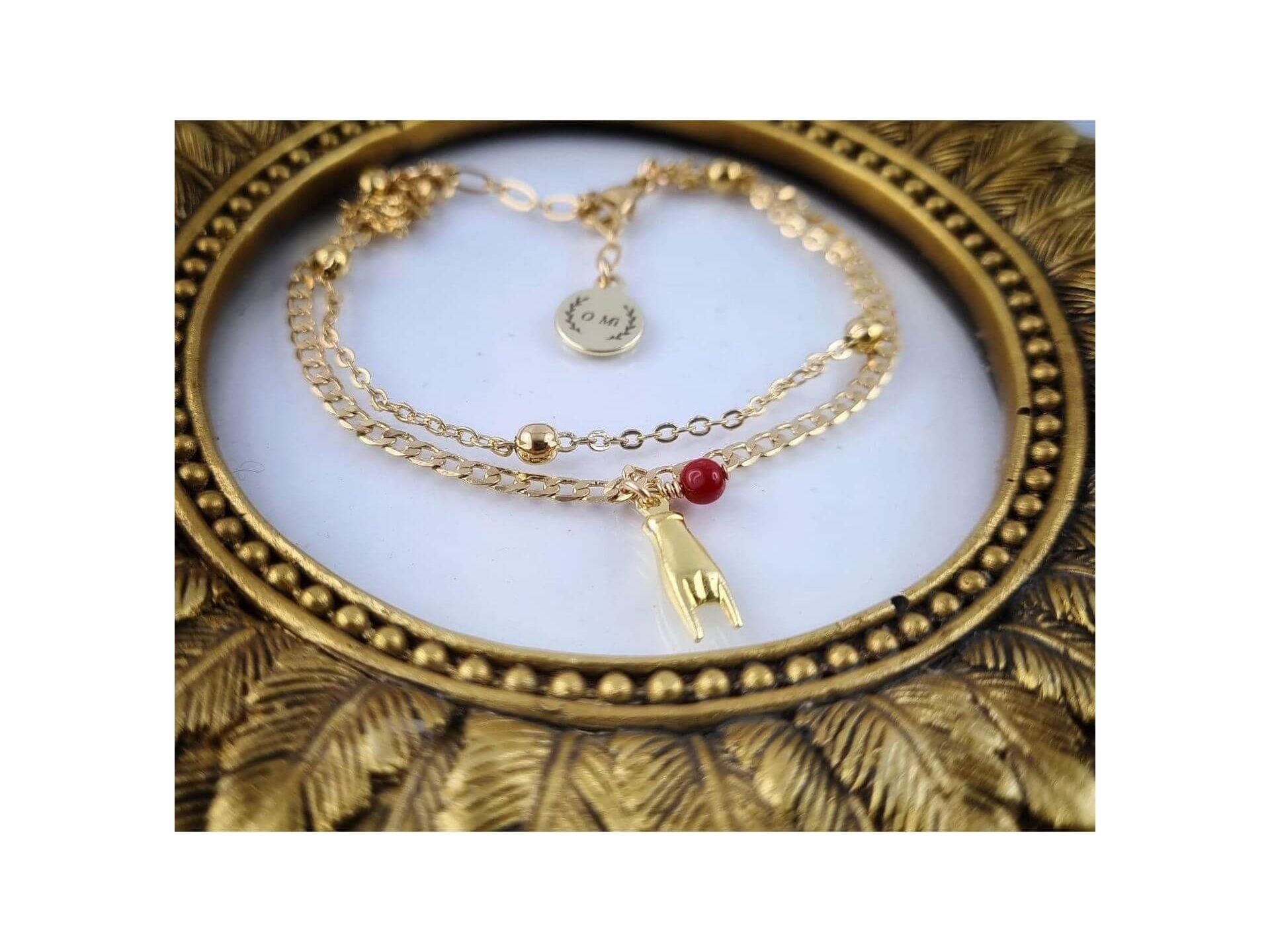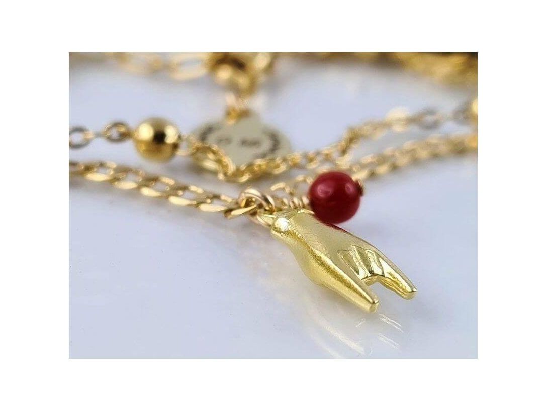 Wear this beautiful double-strand bracelet with its vermeil and red coral pendant to protect yourself from negative energy. Crafted with care and fine attention to detail, this piece is plated in 18-karat gold for a touch of luxury. Don't resist its charm, but remove it before showering.