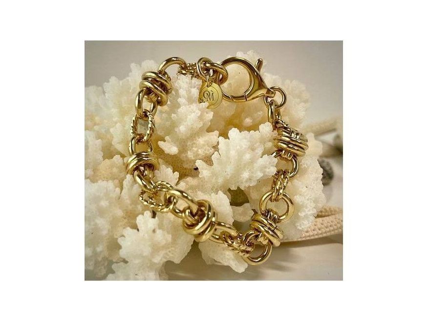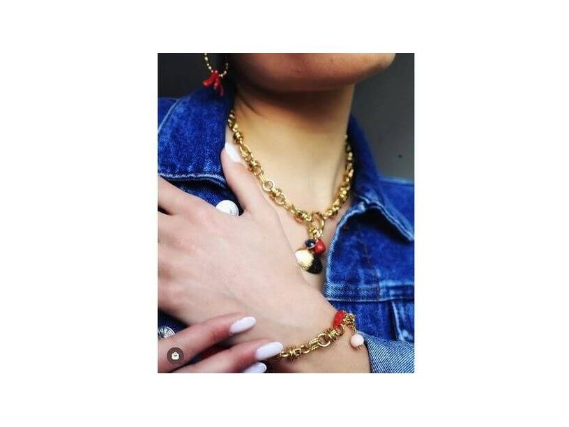 This 24-carat gold-plated bracelet, with its wide, 1cm-long chain with intertwined links, is the ideal piece of jewelry for stacking your charms as you wish. Its sunny charm recalls the beautiful days spent in Porto-Vecchio. Made by a Parisian gilder, it is protected by a varnish for exceptional durability and shine.