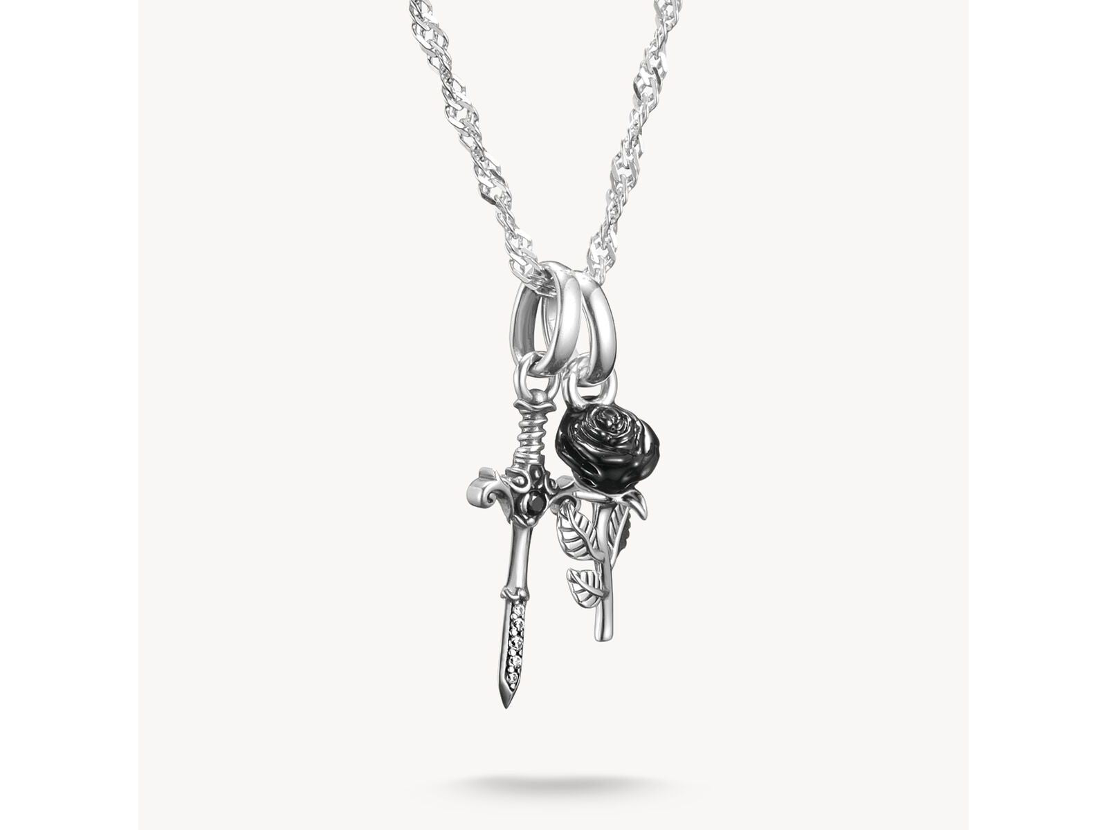 CHAÎNE ÉPÉE ET ROSE EN ZIRCONIUM – PENDENTIF TRUE ROMANCE ARGENT