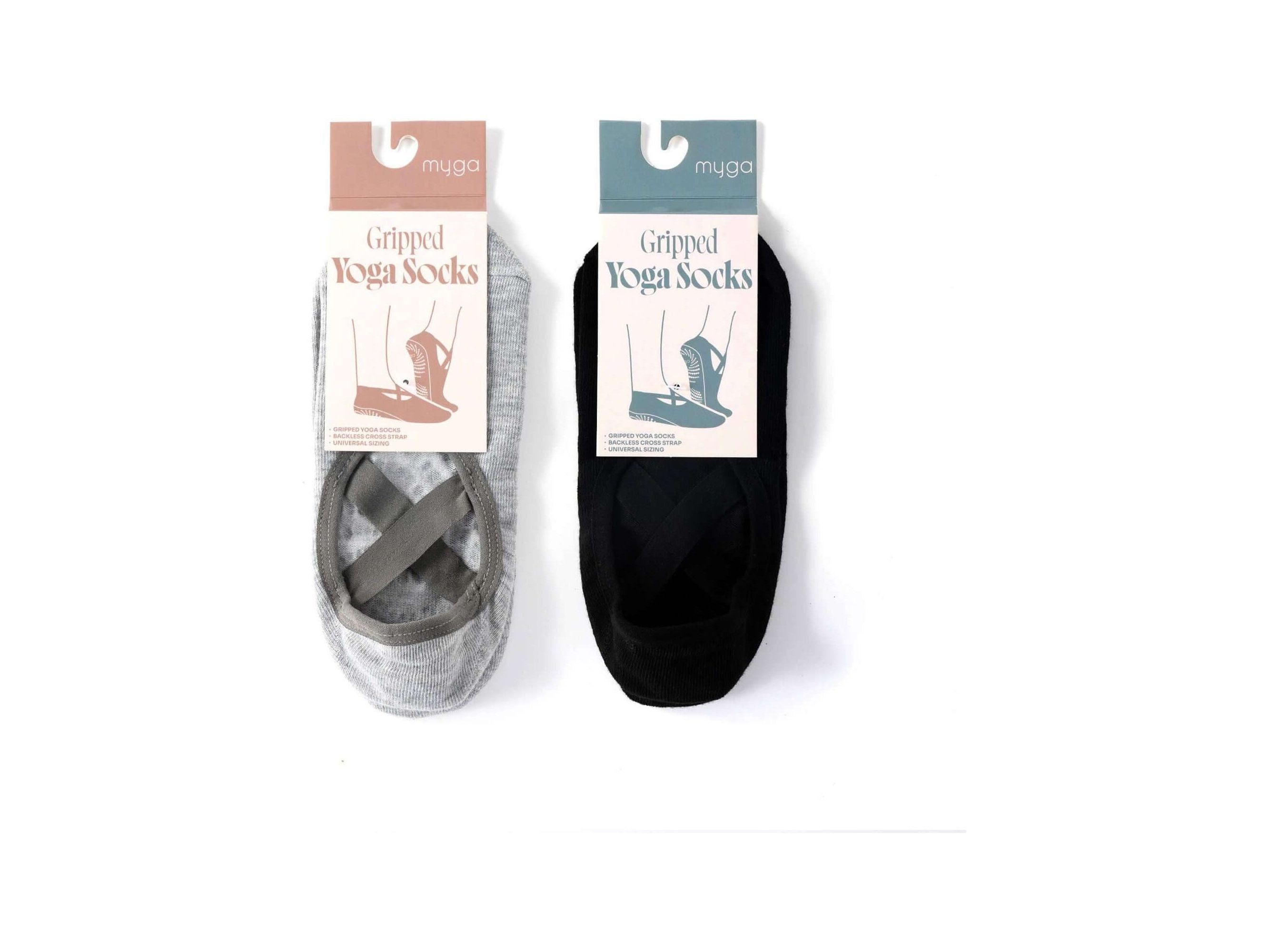 Improve stability and comfort with Myga Gripped Yoga Socks, perfect for yoga, Pilates, barre, and home workouts. Made from 100% polyester, these durable socks feature non-slip silicone soles to prevent slipping, providing superior traction on all surfaces. The crisscross strap design ensures the socks stay in place, providing secure foot support during intense sessions. Ideal for yogis of all levels, they help maintain balance and focus while keeping your feet comfortable.
