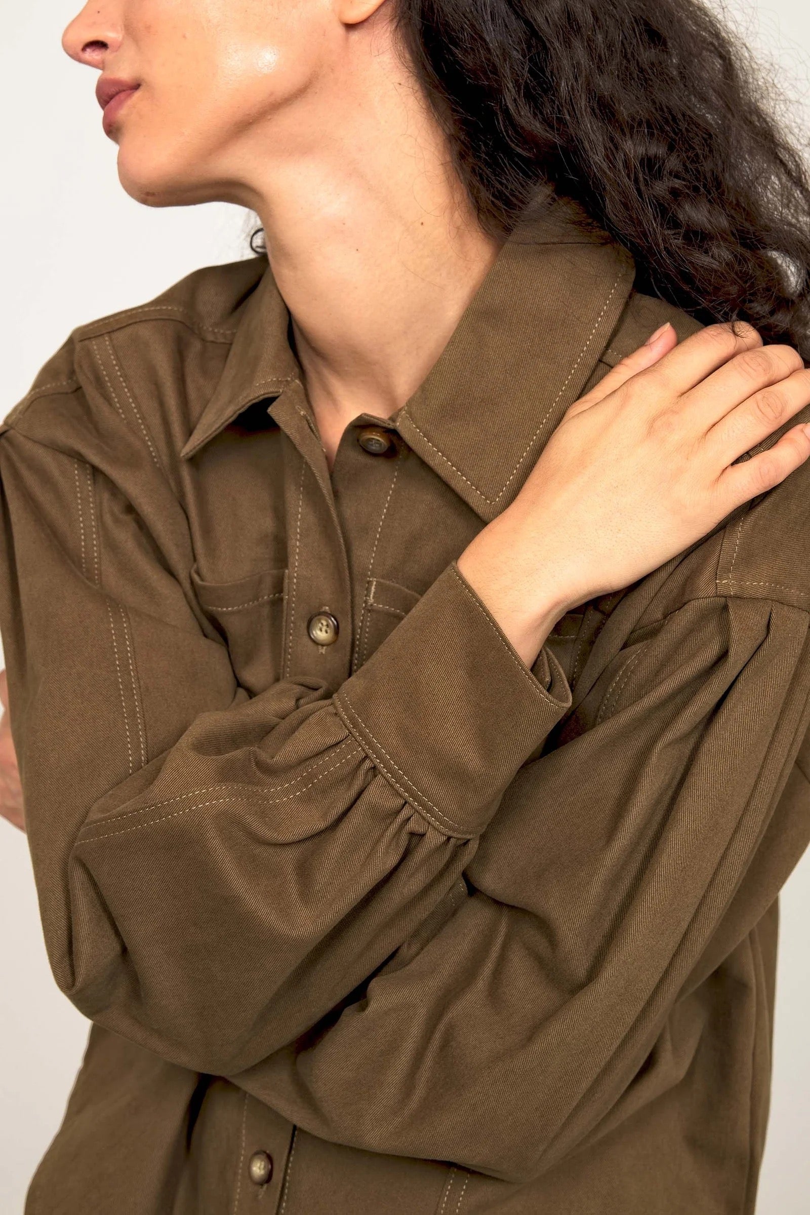 Découvrez la Chemise Amelia, l'interprétation signature de Misericordia pour la manche gigot. Ses plis généreux aux épaules créent du volume et de la prestance, restructurant élégamment votre silhouette. Ultra-féminine et intemporelle, cette chemise allie sophistication et fantaisie rafraîchissante. Portez-la avec une jupe crayon ou un pantalon taille haute pour un contraste harmonieux qui magnifie votre allure. Une pièce de style qui traverse les tendances avec une simplicité déconcertante.