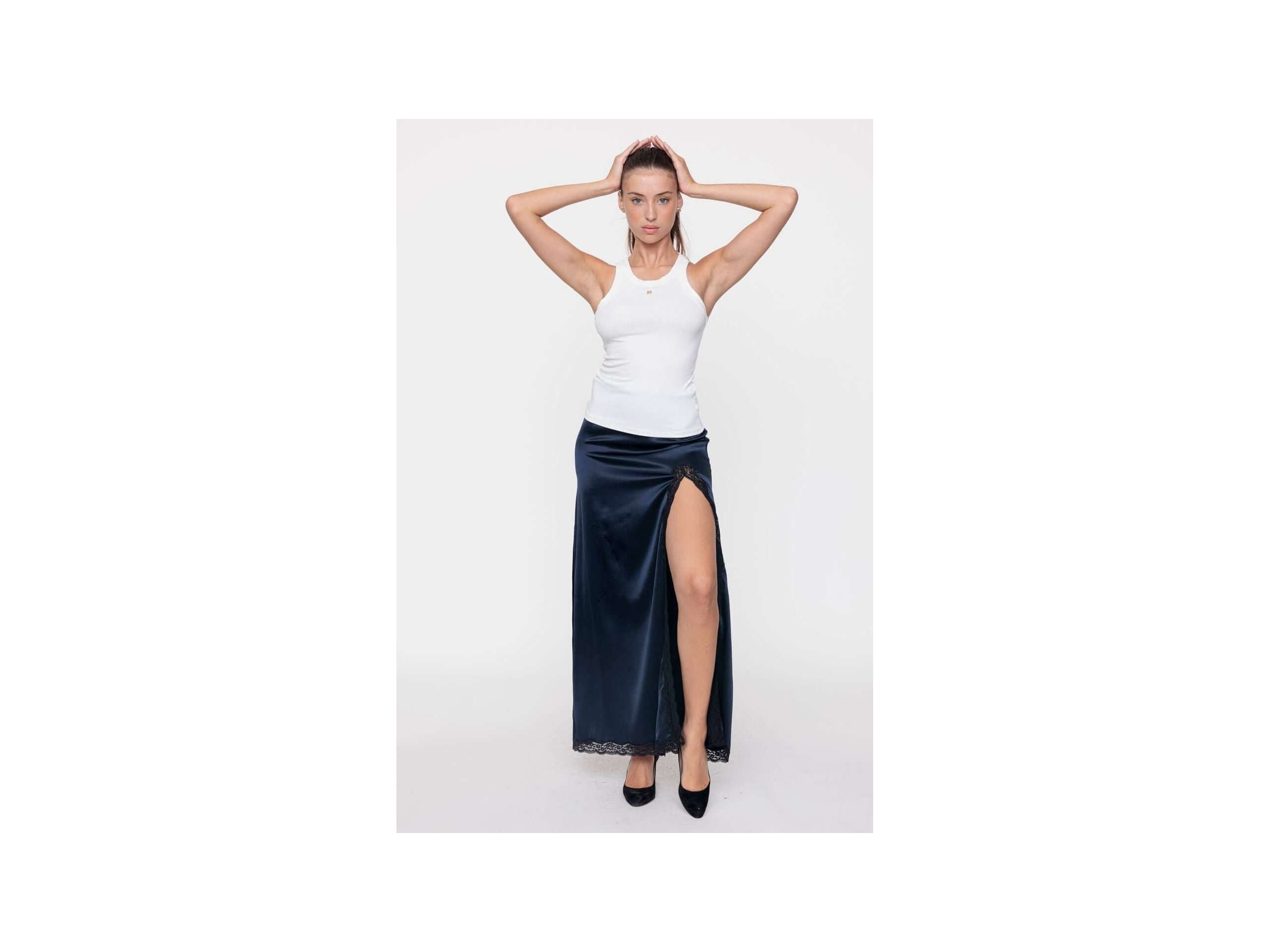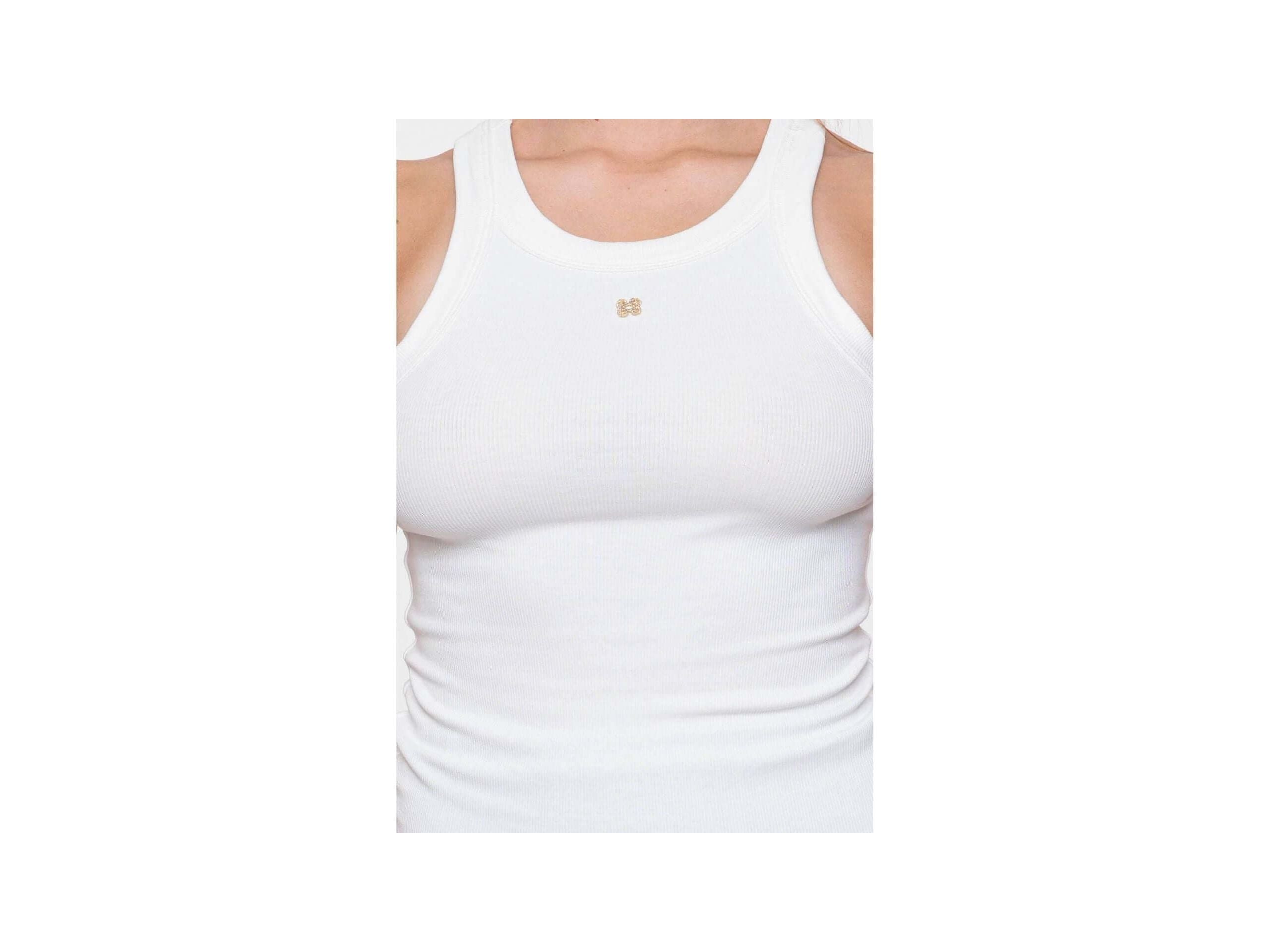 Lightweight stretch ribbed cotton tank top, a perfect material with a fitted cut to perfectly fit your curves. Vannina Vesperini logo embroidery on the front