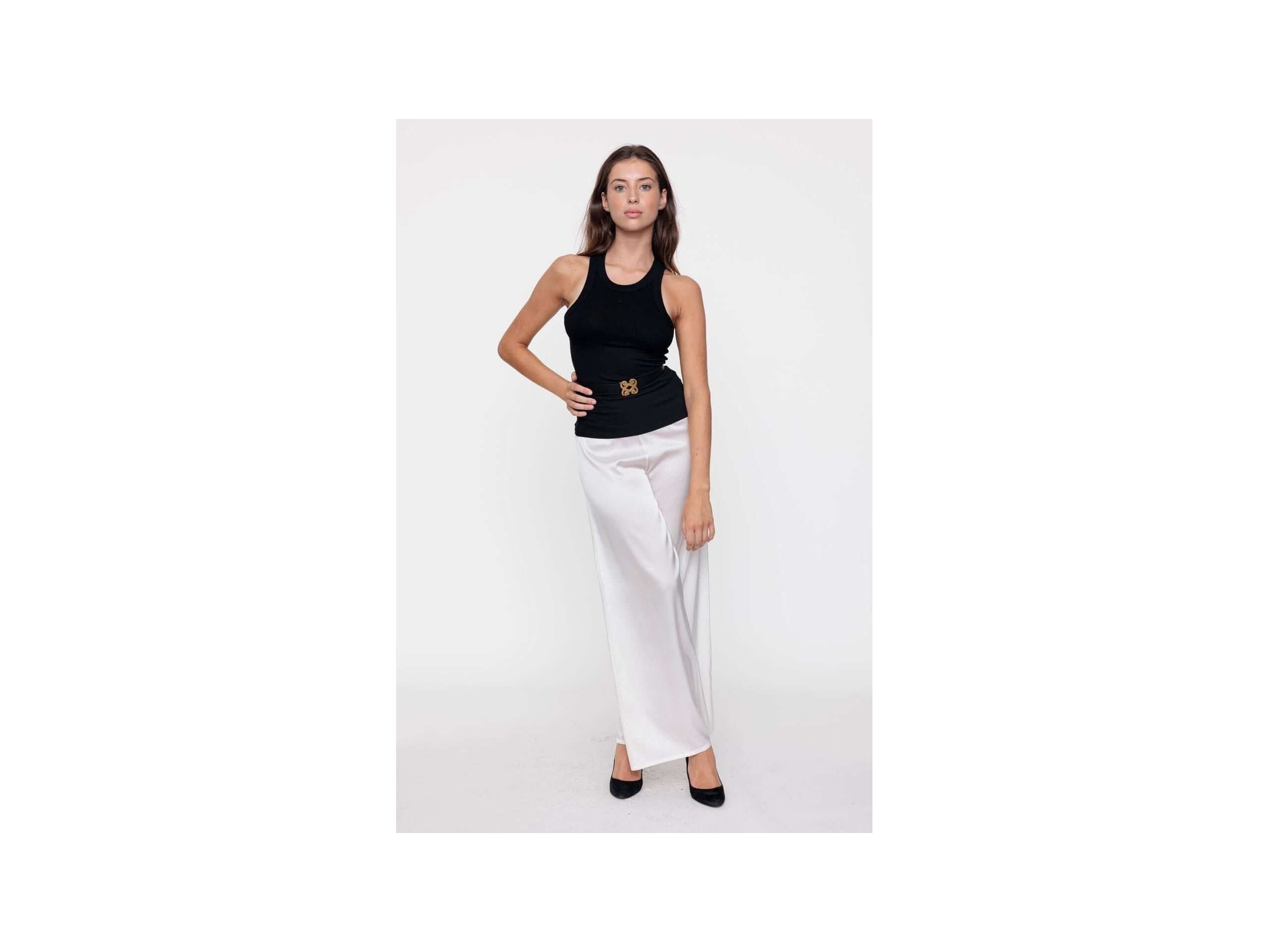 Lightweight stretch ribbed cotton tank top, a perfect material with a fitted cut to perfectly fit your curves. Vannina Vesperini logo embroidery on the front