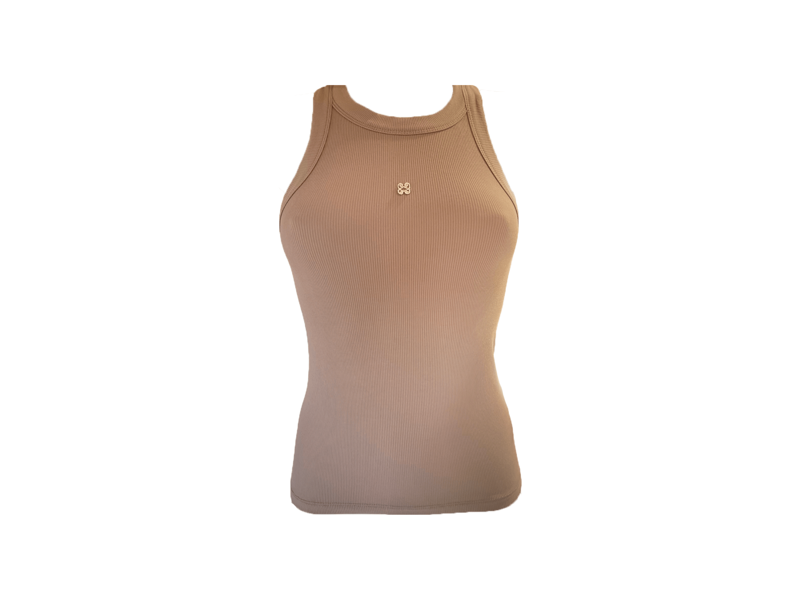 Lightweight stretch ribbed cotton tank top, a perfect material with a fitted cut to perfectly fit your curves. Vannina Vesperini logo embroidery on the front