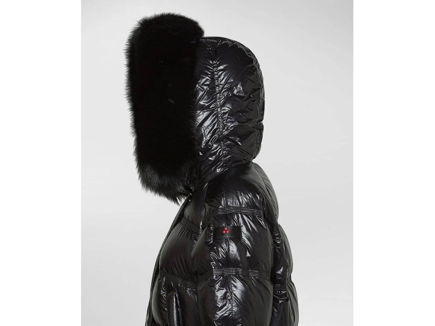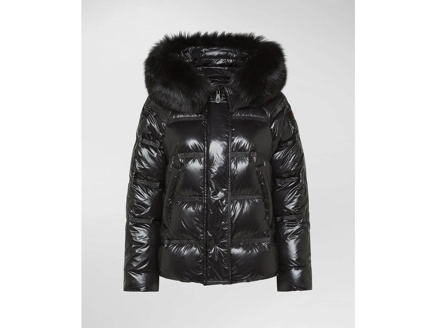 This shiny ripstop nylon down jacket combines style and performance for winter. Featuring a wide collar and a hood trimmed with removable fox fur, it offers optimal protection thanks to its warm and lightweight certified goose down filling. Its double-slider zipper with flap, side pockets, and zippered hip openings ensure comfort and practicality. Waterproof and down-proof, it's your ideal ally against the cold and bad weather. An essential for facing winter in style.