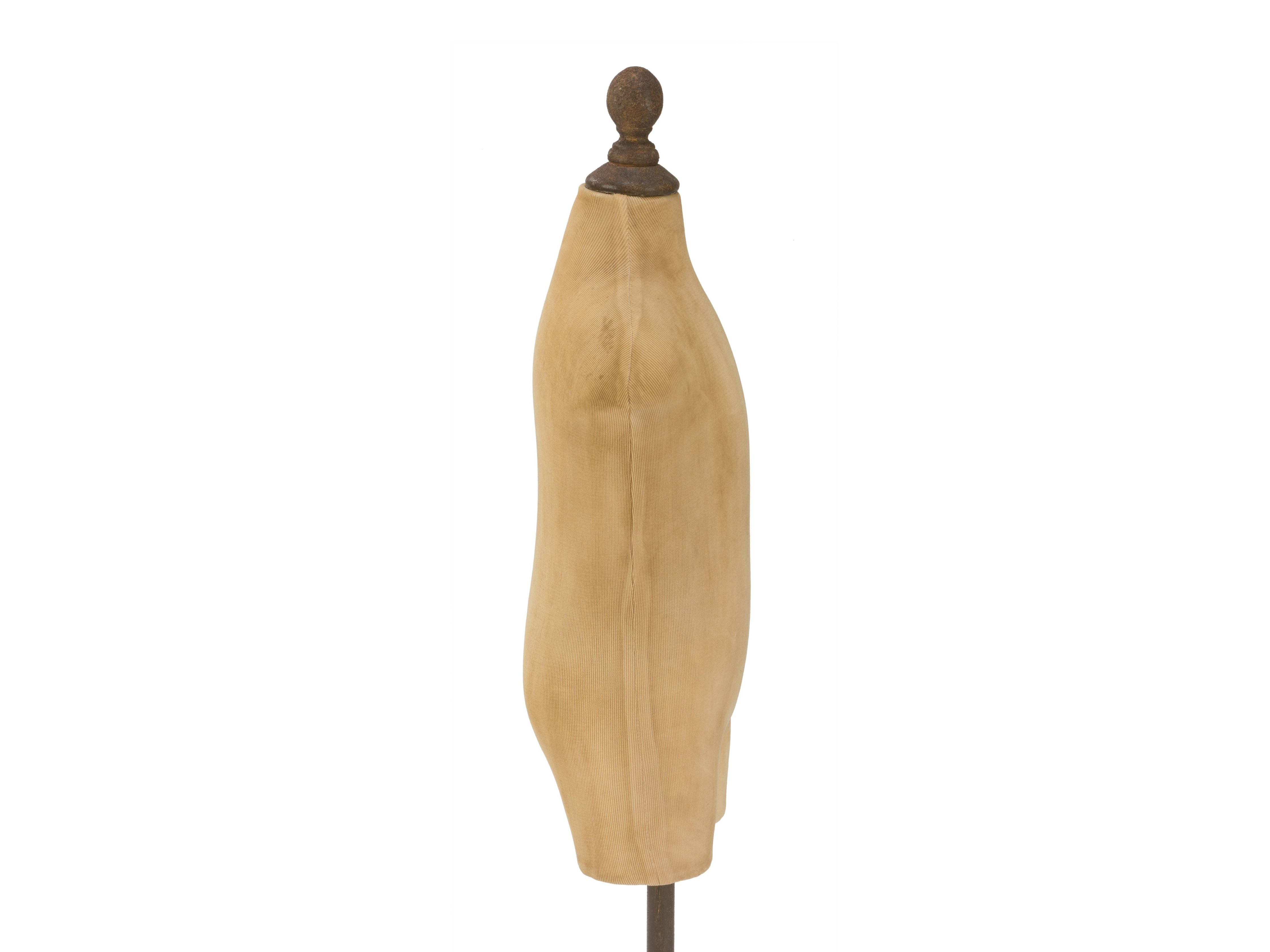 -The fiberglass body shape rests on 3 wooden shelves accented by a rustic metal frame