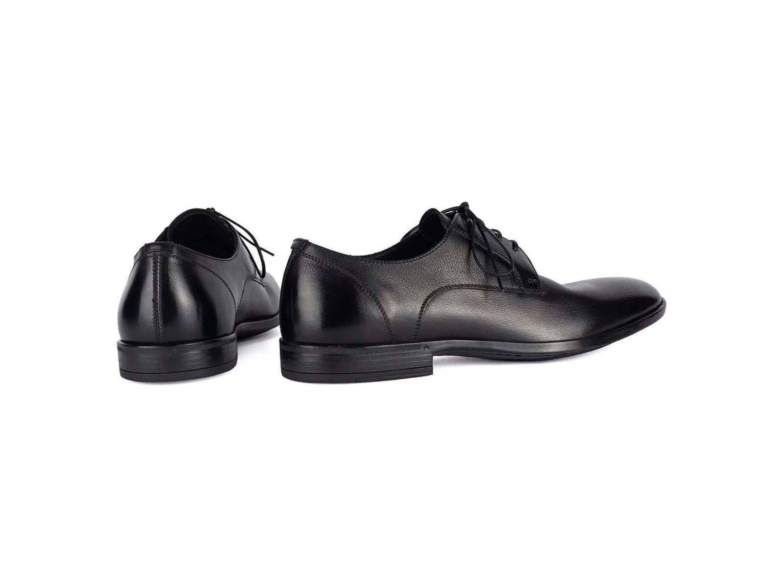 Discover timeless elegance with the Jason 89001 derby shoe, crafted from exceptionally high-quality calfskin. Its natural leather interior ensures breathable comfort, while the latex sole guarantees excellent grip. Each pair is carefully hand-polished with special waxes, reflecting 100% Italian craftsmanship. Perfect for a refined everyday style, this black shoe offers a standard cut for an ideal fit. Combine comfort and sophistication with this exceptional model.