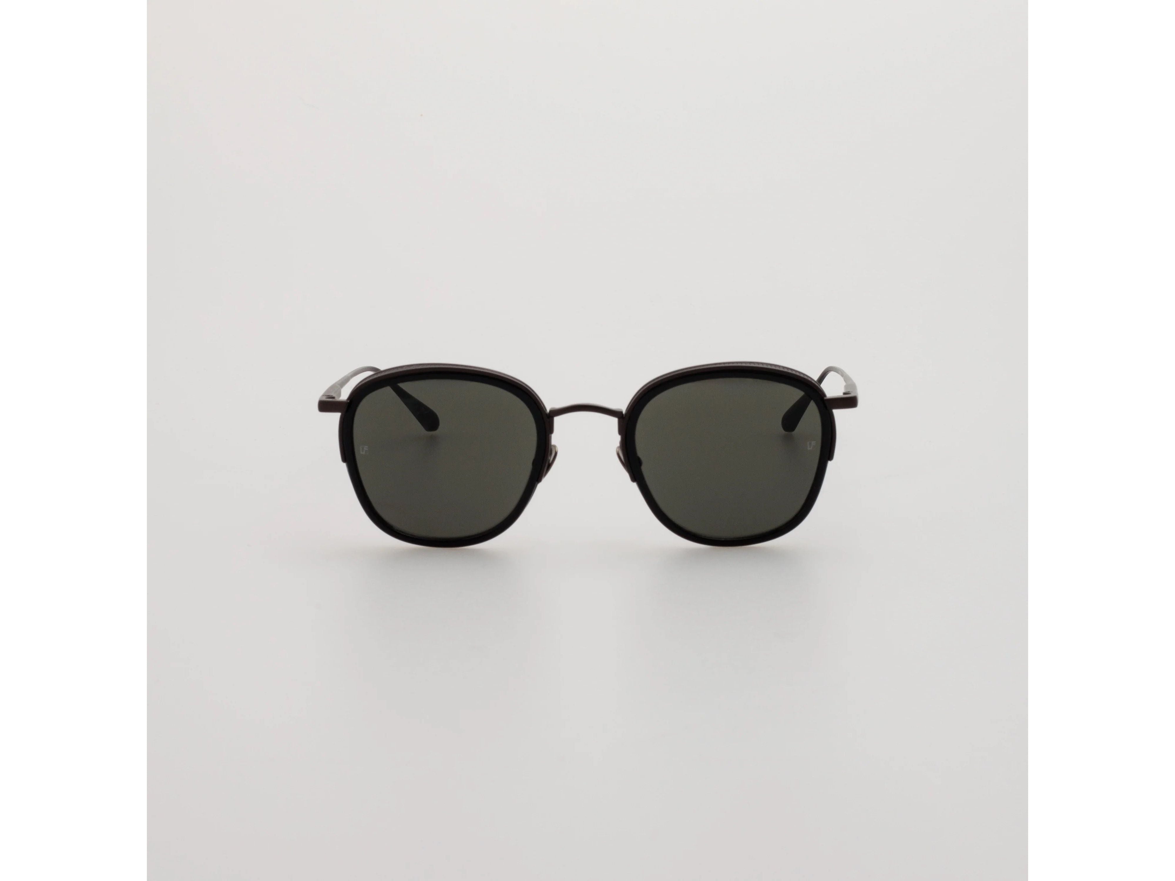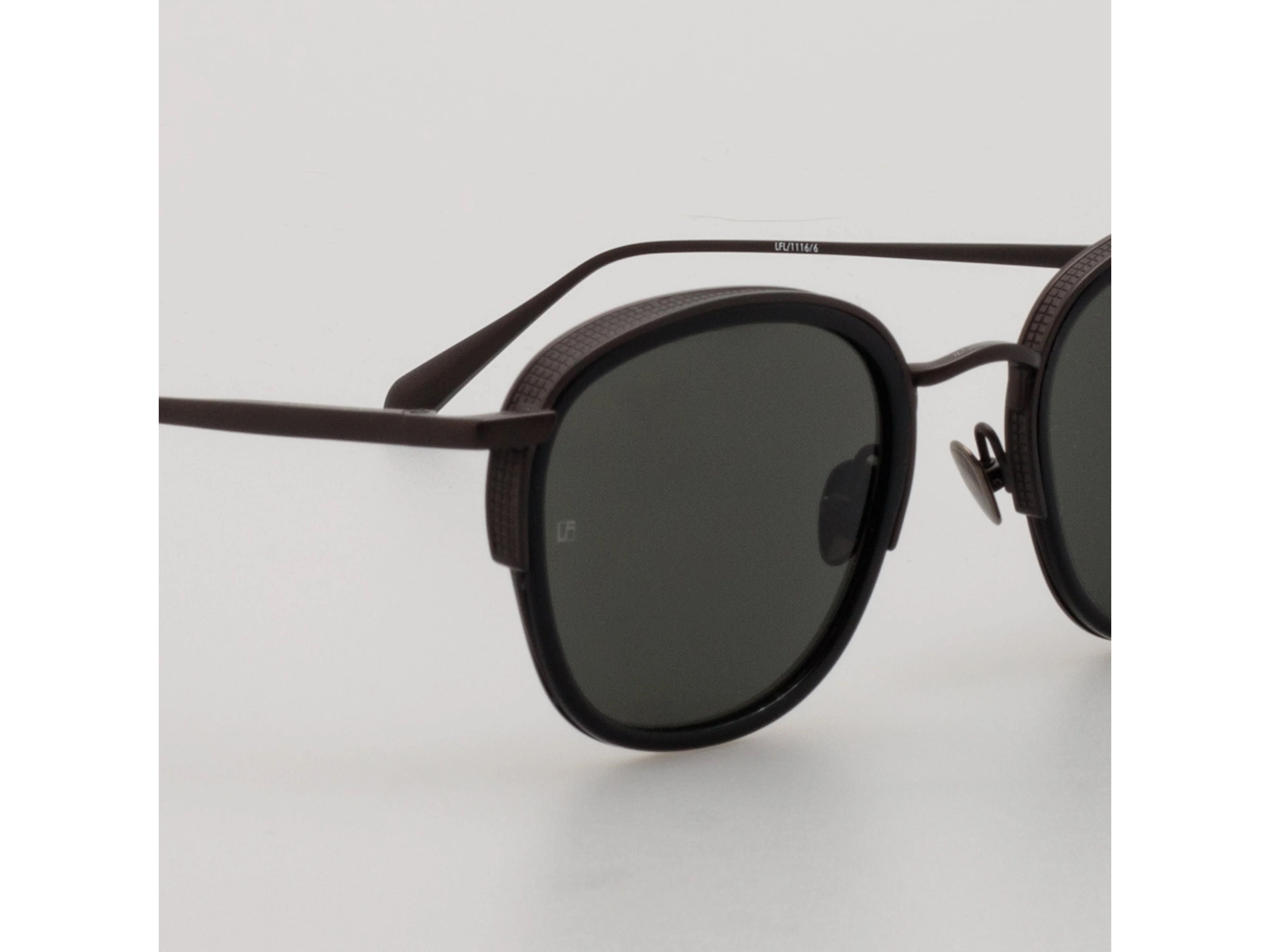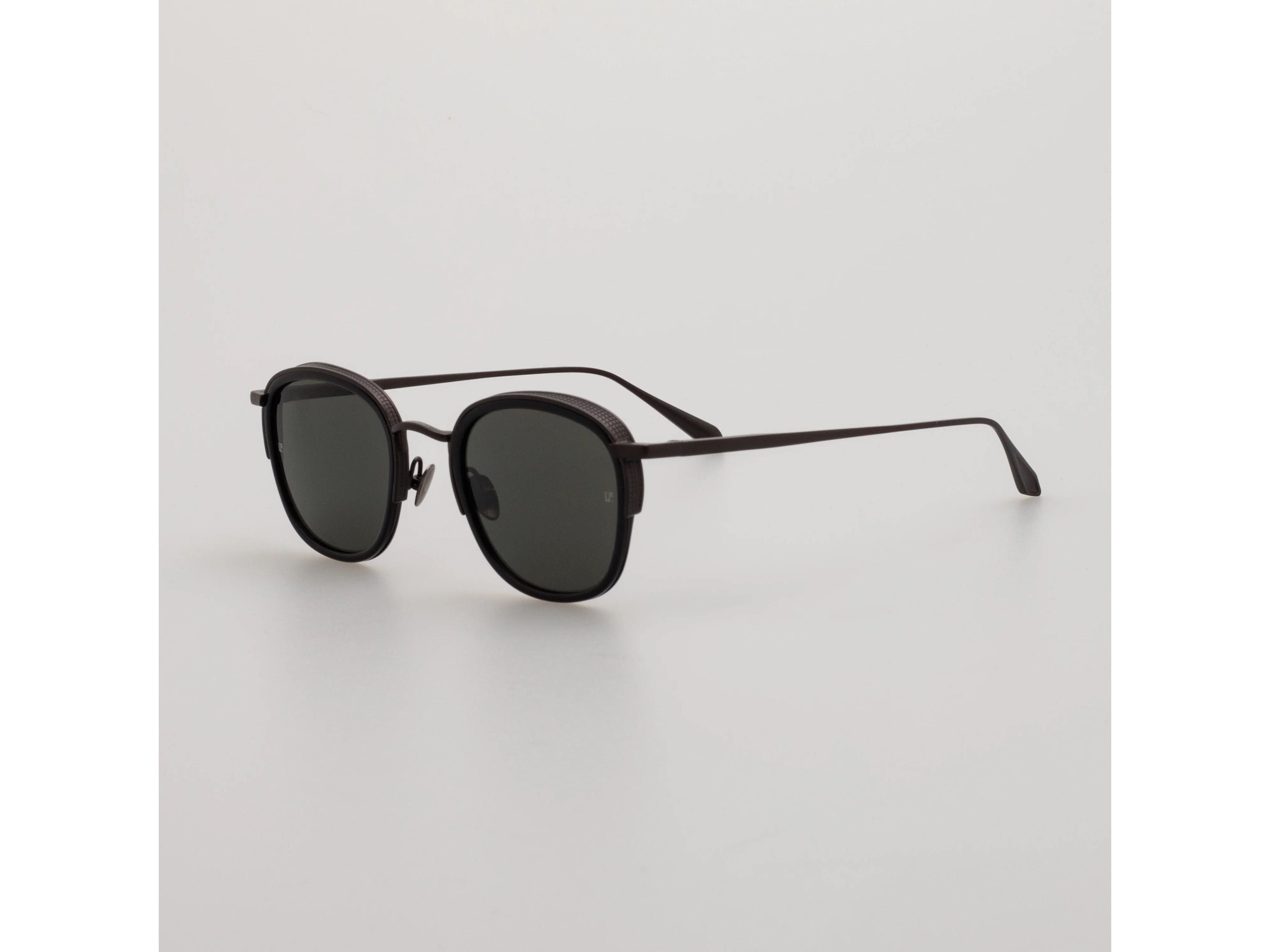 These ALDRIN sunglasses from the Linda Farrow Black Series collection combine architectural design and lightness thanks to their matte nickel titanium frame. Equipped with 100% UV gray lenses, they offer optimal protection while ensuring an elegant unisex style. Made in Japan, these glasses combine robustness and comfort to enhance your look with confidence.