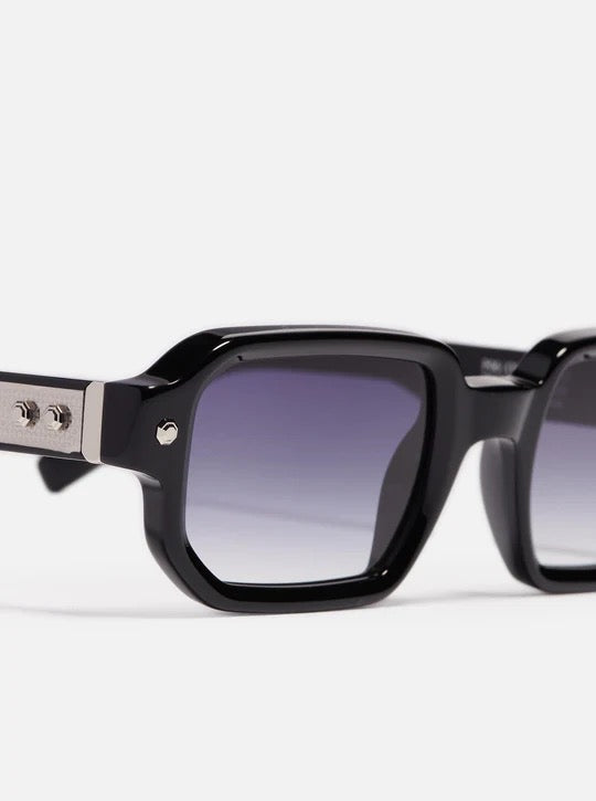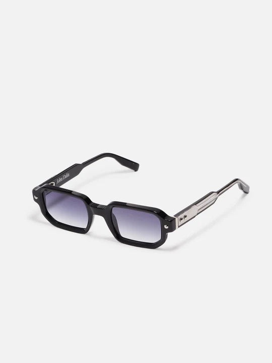 Découvrez Project 06, la monture unisexe qui fusionne style et technologie. Taillée dans une feuille d'acétate noir brillant de 8 mm, elle arbore une élégante forme rectangulaire rehaussée de picots décoratifs et de charnières signature John Dalia. Ses verres CR39 dégradés bleu foncé offrent une protection optimale avec revêtement antireflet. Chaque paire intègre notre système d'authentification révolutionnaire combinant NFC et Blockchain—une puce passive discrètement intégrée à la branche droite, activable via smartphone pour garantir l'authenticité. Détails en acier inoxydable couleur platine. Livrée avec étui, boîte et chiffon.