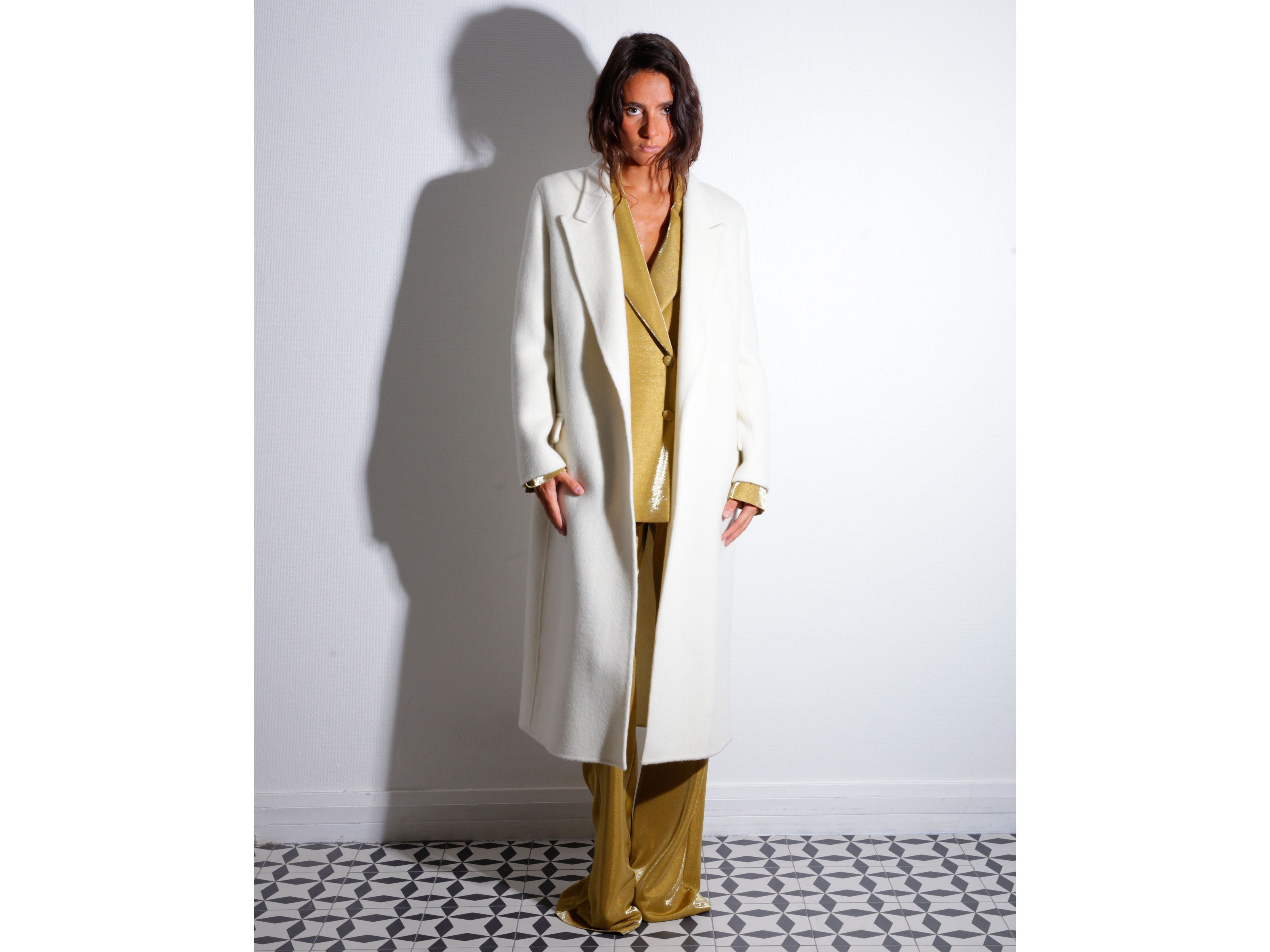 Discover the Tessa coat, combining elegance and comfort thanks to its refined composition: 90% wool, 5% cashmere, and 5% silk. This unique blend ensures warmth, softness, and a touch of luxury to enhance your style in any season. Adopt it for a sophisticated look and incomparable well-being.