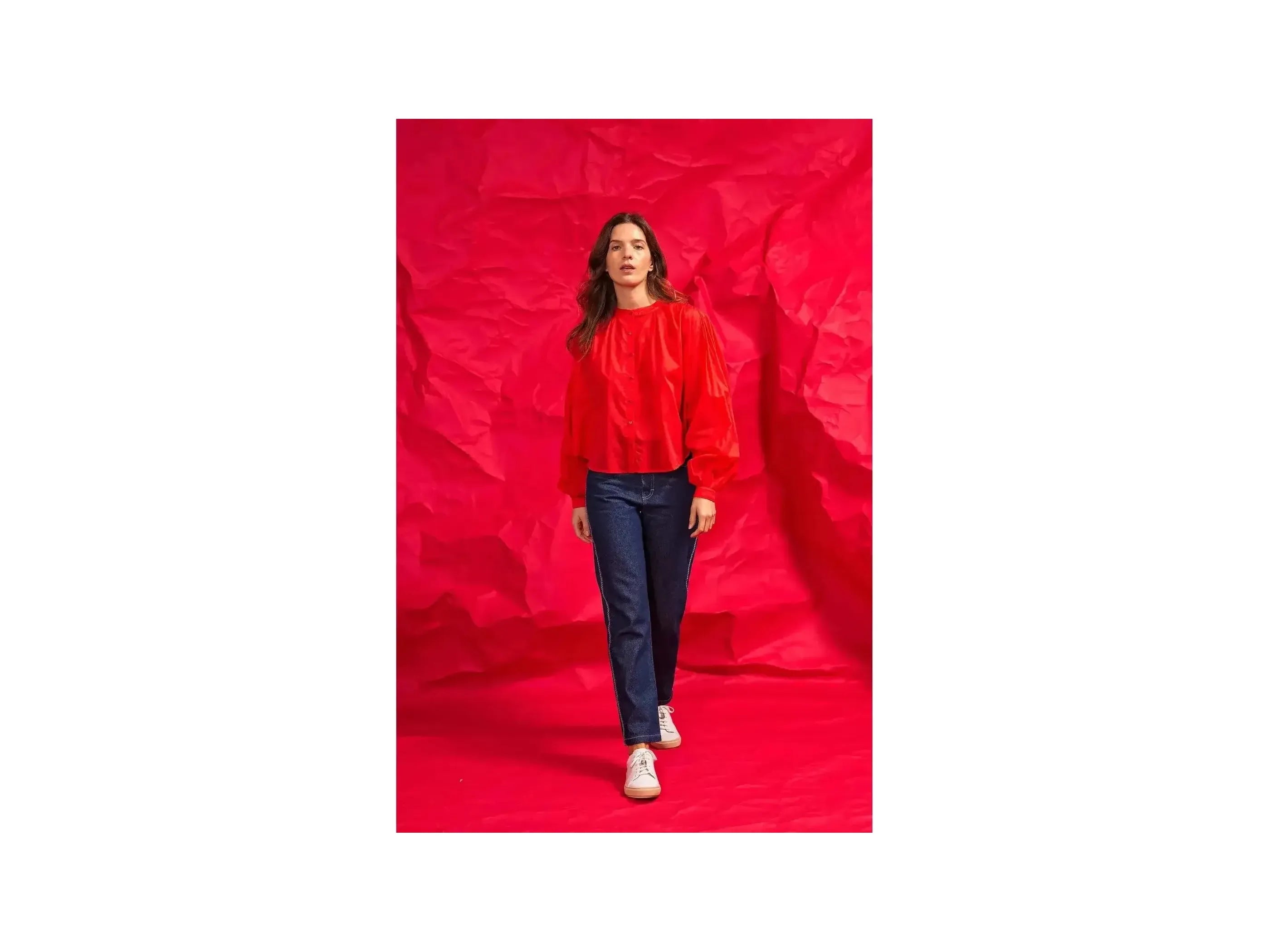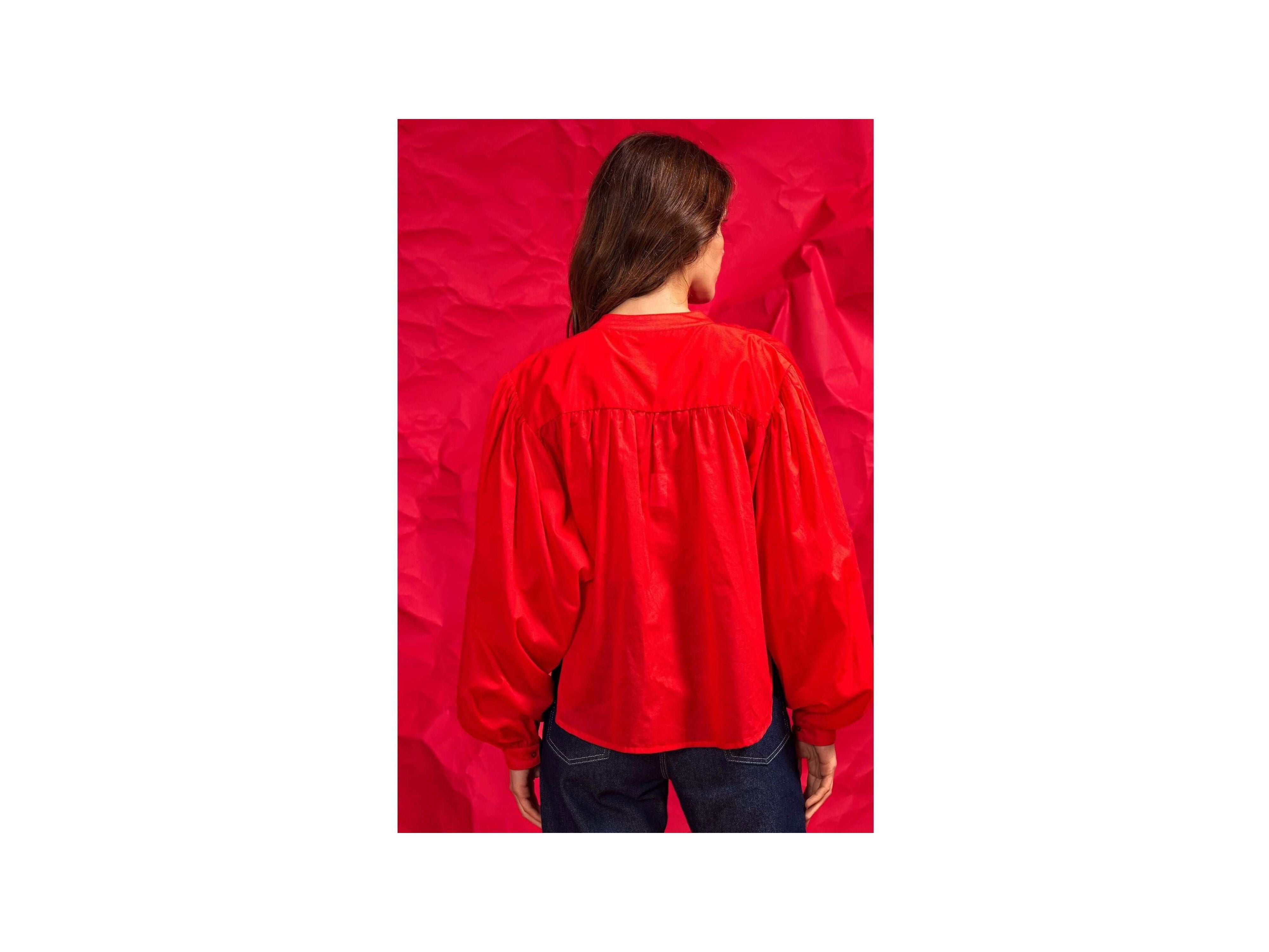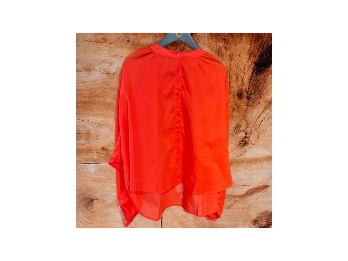 LOOSE AND SHORT PASSION RED COTTON VOILE SHIRT