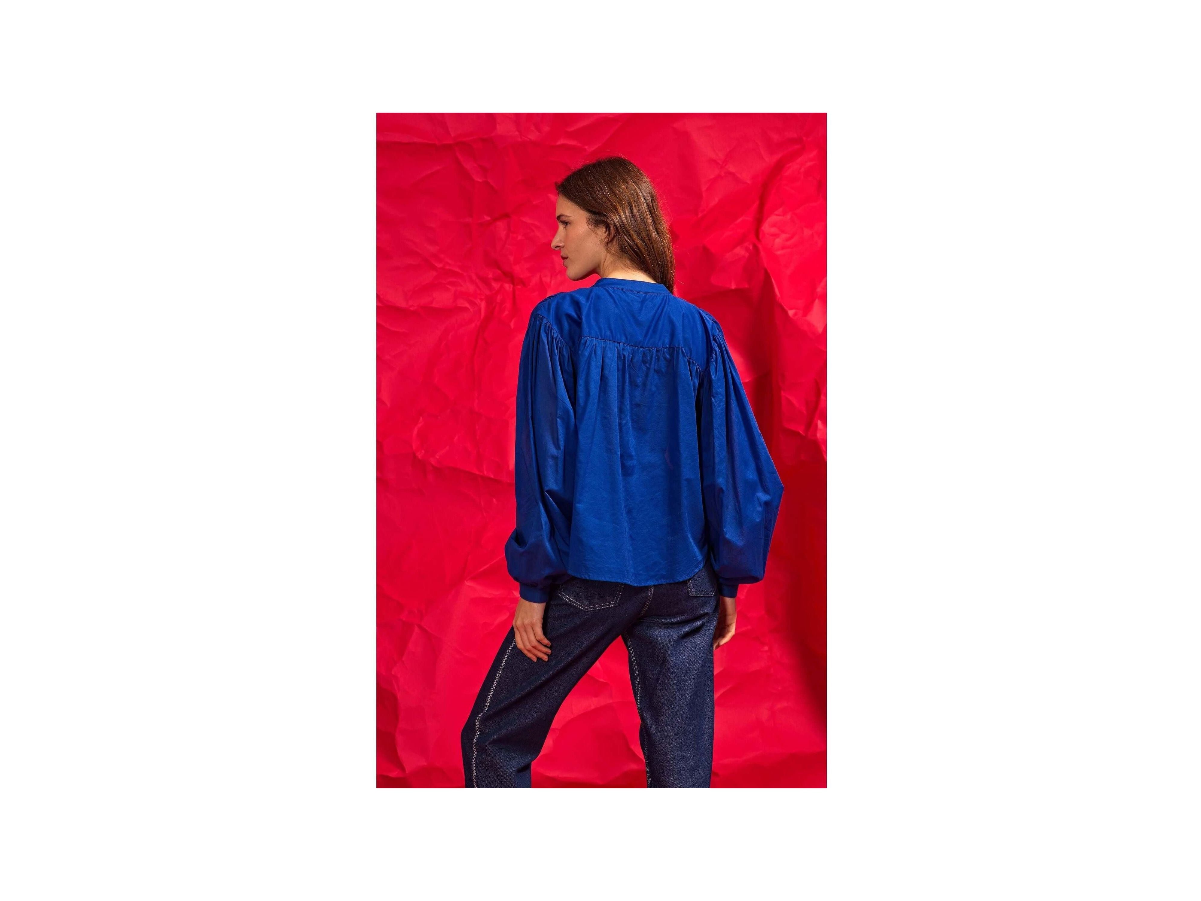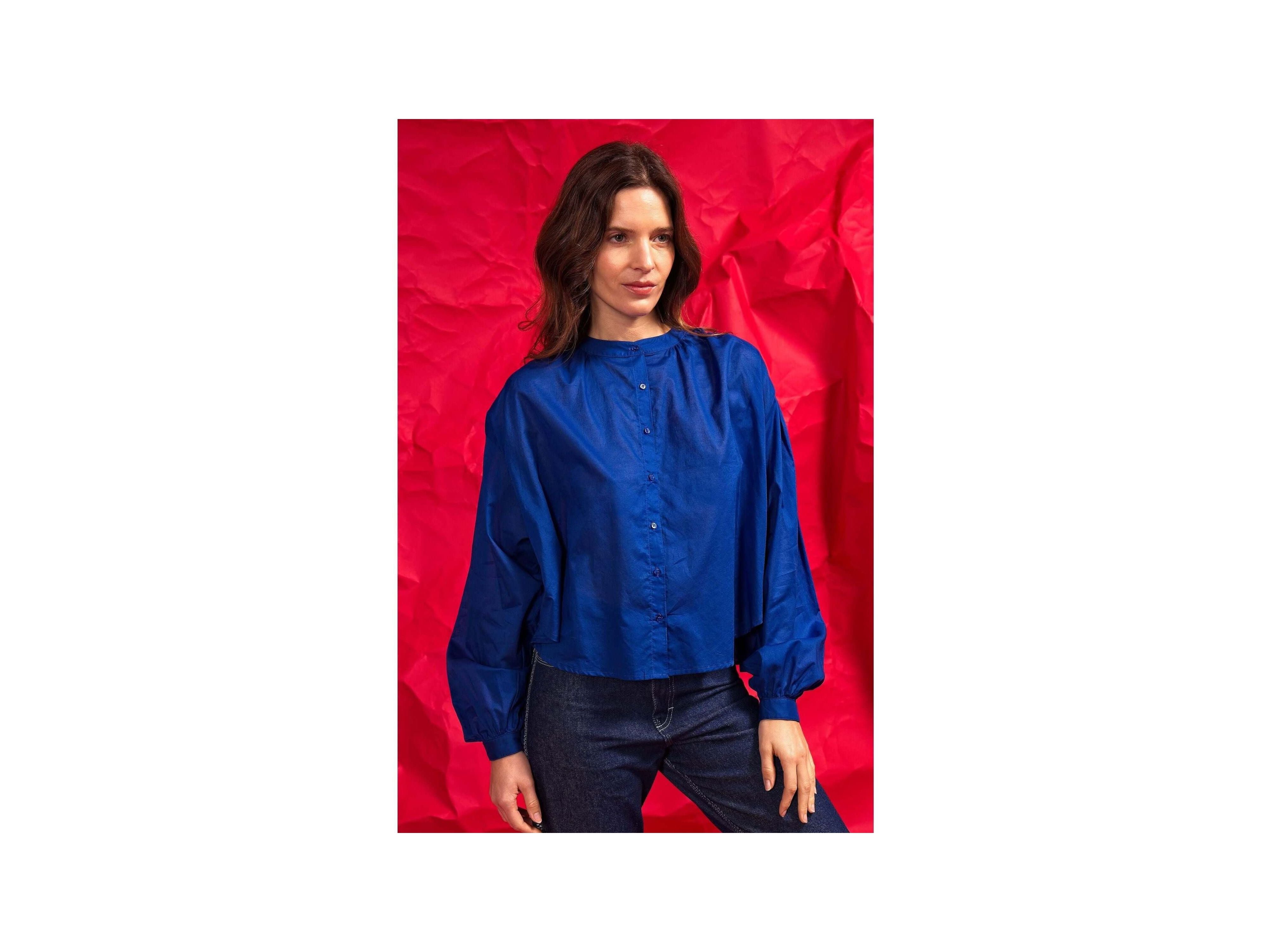 A perfect alchemy between glamour and playfulness , this flowing cotton voile shirt, with its loose fit, is easy to match.