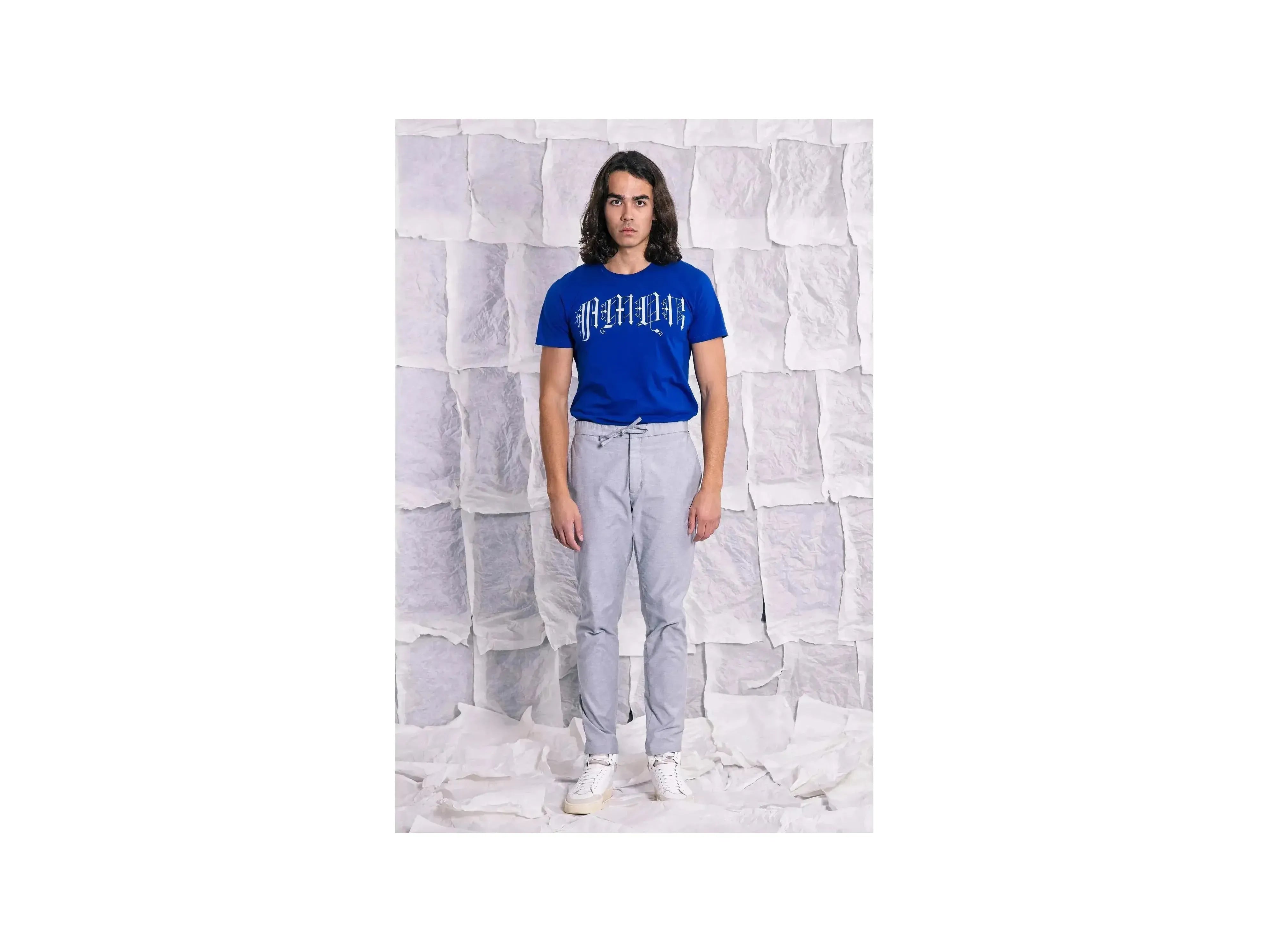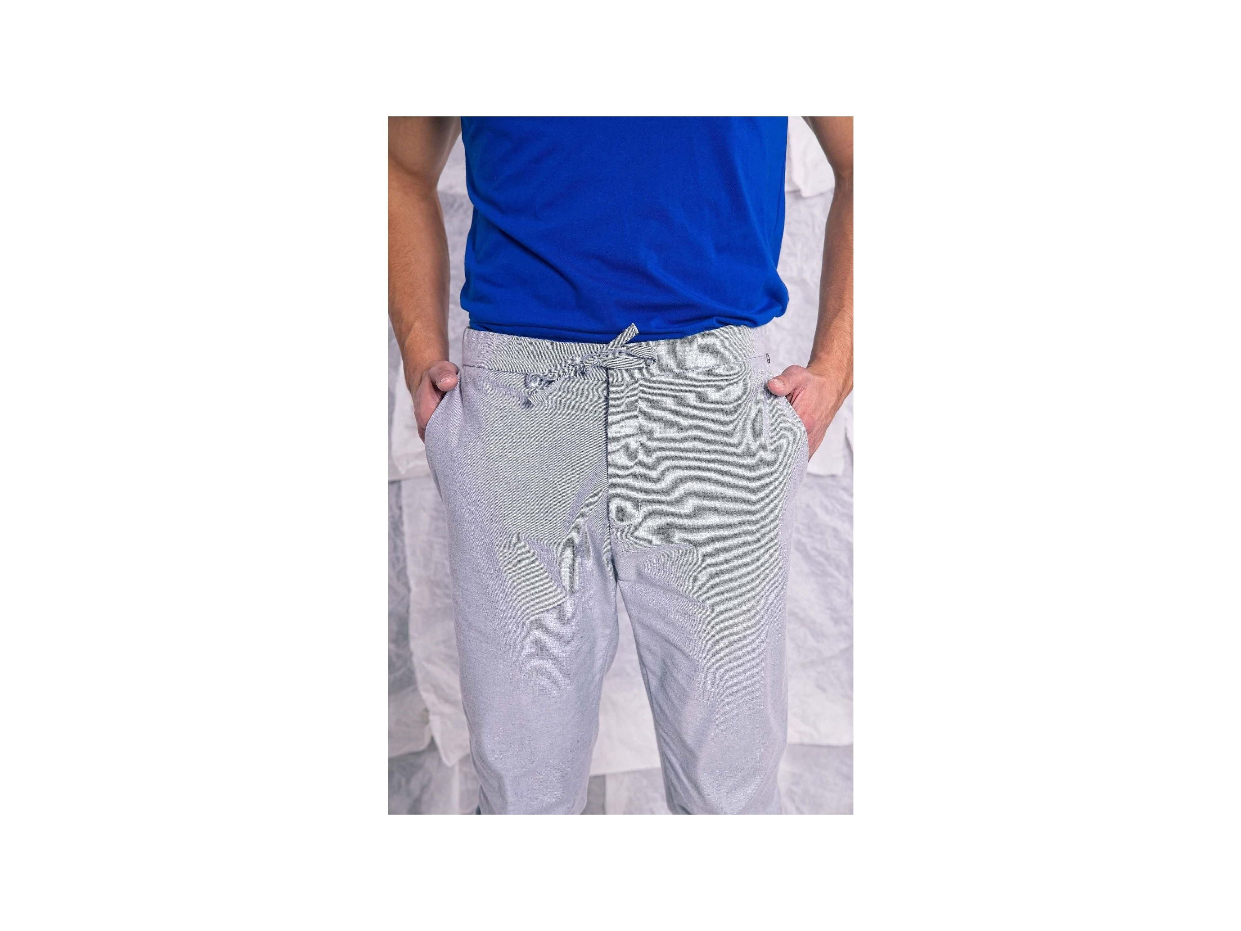 WASHED BLUE GREY COTTON PANTS WITH DRAWSTRING WAISTBAND