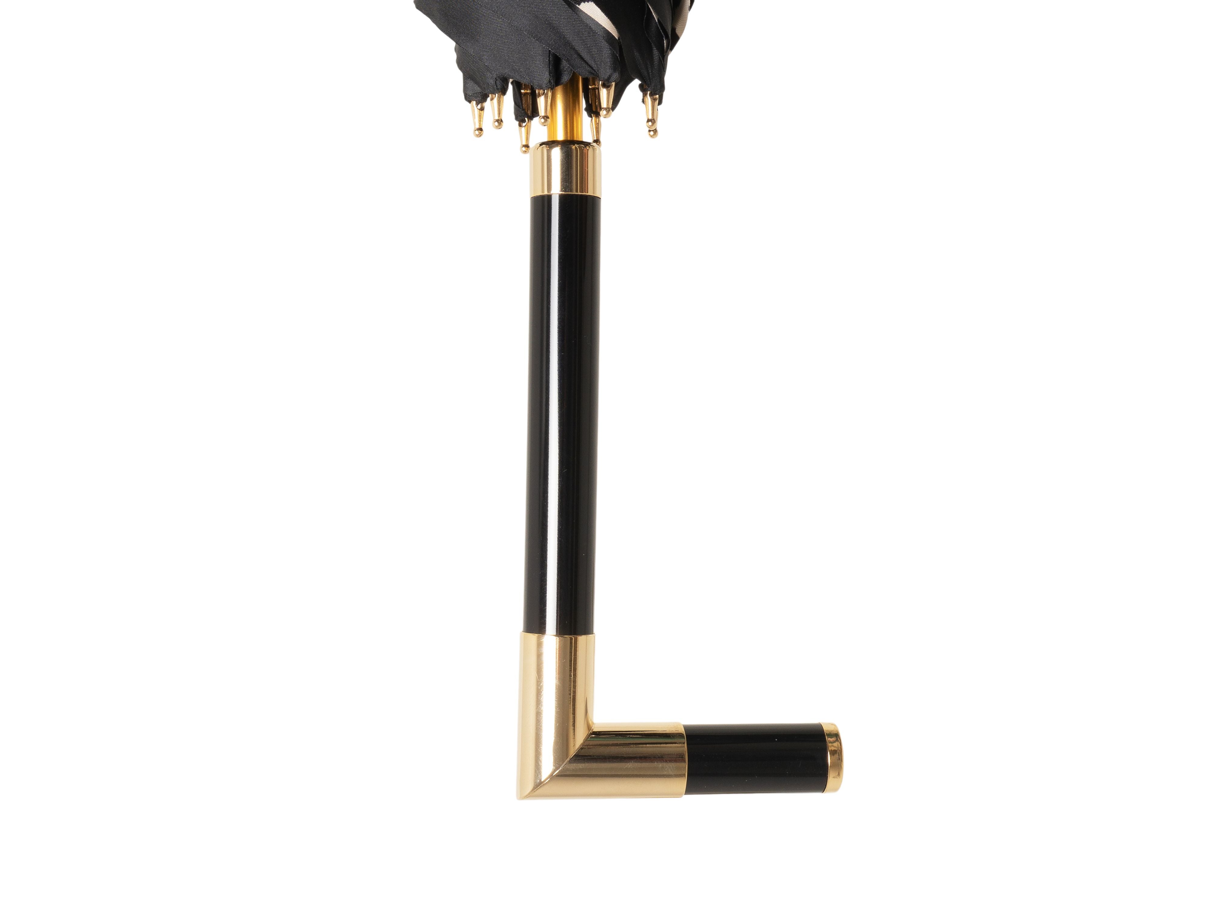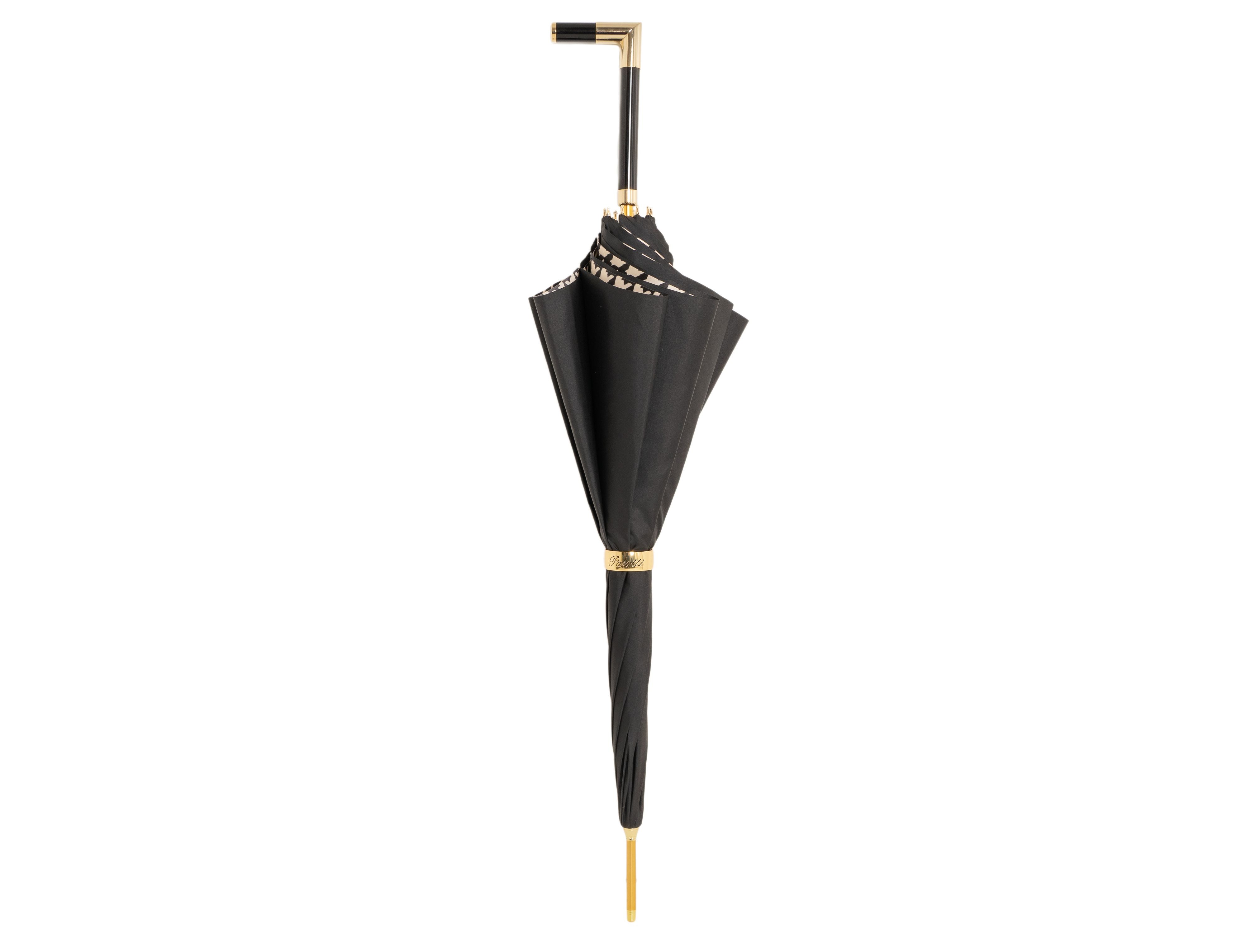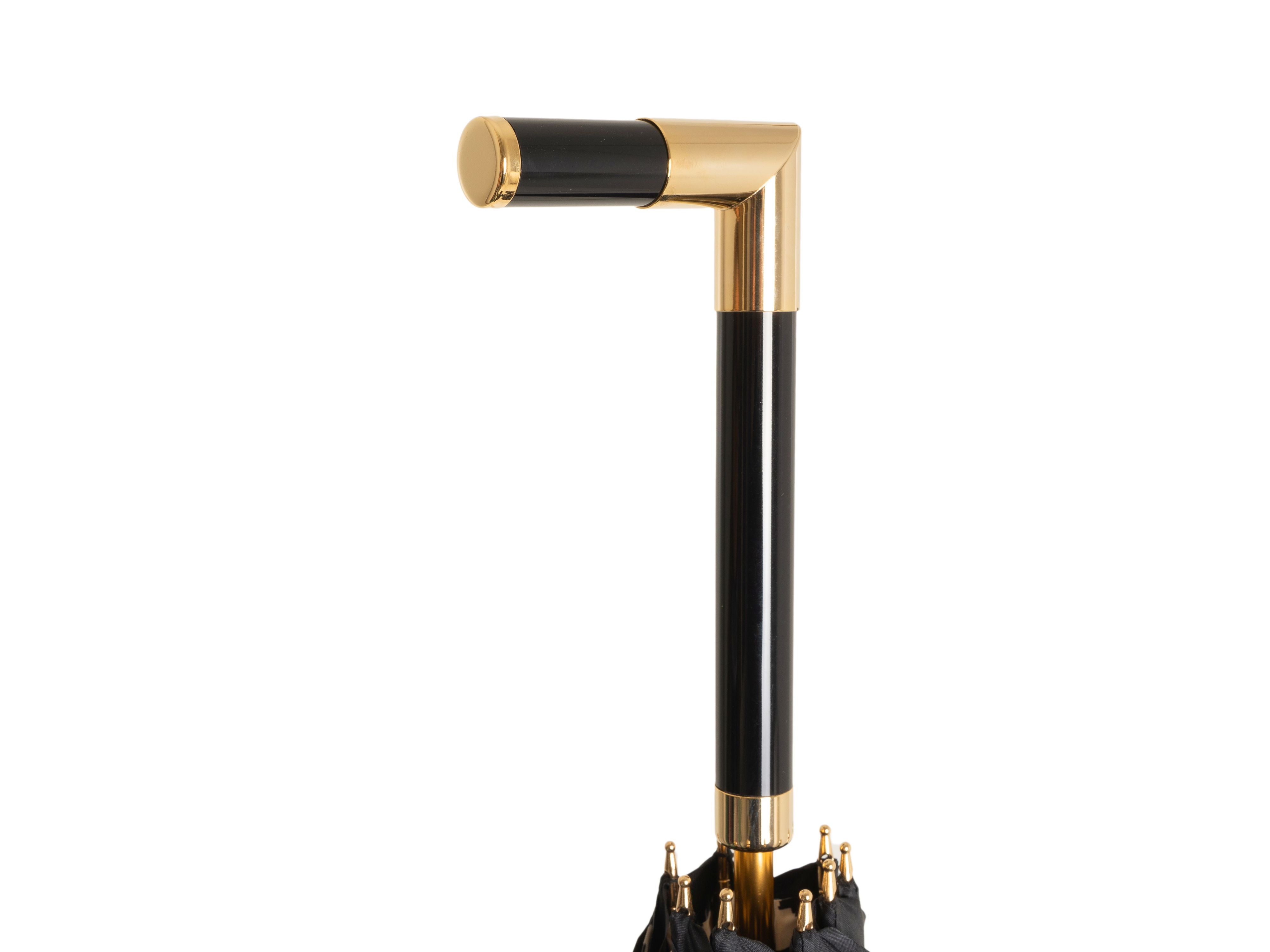 Parapluie double élégant alliant robustesse et style avec satin noir et détails or. Profitez d'une protection fiable tout en restant chic sous la pluie.