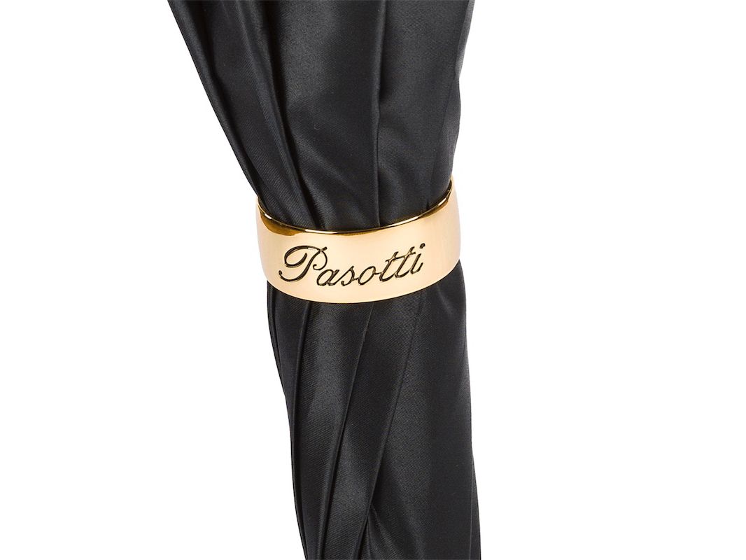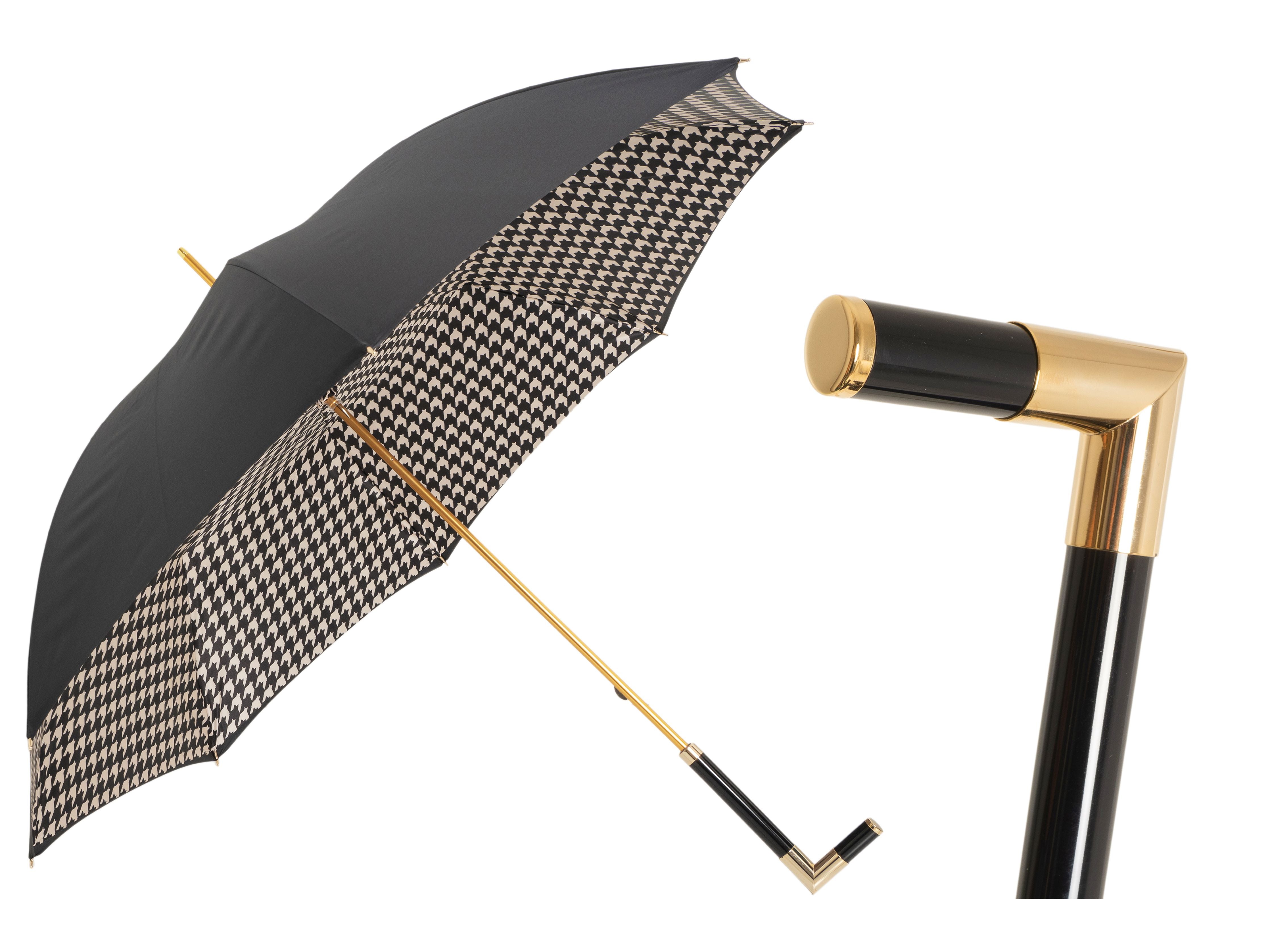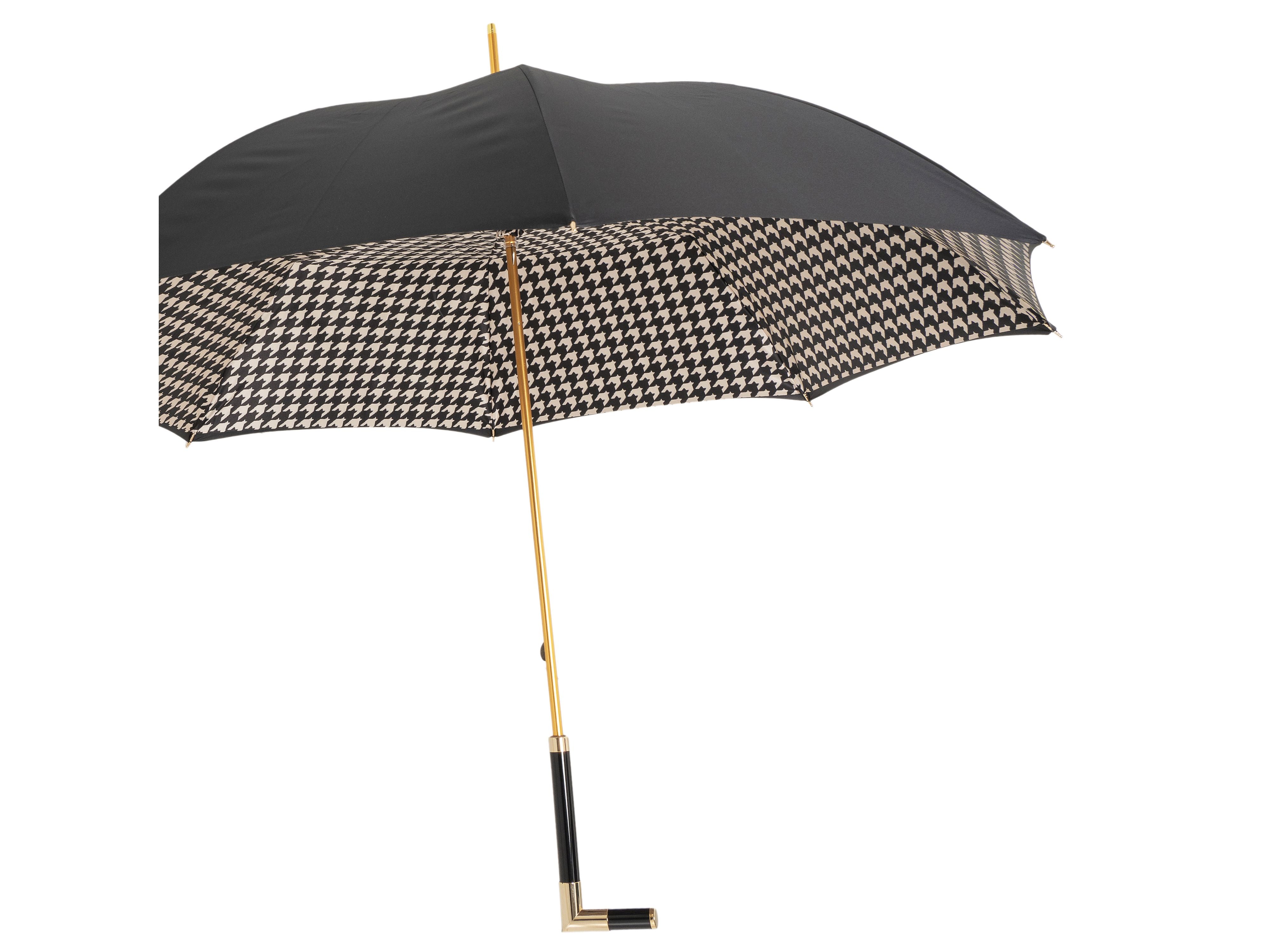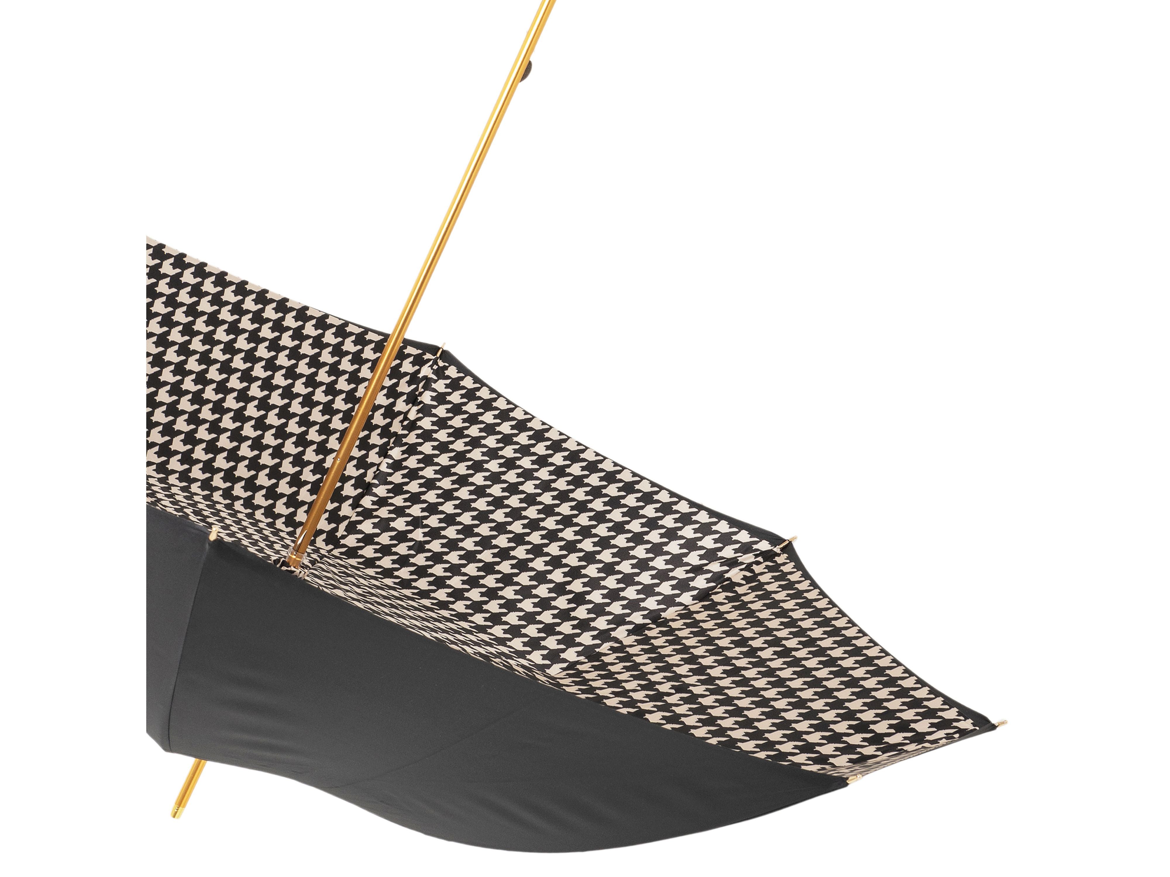 Parapluie double élégant alliant robustesse et style avec satin noir et détails or. Profitez d'une protection fiable tout en restant chic sous la pluie.