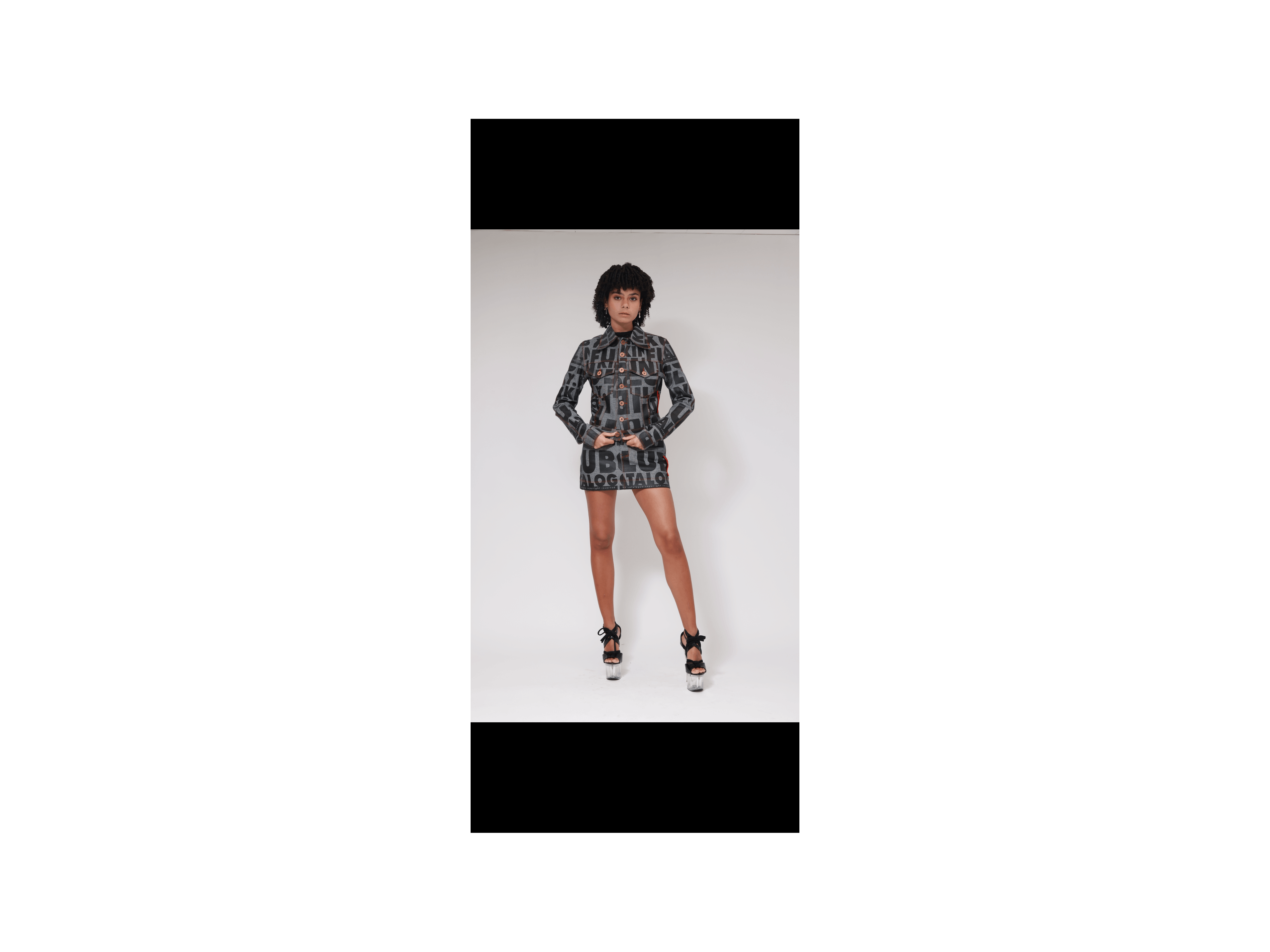 XB DENIM LITTLE SHORT JACKET / FLAG PRINT AOV XB/ BLACK