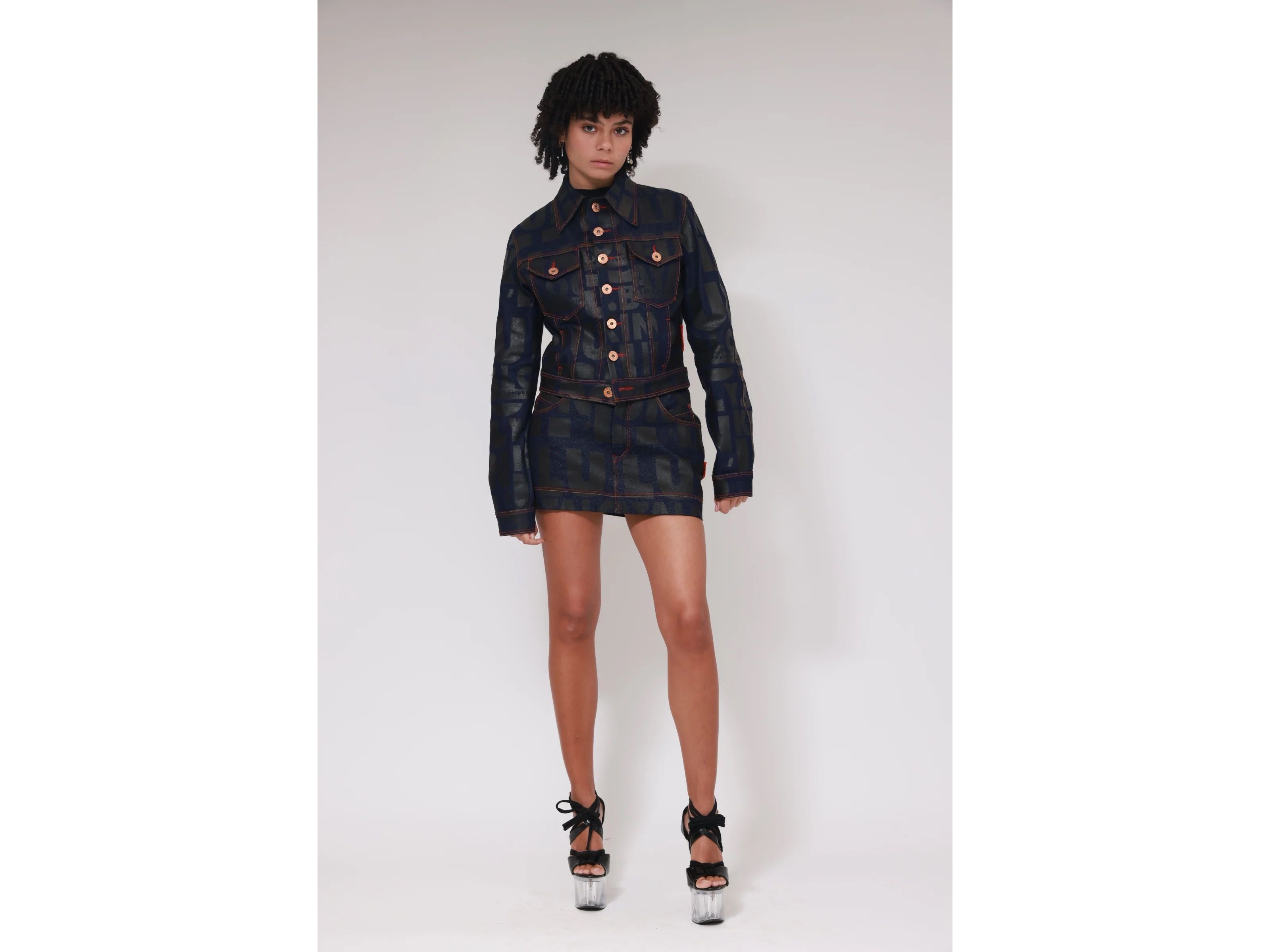 Discover the Xuly bet Petite Denim Jacket / Flag Print AOV XB / Black, a bold mix of denim and print for a unique look. Perfect for adding a touch of style to any outfit. Order now and make a statement with this trendy jacket!