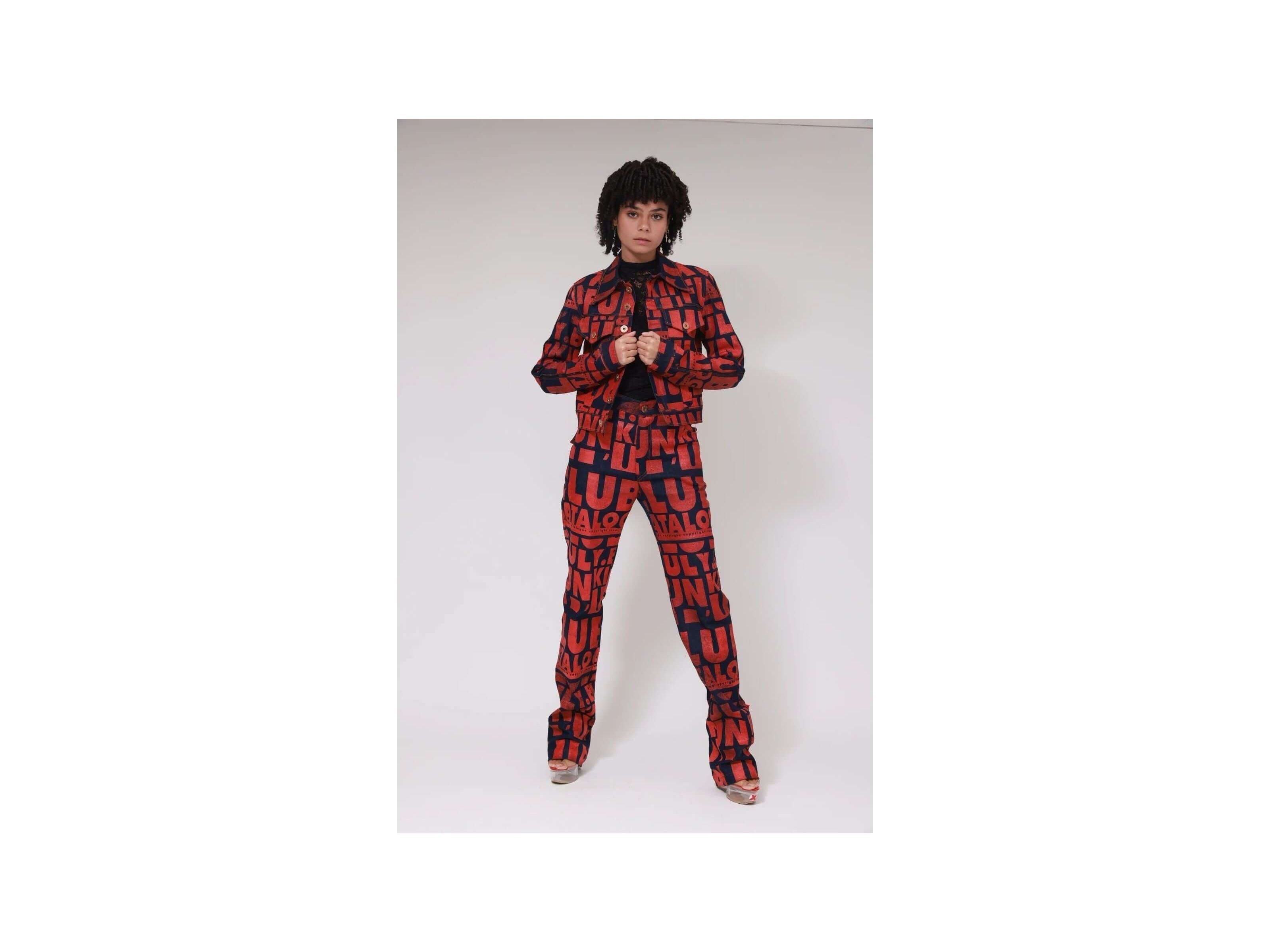 Discover our Xuly bet cropped denim jacket, featuring red AOV XB printed jeans. Expertly crafted for a flawless fit, this jacket will give you a unique and on-trend look. Add a touch of style to your wardrobe with this high-quality denim jacket.