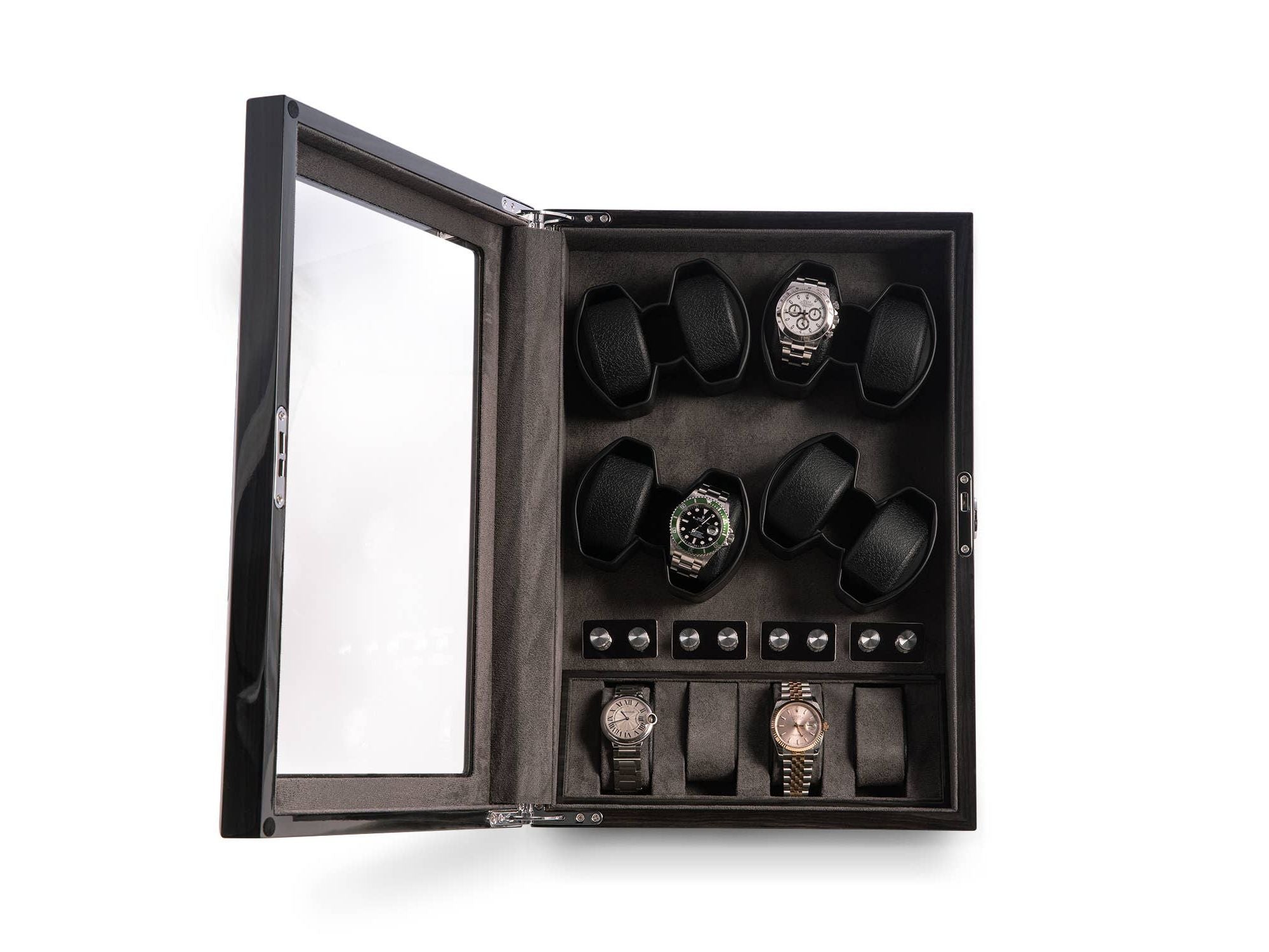 Louis Ash Wood Lacquered Eight Watch Winder and Storage Case