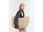 The beige Caba Weekender bag, inspired by vintage bomber jackets, combines boldness and elegance with its masterful proportions and refined gathers. Perfect for discerning travelers, it slips easily into the overhead compartment of an airplane. Its bright orange interior accommodates a 16-inch laptop, a zippered compartment, three mesh pockets, and a nylon sleeve. Two exterior zippered pockets and a removable shoulder strap maximize practicality. Lightweight and spacious, this bag is your ideal companion for your getaways.