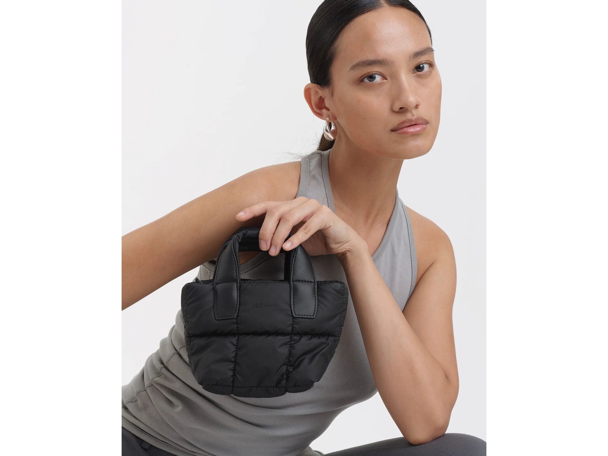 The Porter Tote Micro combines style and practicality with its iconic quilted design. Compact and lightweight, it securely holds your phone, cards, and keys in a zippered pocket. Ideal for outings, festivals, or concerts, its removable shoulder strap offers a comfortable crossbody carry. Made from recycled nylon, this vegan bag is water- and stain-resistant, combining durability with respect for the environment. A minimalist essential for keeping your essentials always at hand.