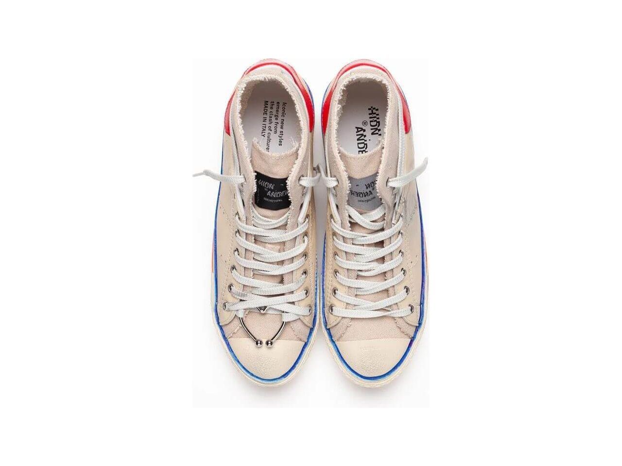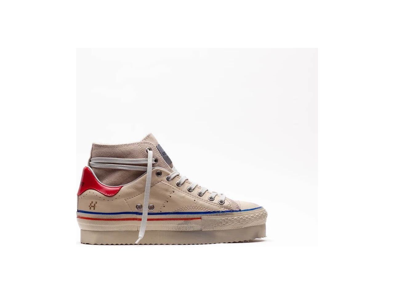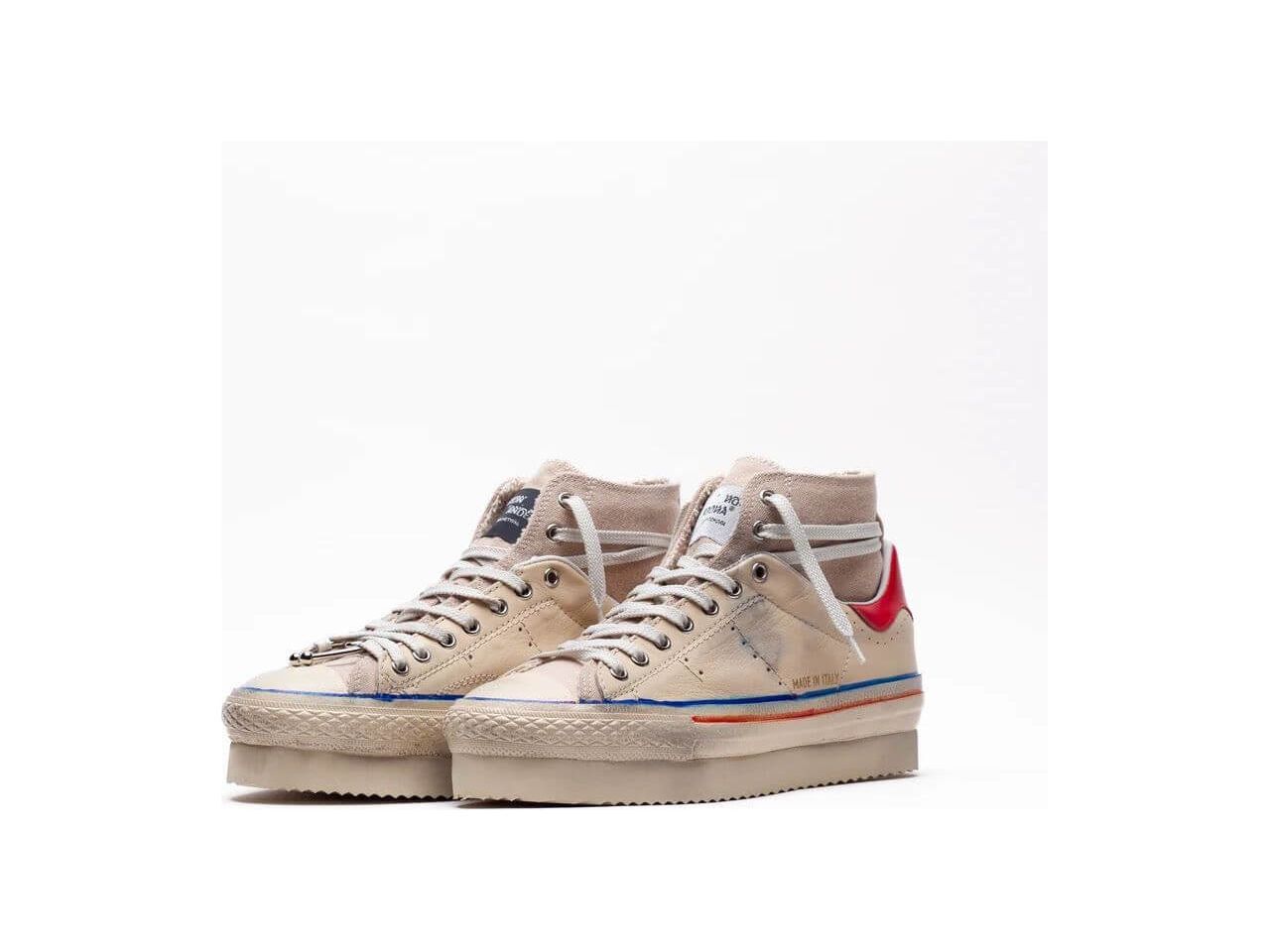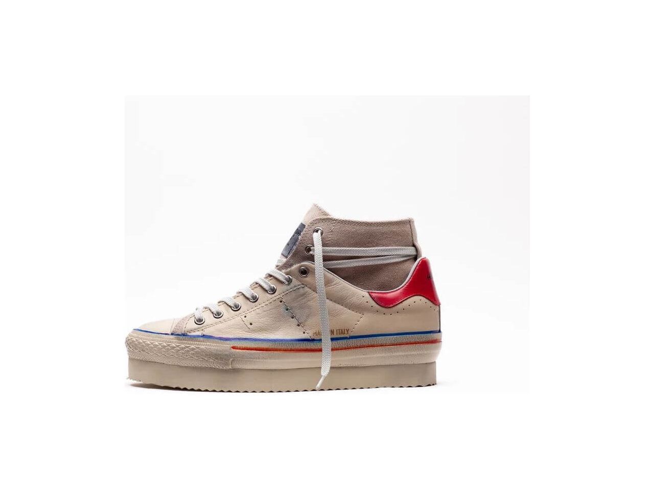 The Starless High Platform sneaker in light beige and strawberry combines elegance and comfort. Its meticulous Italian design combines a retro 70s-inspired silhouette with innovative materials for a unique style. Perfect for boldly asserting your personality, this versatile shoe adapts to any outfit while providing optimal support. Adopt a timeless and modern look with Starless.