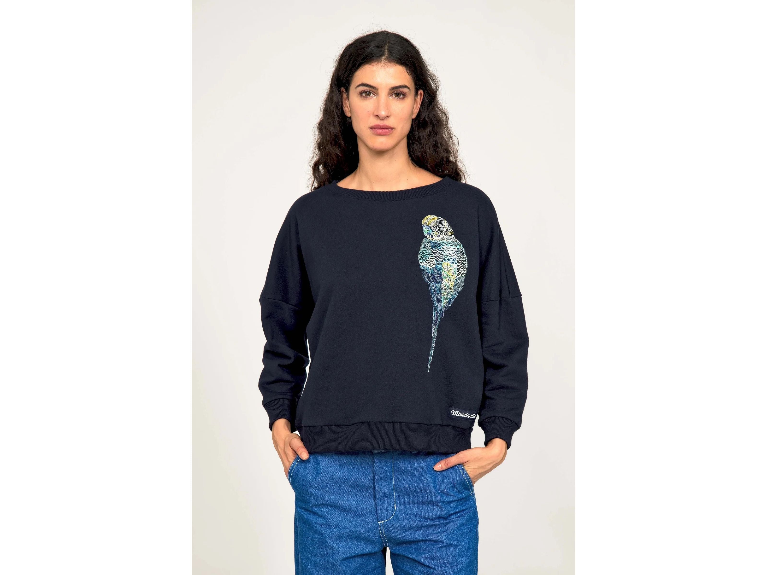 Discover our oversized navy cotton sweatshirt, adorned with a refined parakeet embroidery. This essential piece combines comfort and elegance, inspired by the ancient art of embroidery, a symbol of wealth and sophistication across cultures. The generous cut offers ideal freedom of movement, while the embroidered detail adds a touch of originality to your wardrobe. Perfect for those who appreciate a relaxed style with character, this sweatshirt blends traditional craftsmanship with modern flair for a timeless and distinguished look.
