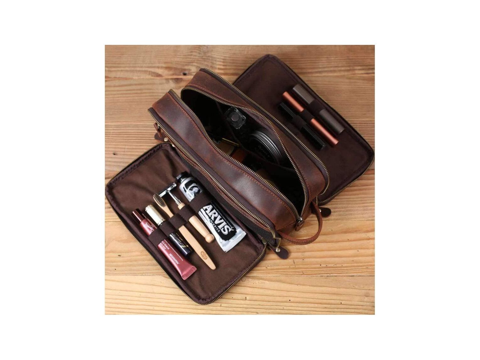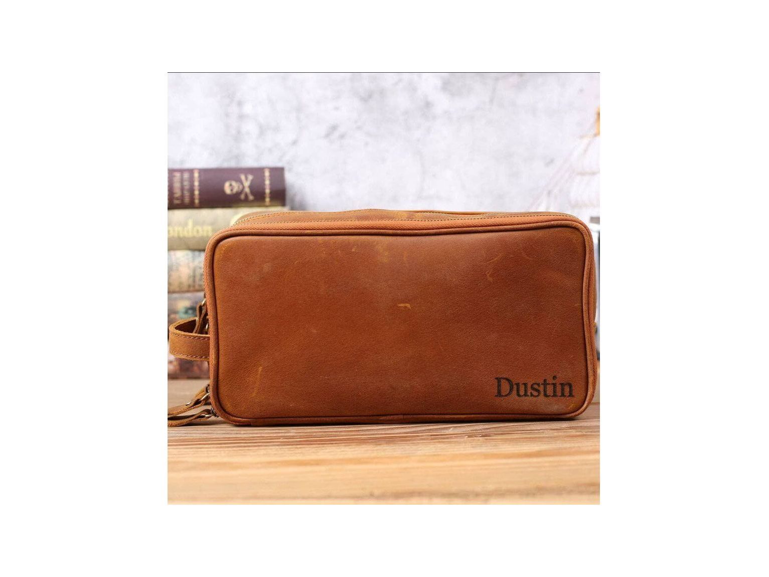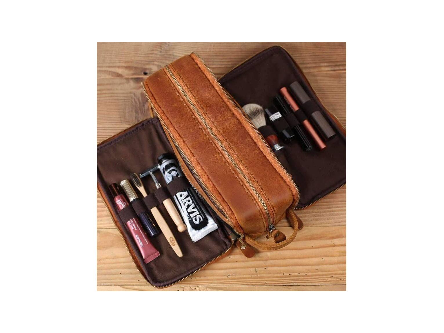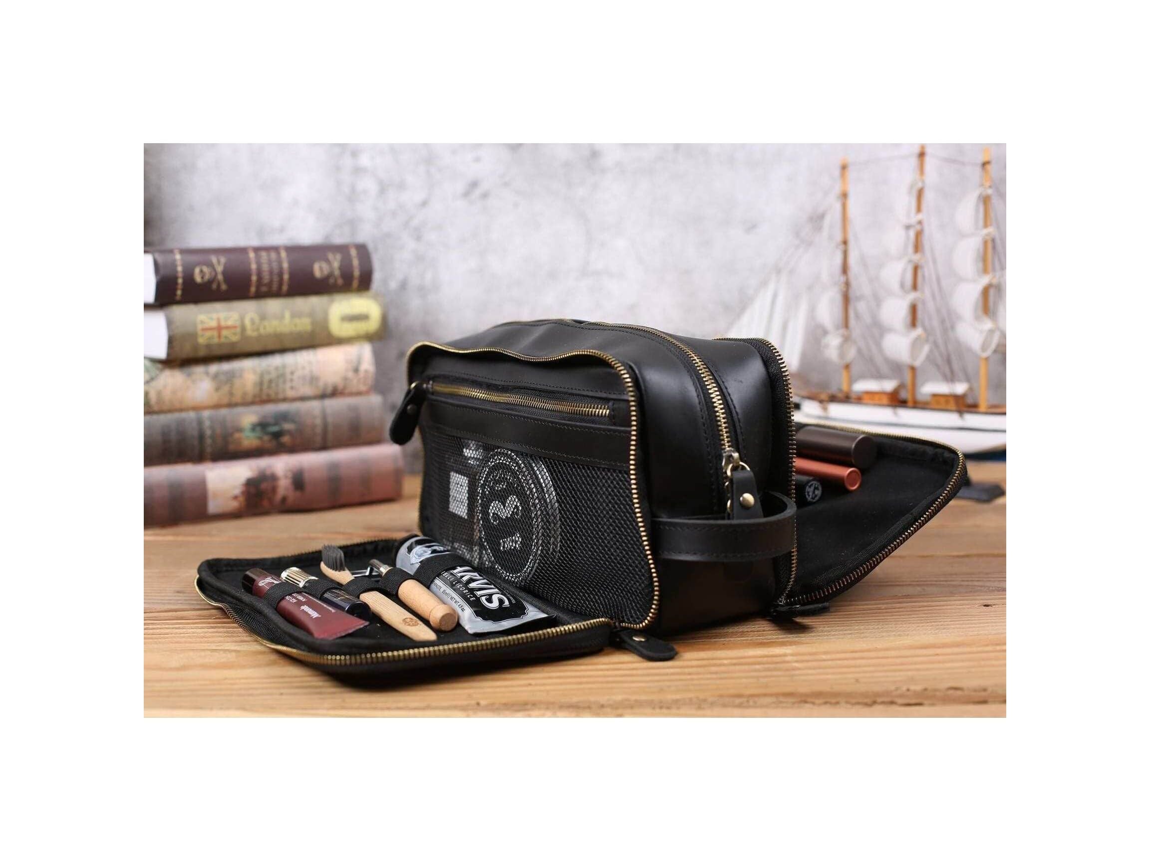 Personalized Leather Toiletry Bag for Groomsmen, Waterproof Leather Dopp Kit, Men's Shaving Kit, Christmas Gift