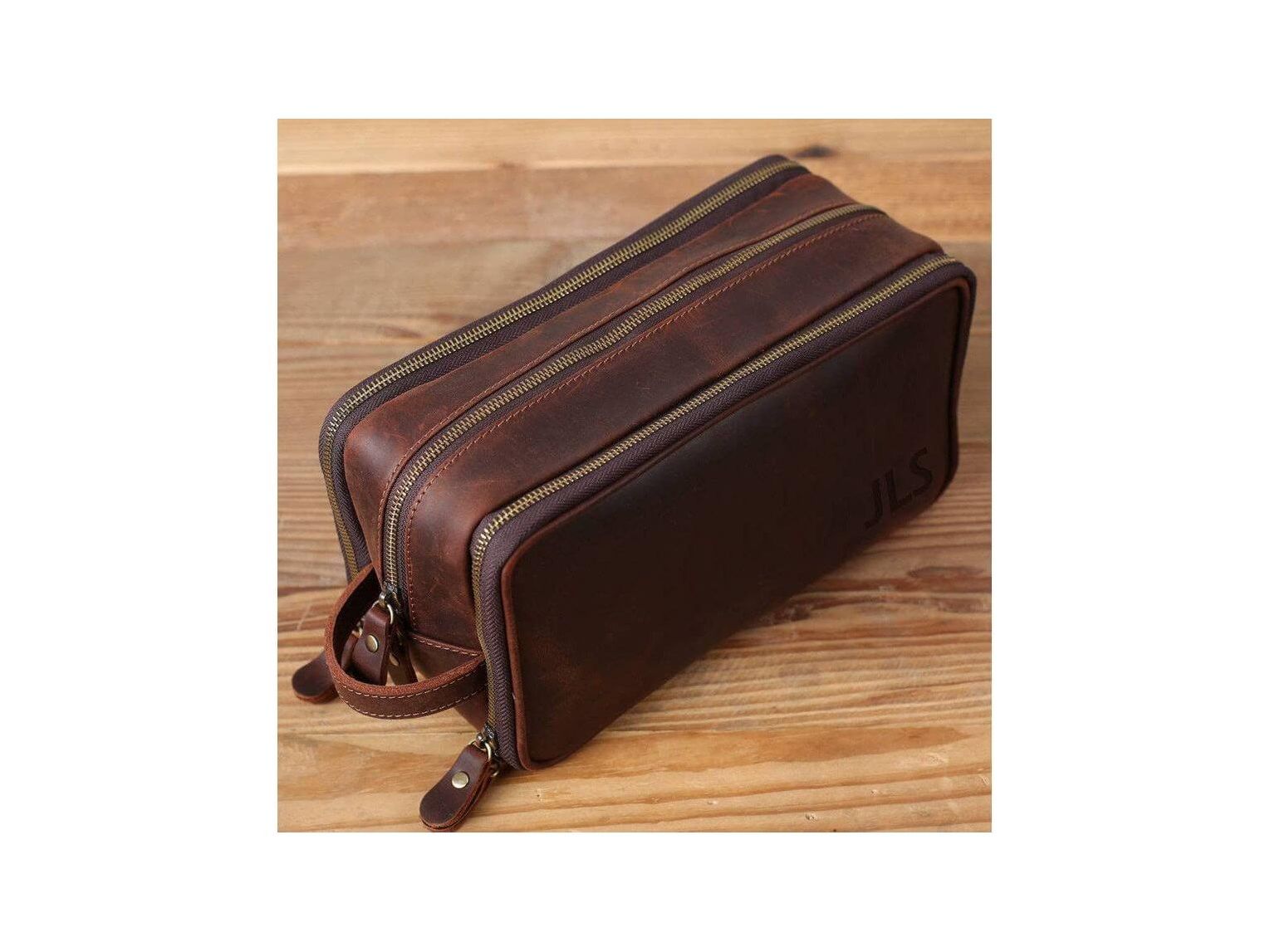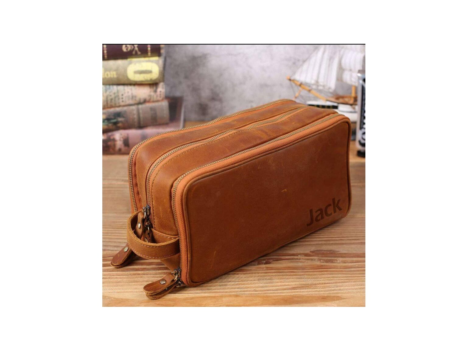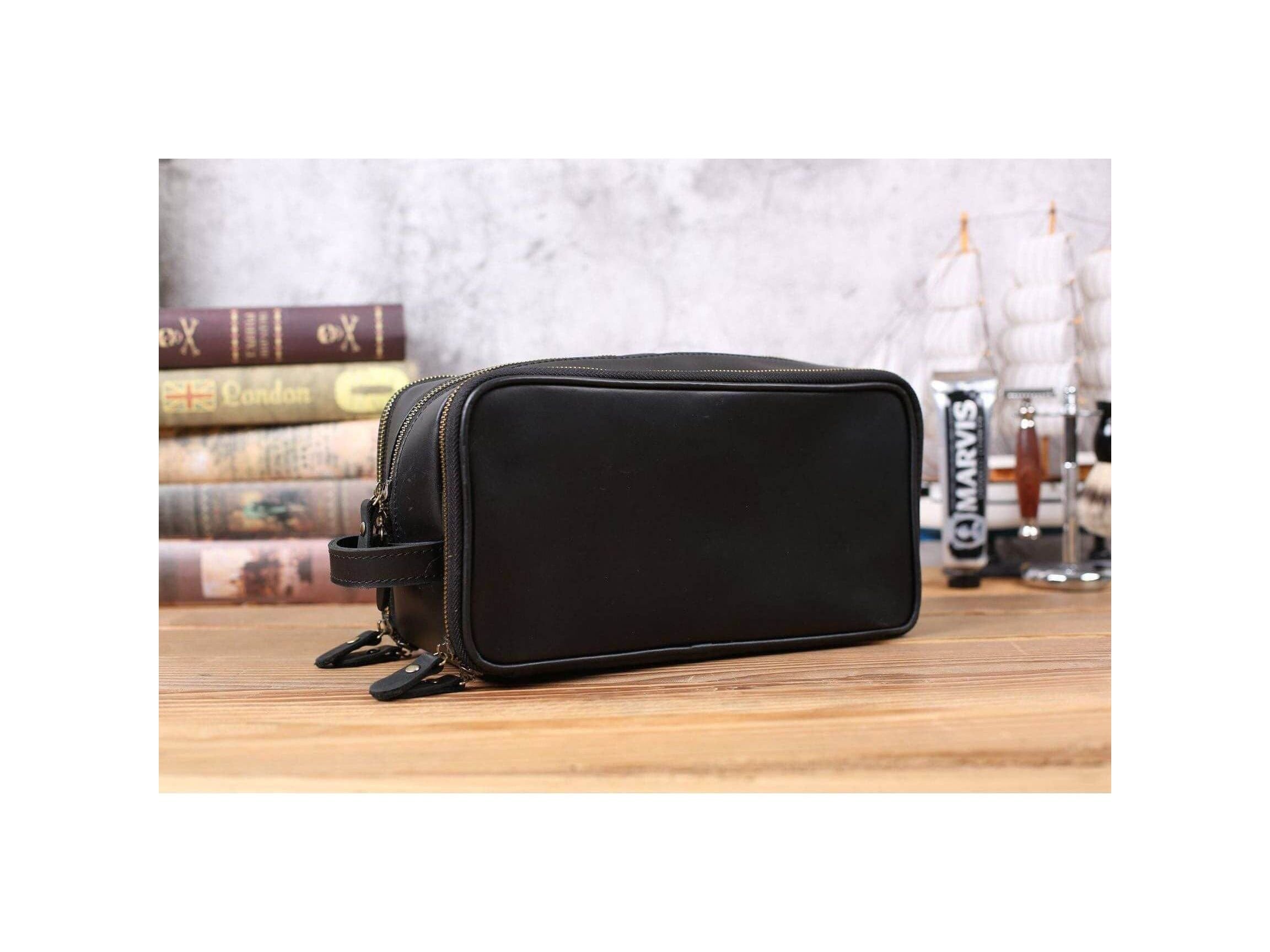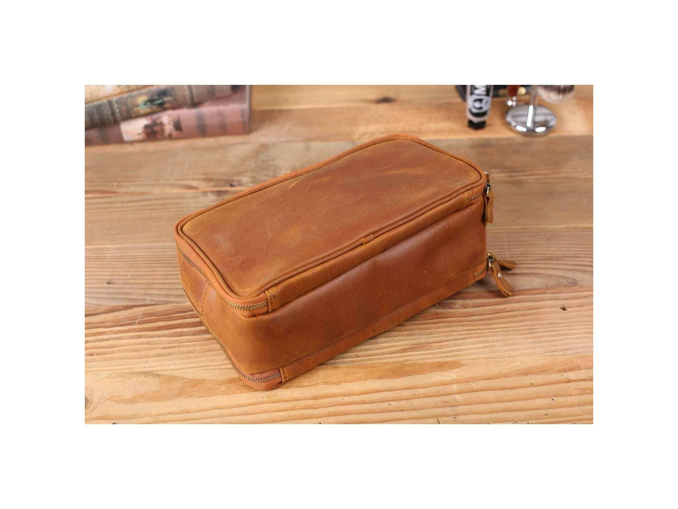 Personalized Leather Toiletry Bag for Groomsmen, Waterproof Leather Dopp Kit, Men's Shaving Kit, Christmas Gift