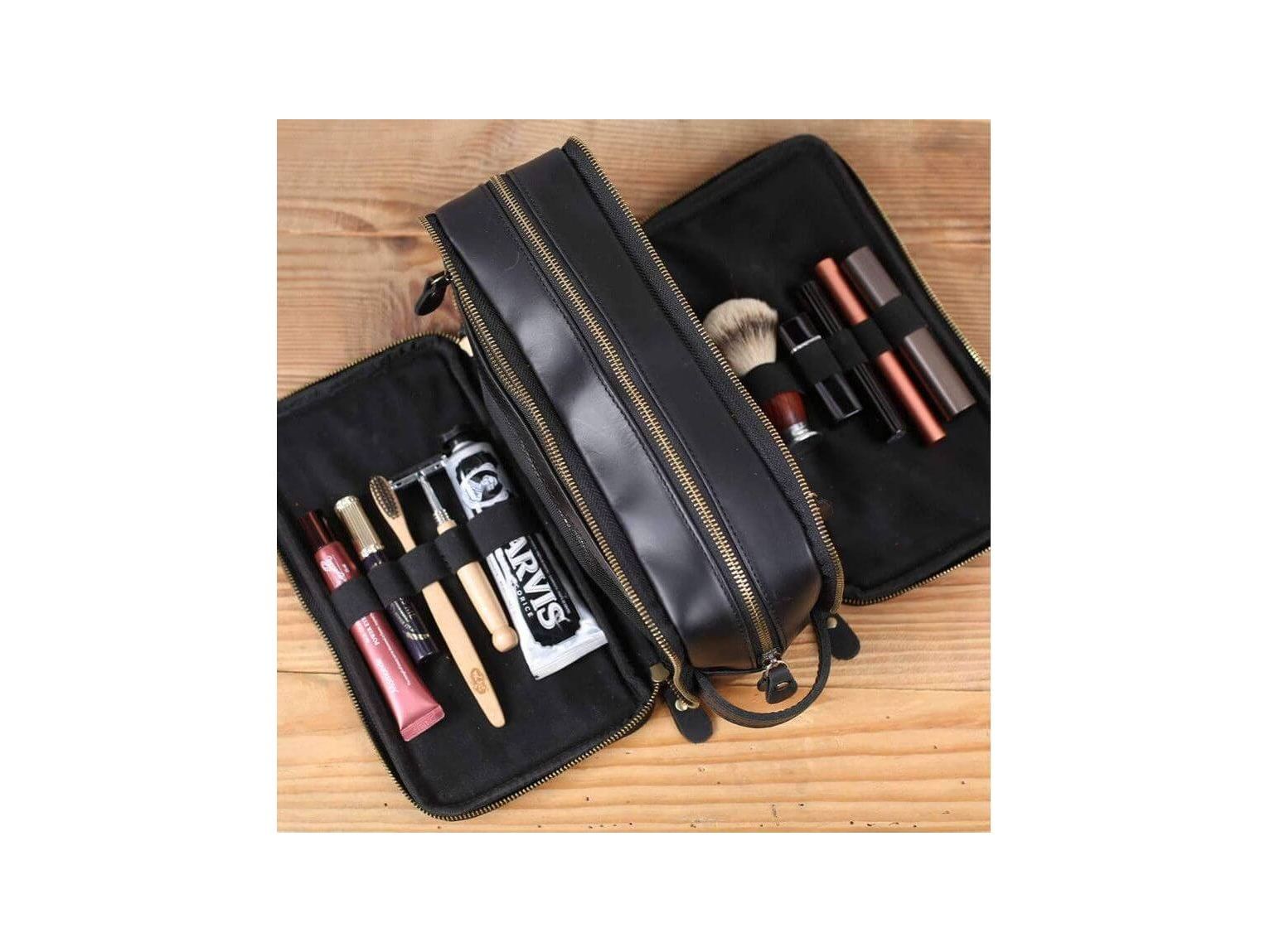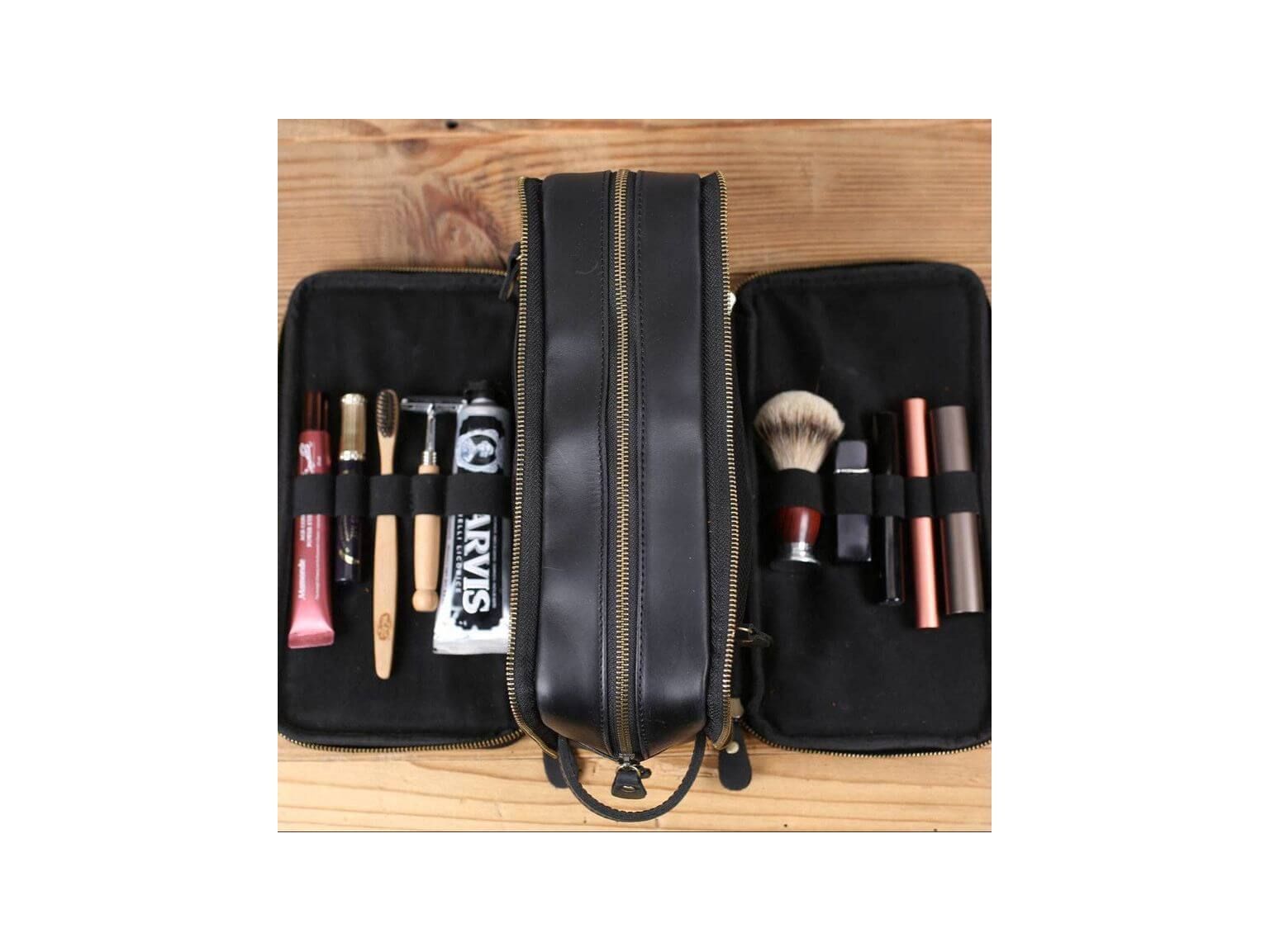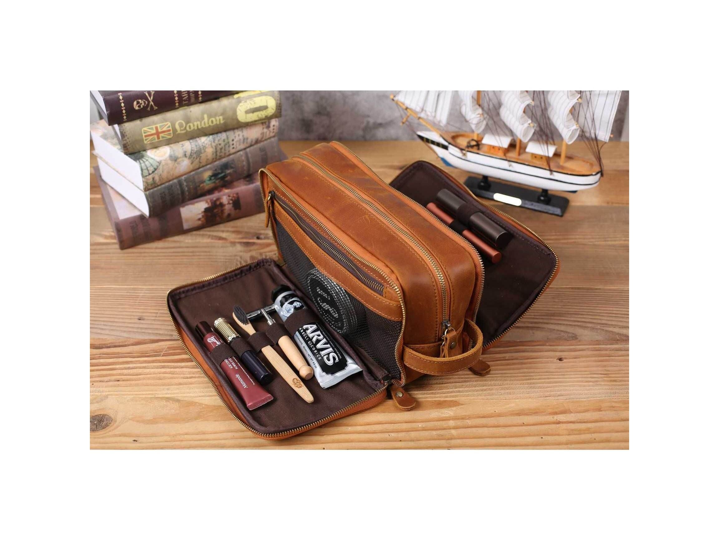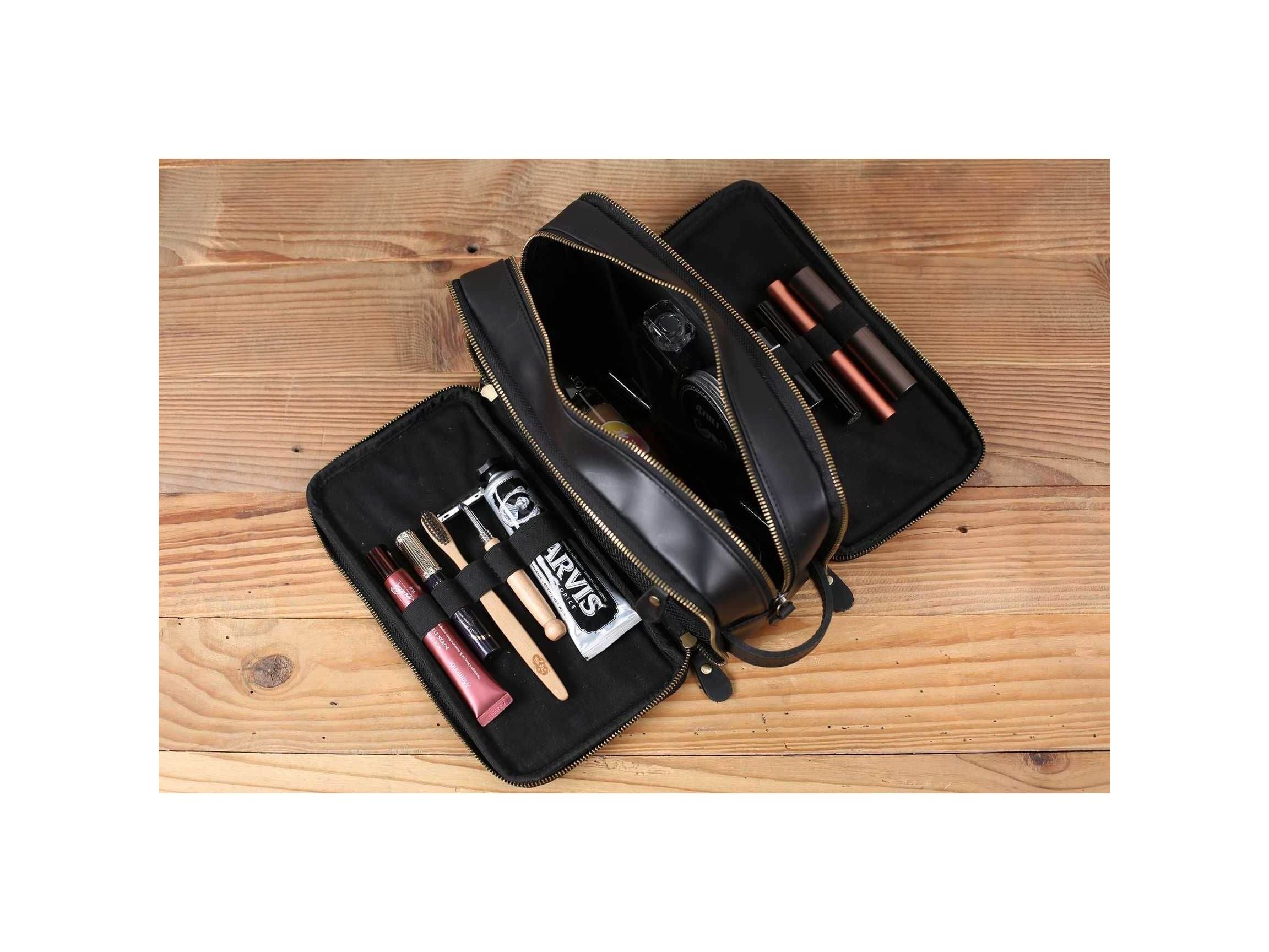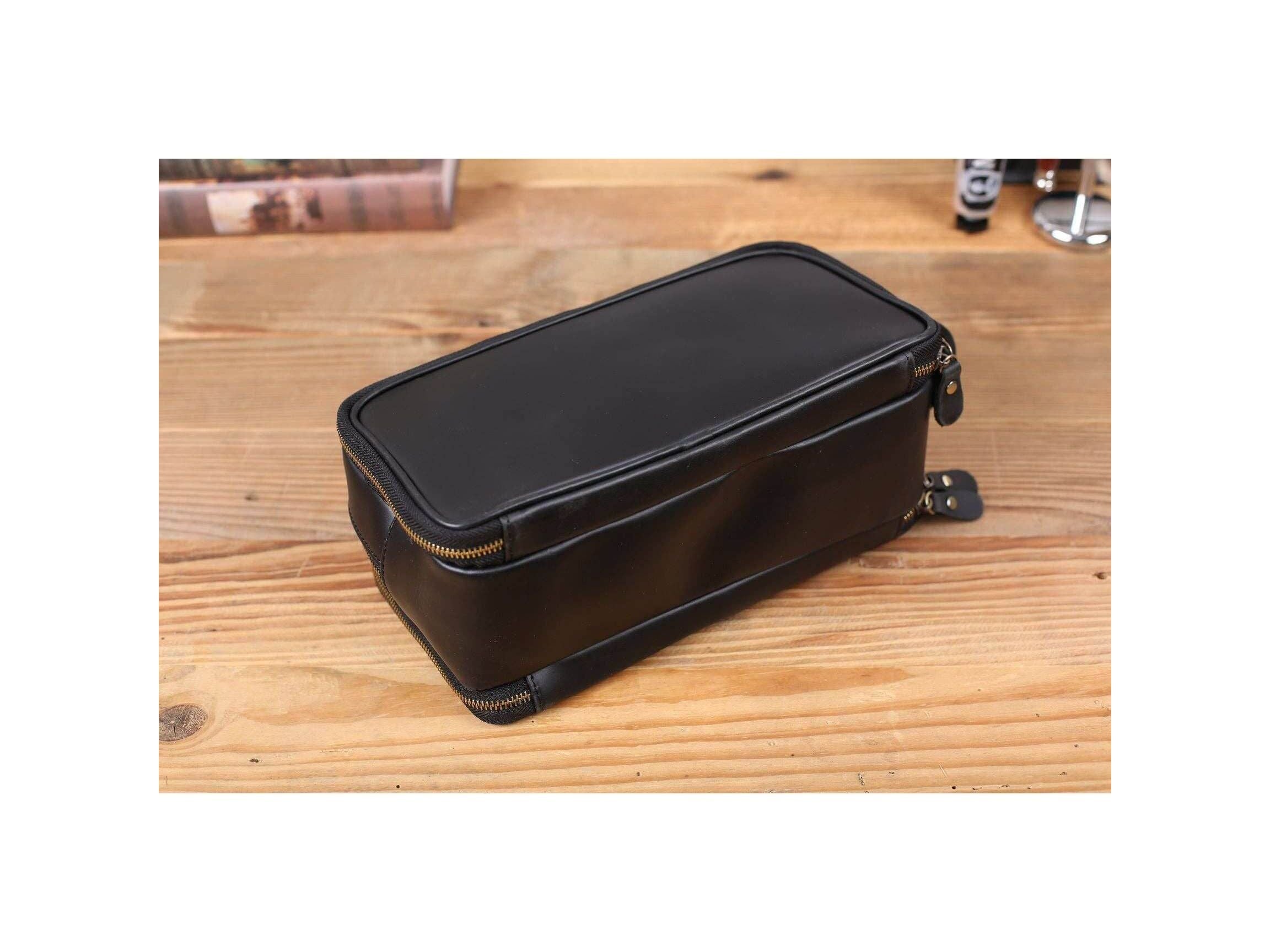Personalized Leather Toiletry Bag for Groomsmen, Waterproof Leather Dopp Kit, Men's Shaving Kit, Christmas Gift