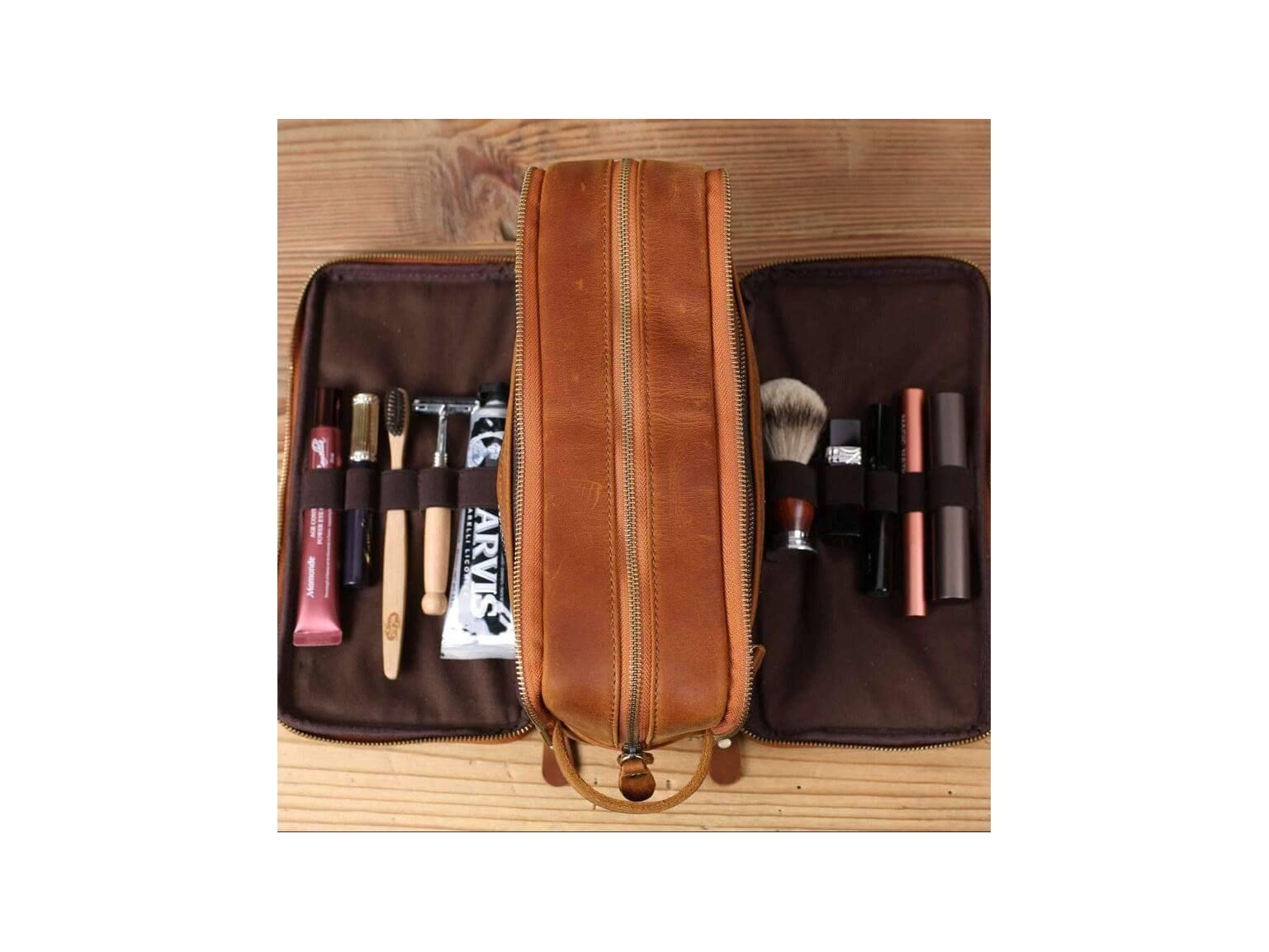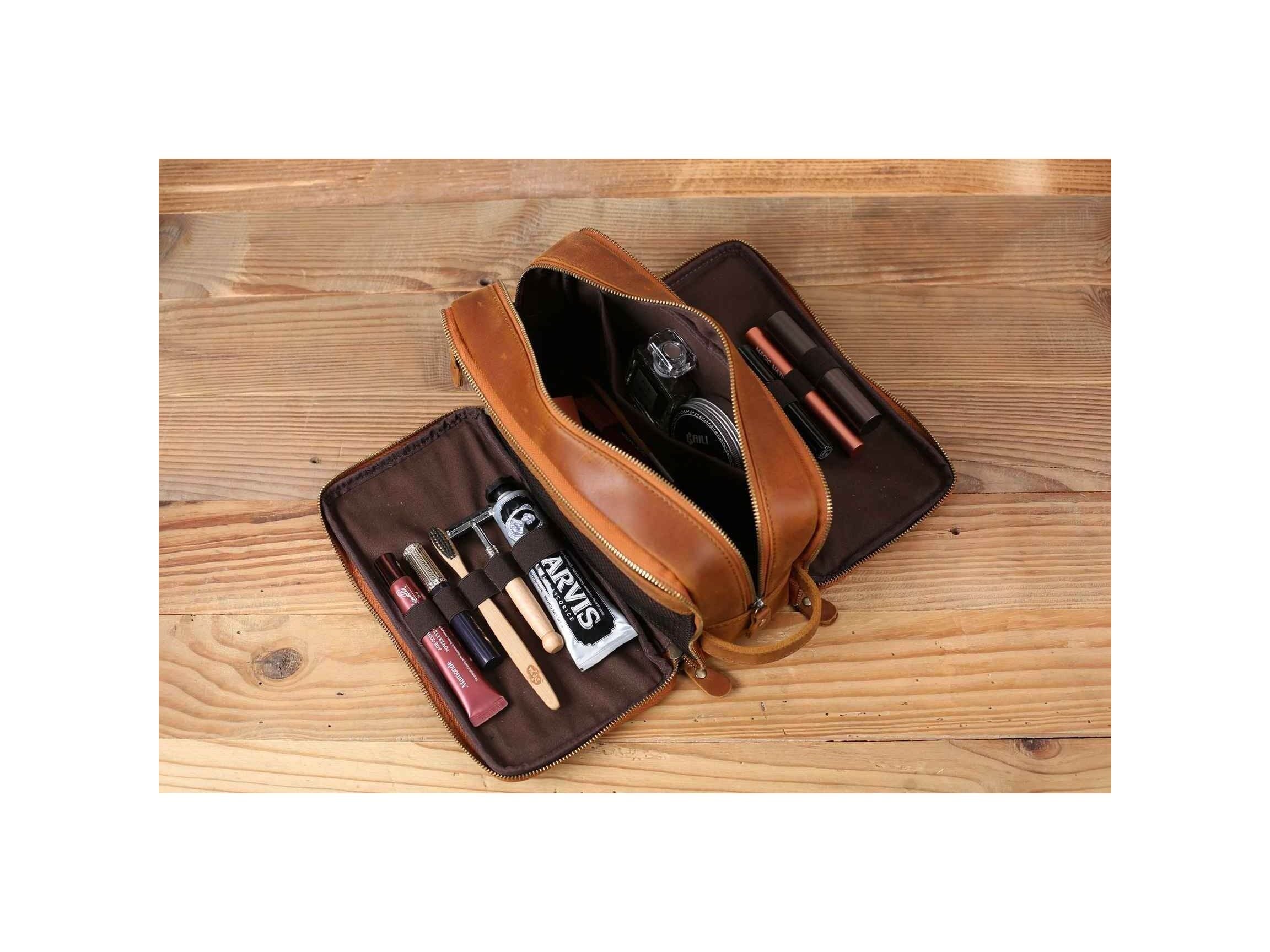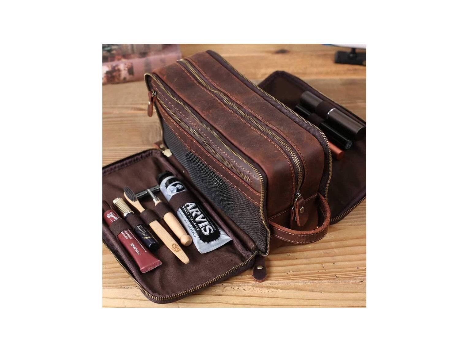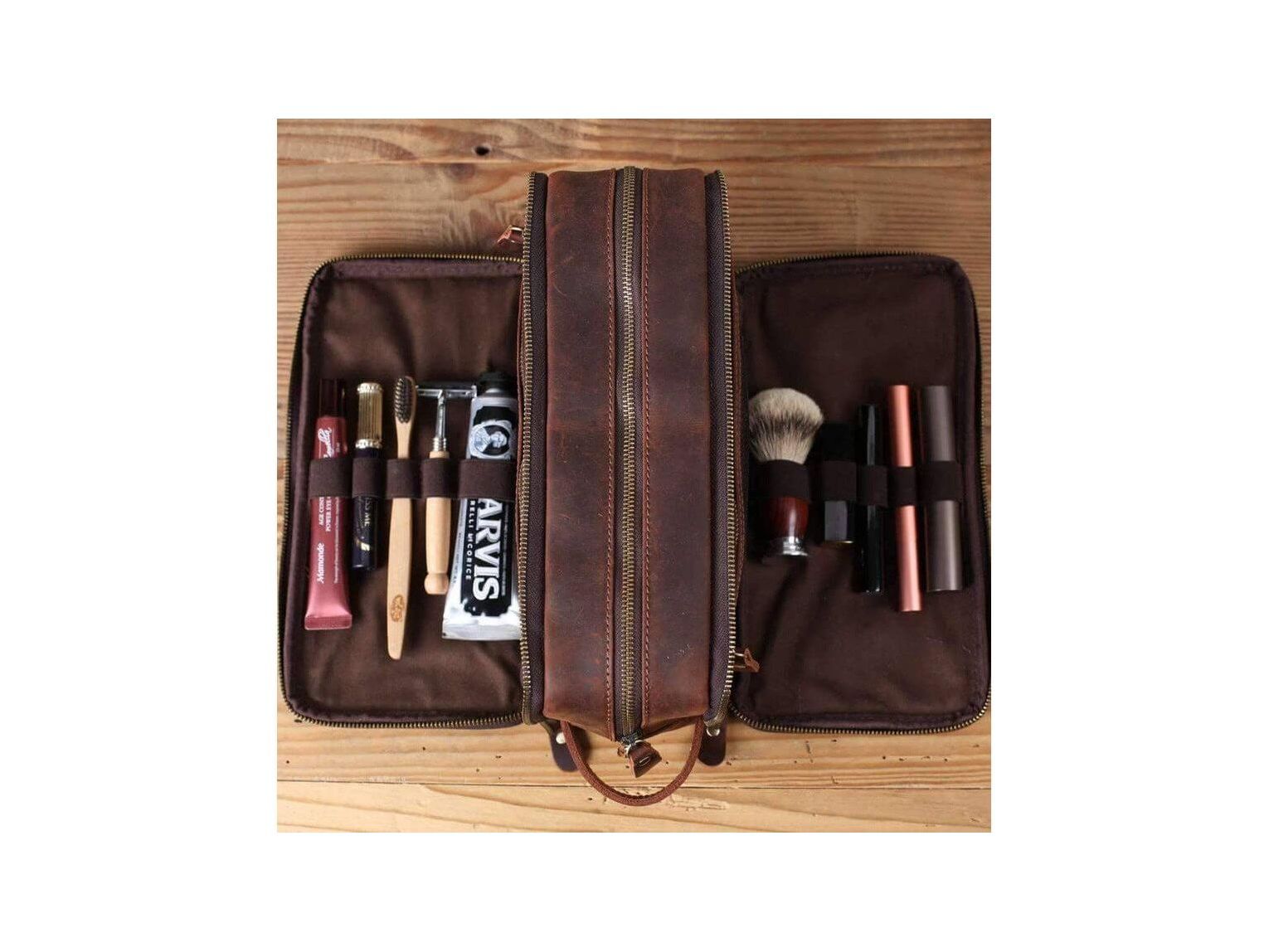 Personalized Leather Toiletry Bag for Groomsmen, Waterproof Leather Dopp Kit, Men's Shaving Kit, Christmas Gift