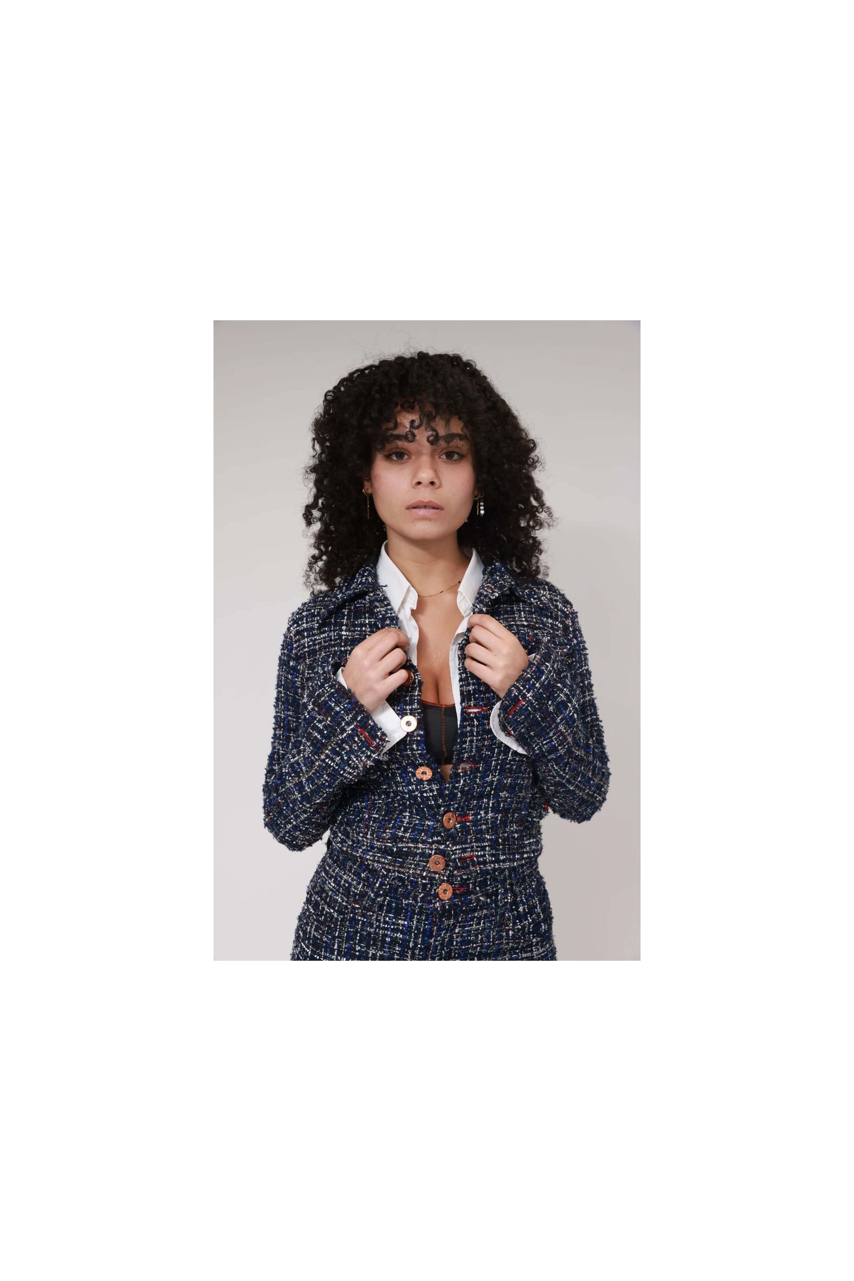 Embrace timeless elegance with the Little Jacket Tweedy. Its refined cut and high-quality tweed fabric offer a chic, structured look, perfect for enhancing any outfit. Ideal for adding a sophisticated touch to your everyday style, this jacket combines comfort and modernity with a neat finish. A must-have for those moments when elegance makes all the difference.