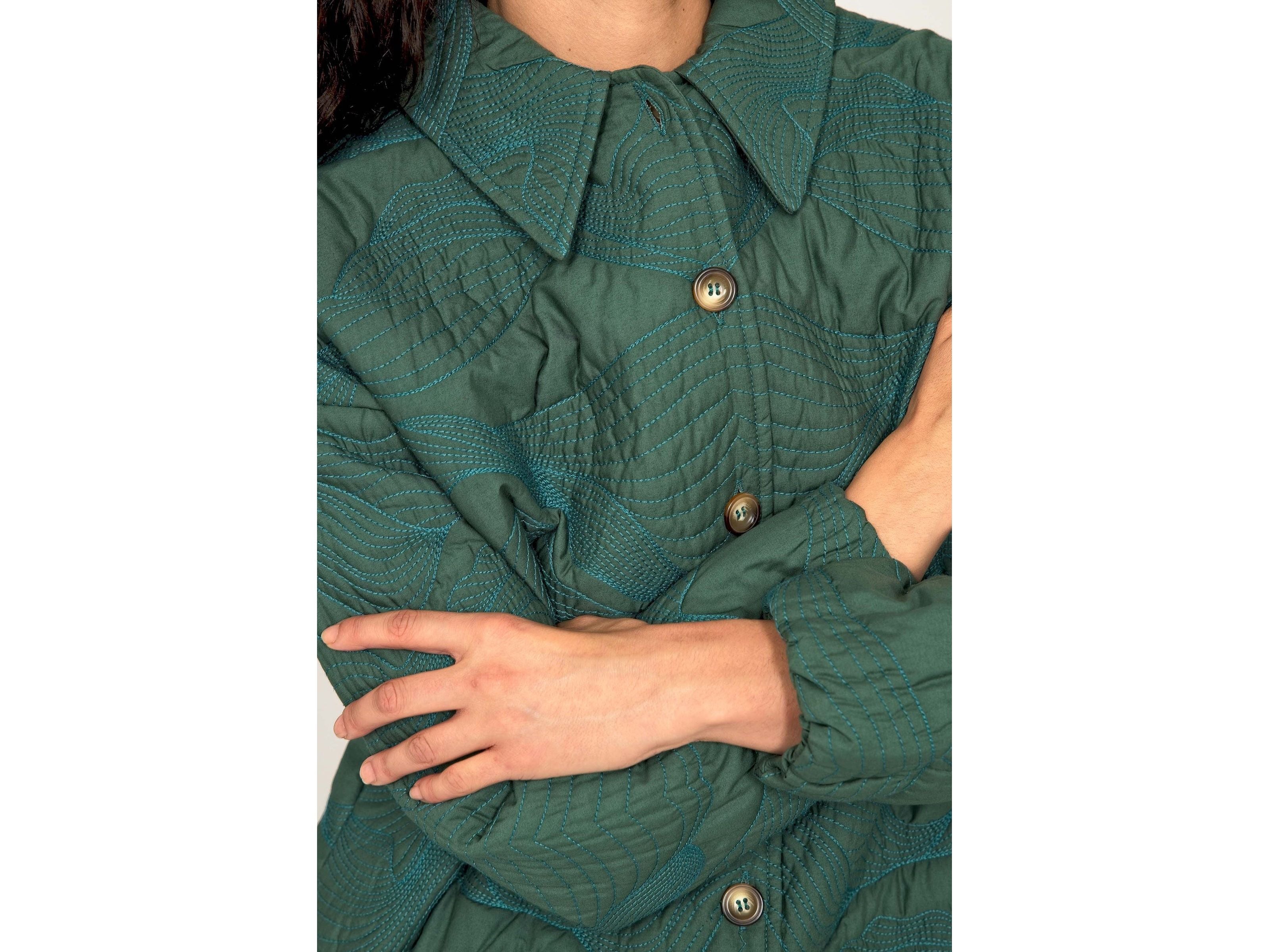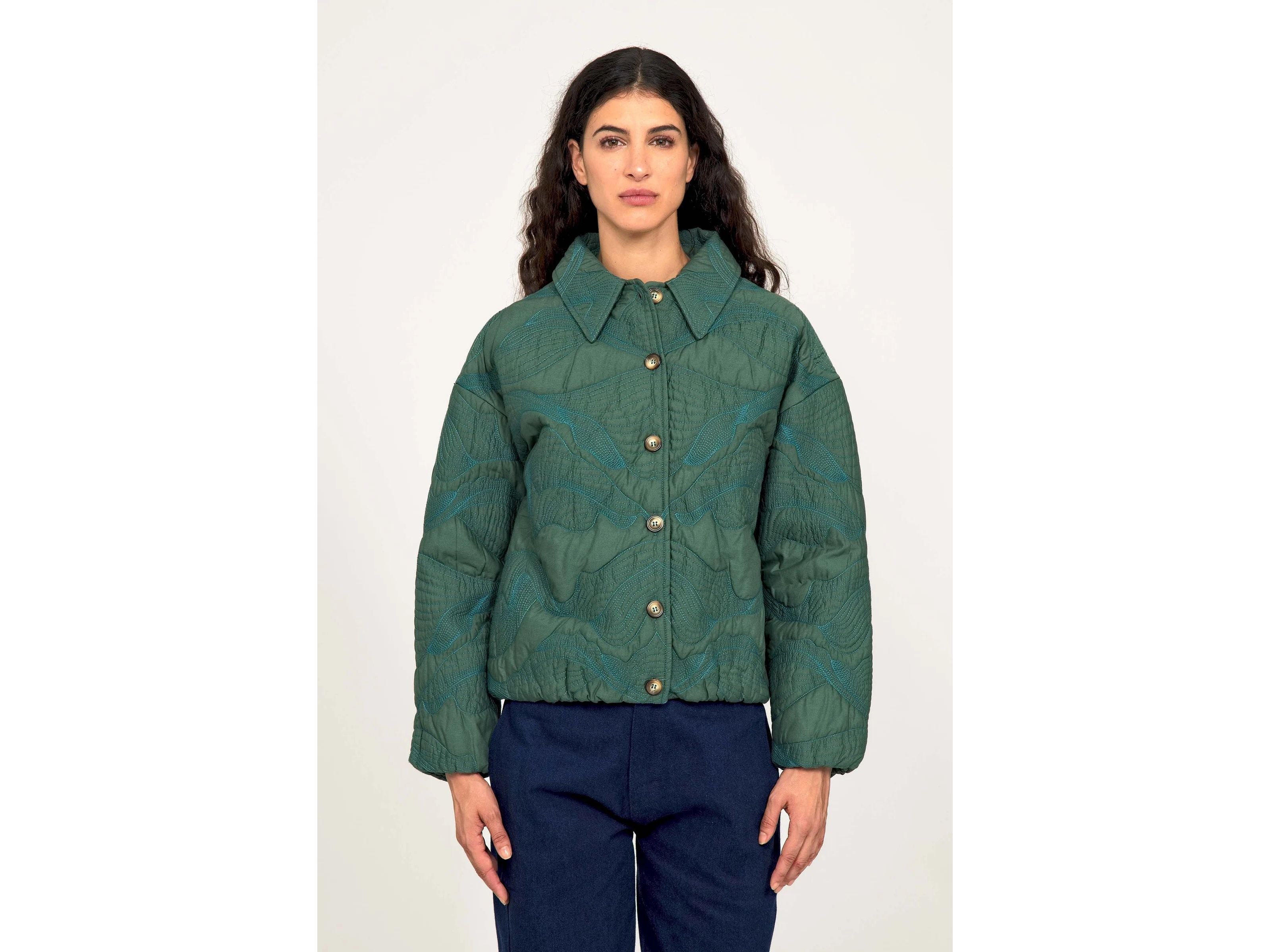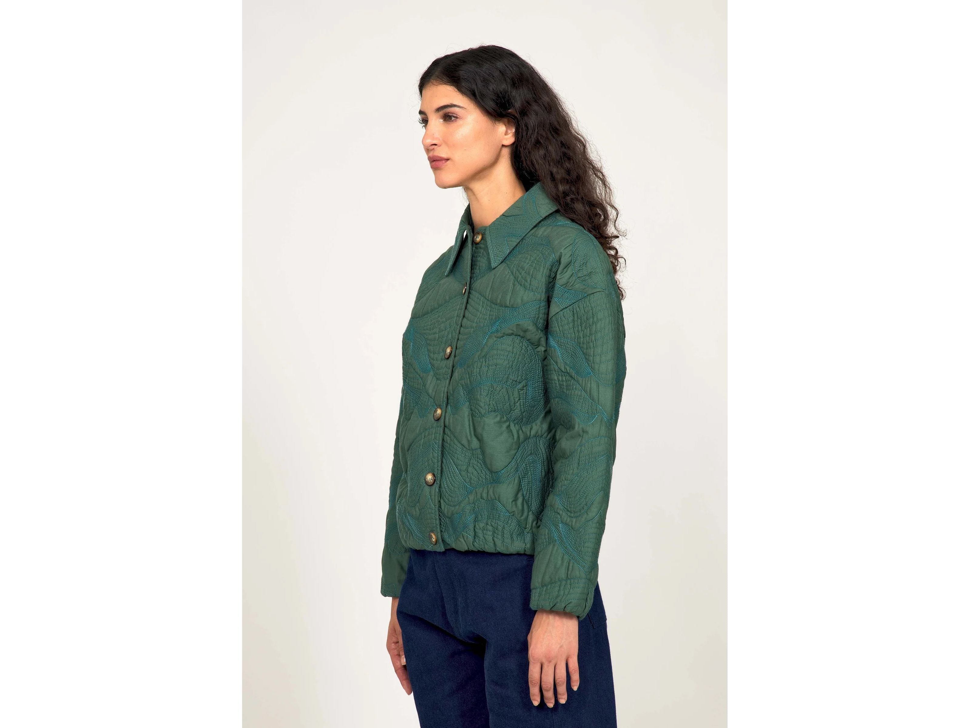 GREEN QUILTED JACKET WITH WAVE EMBROIDERY