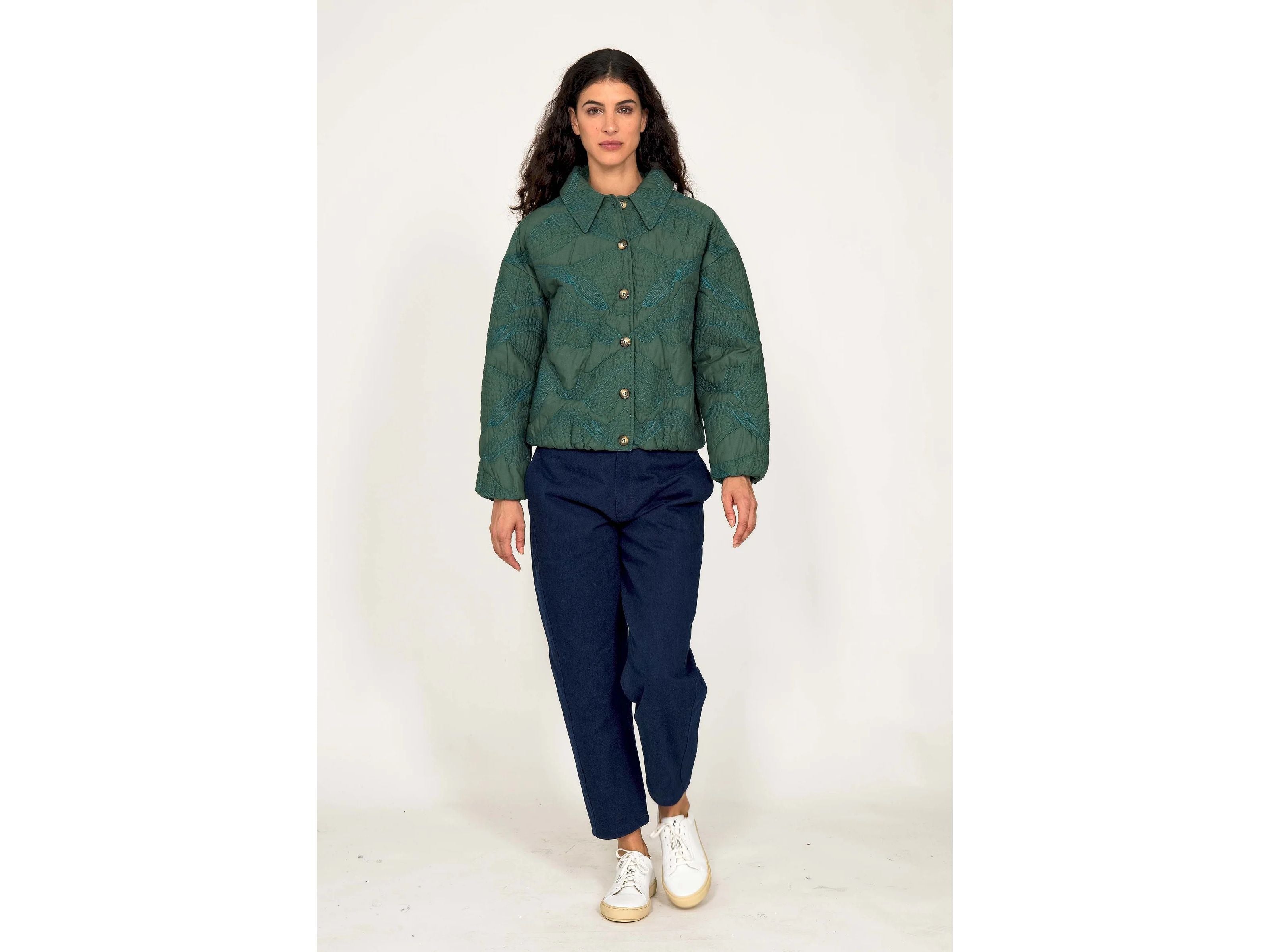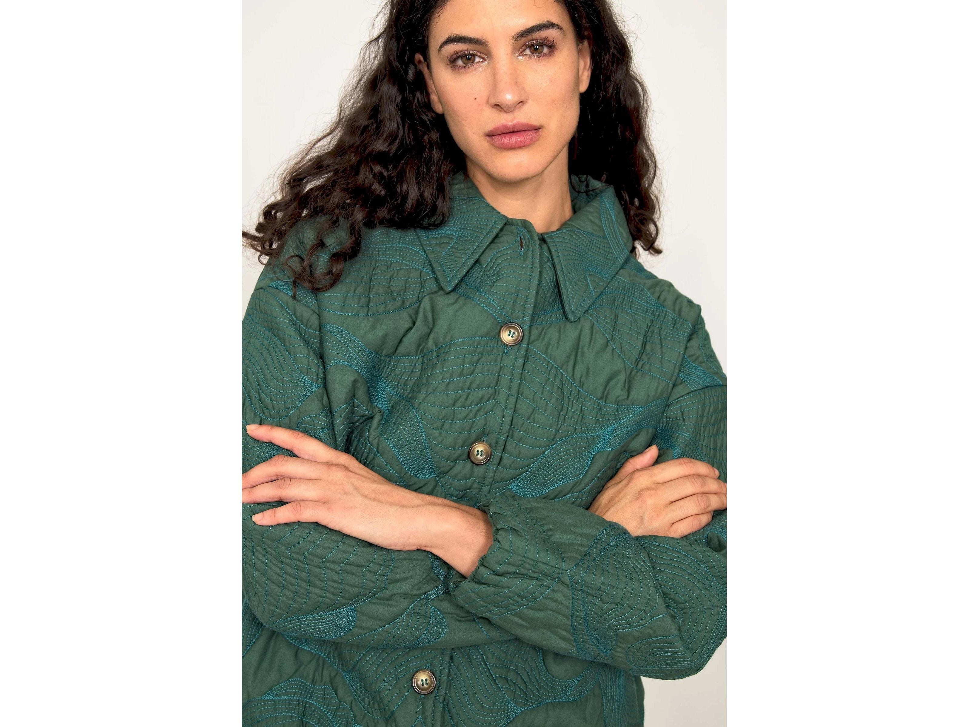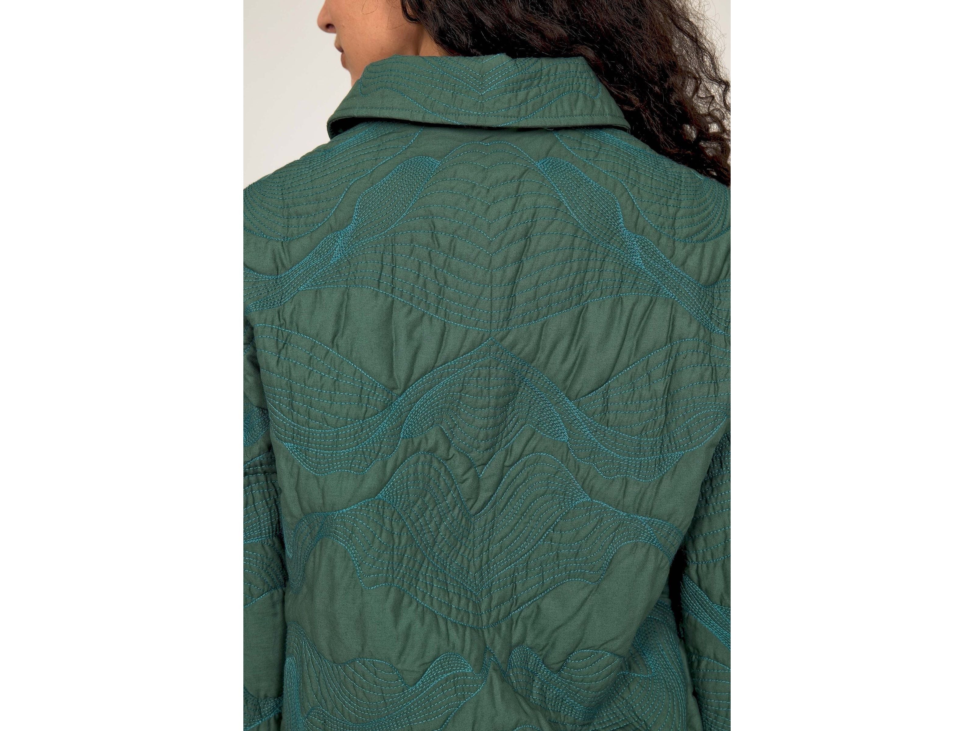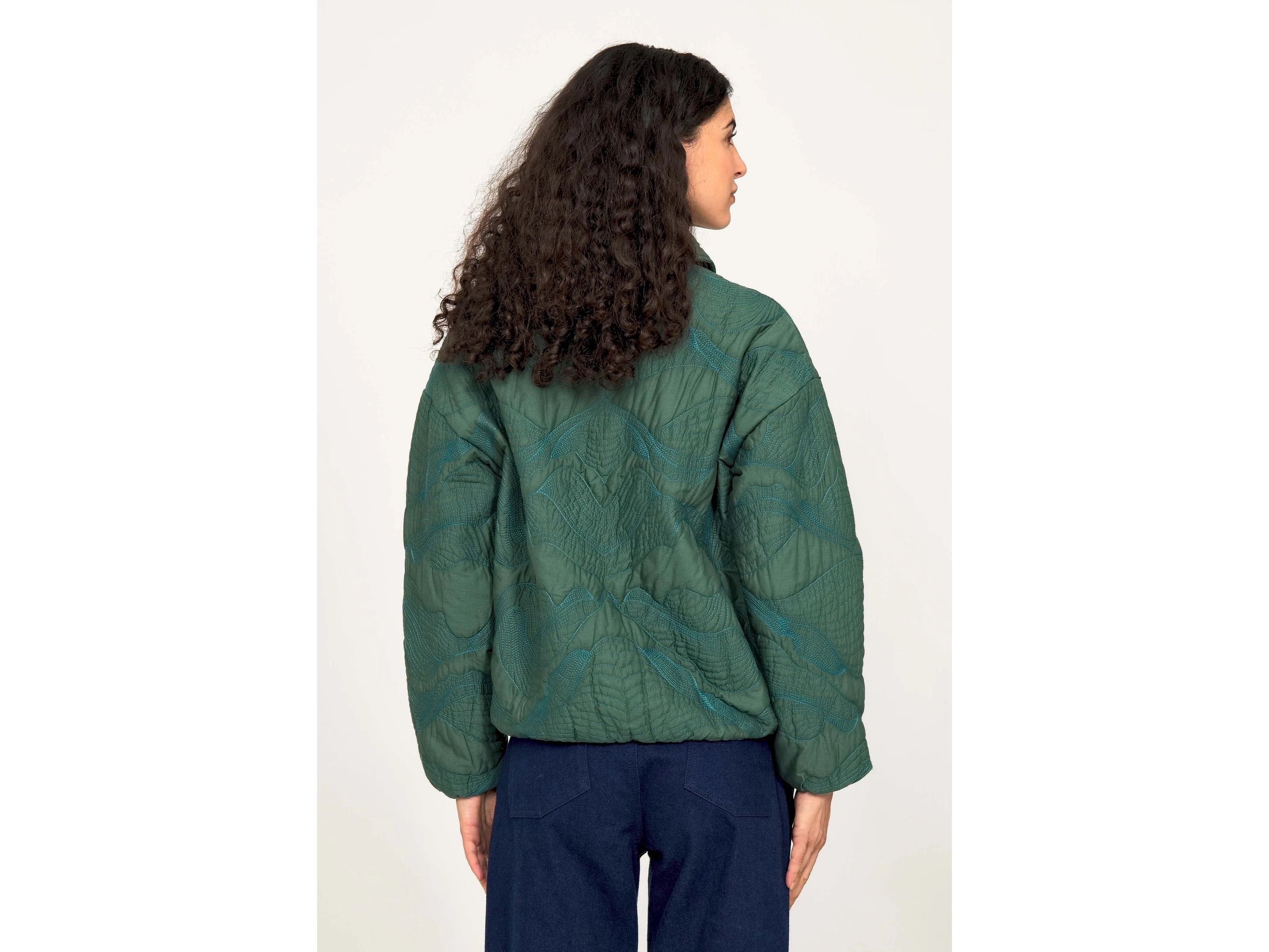 GREEN QUILTED JACKET WITH WAVE EMBROIDERY