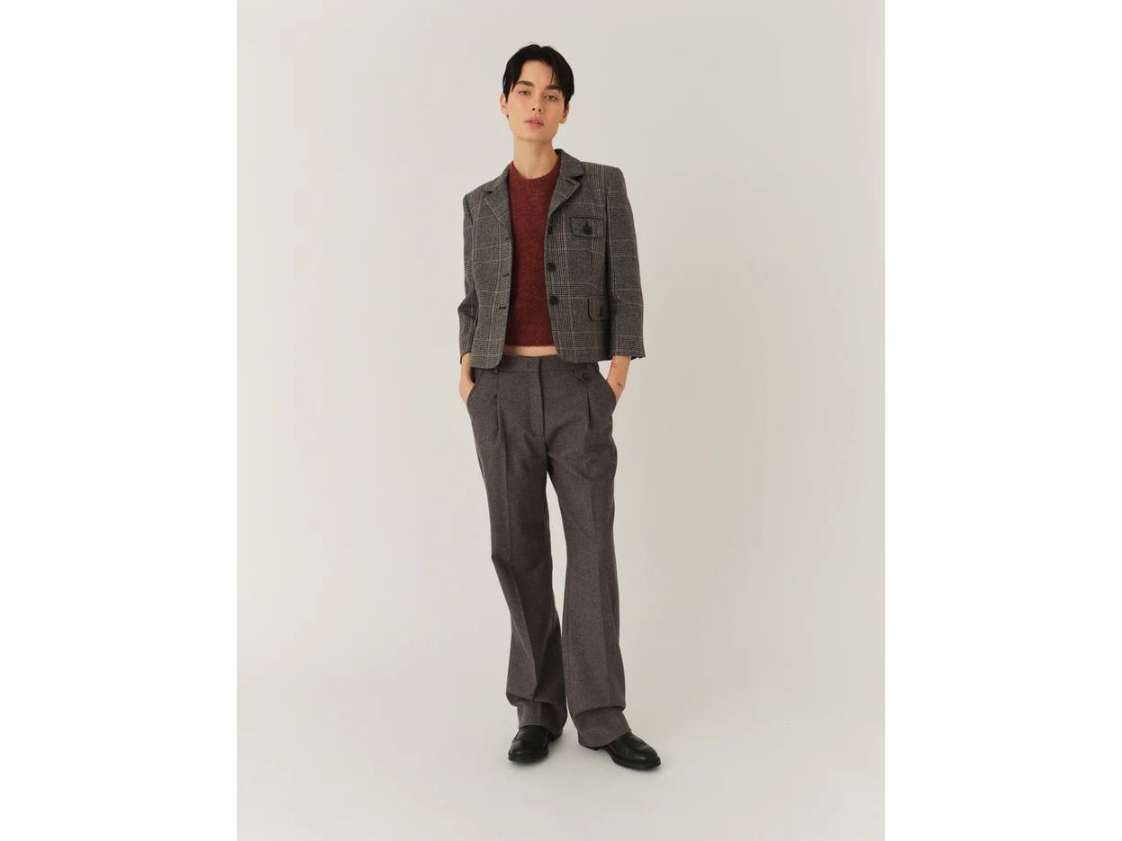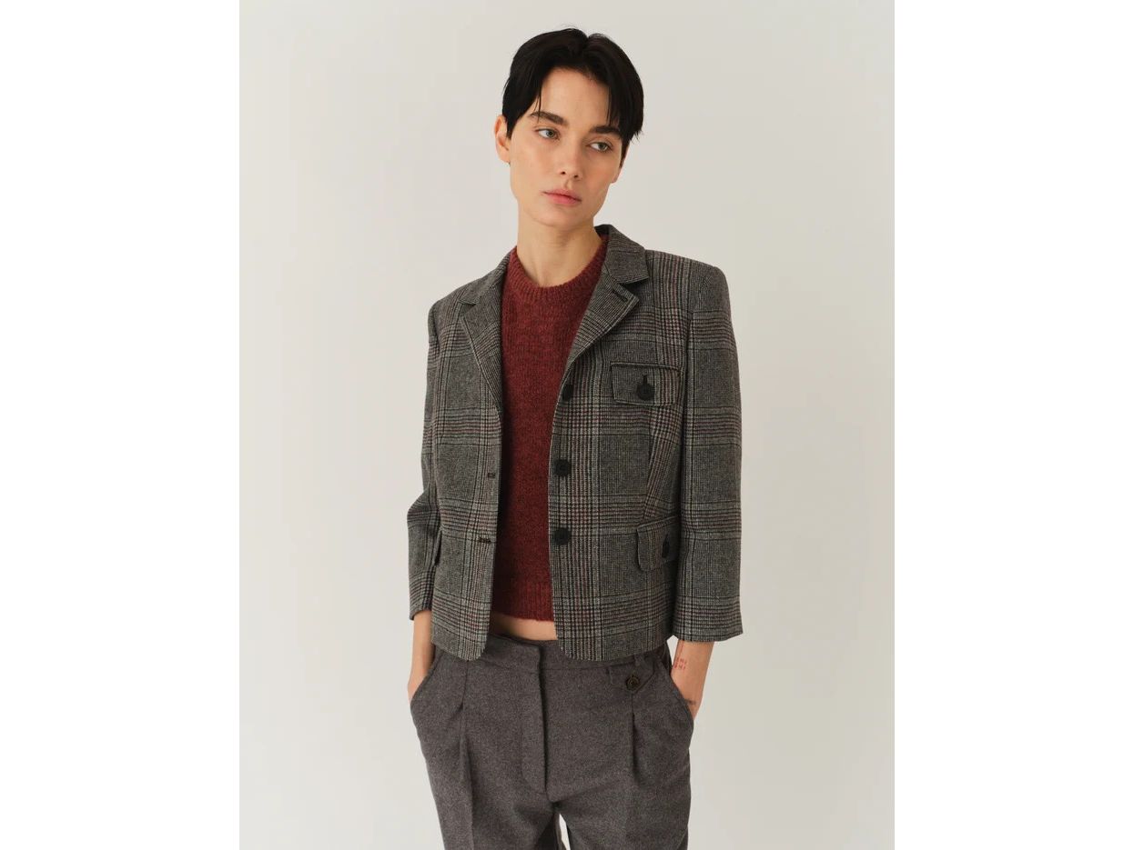 Cette veste cintrée et courte crée une silhouette féminine élégante. Son motif à carreaux classique, ses poches avant et ses boutons raffinés apportent sophistication et style.