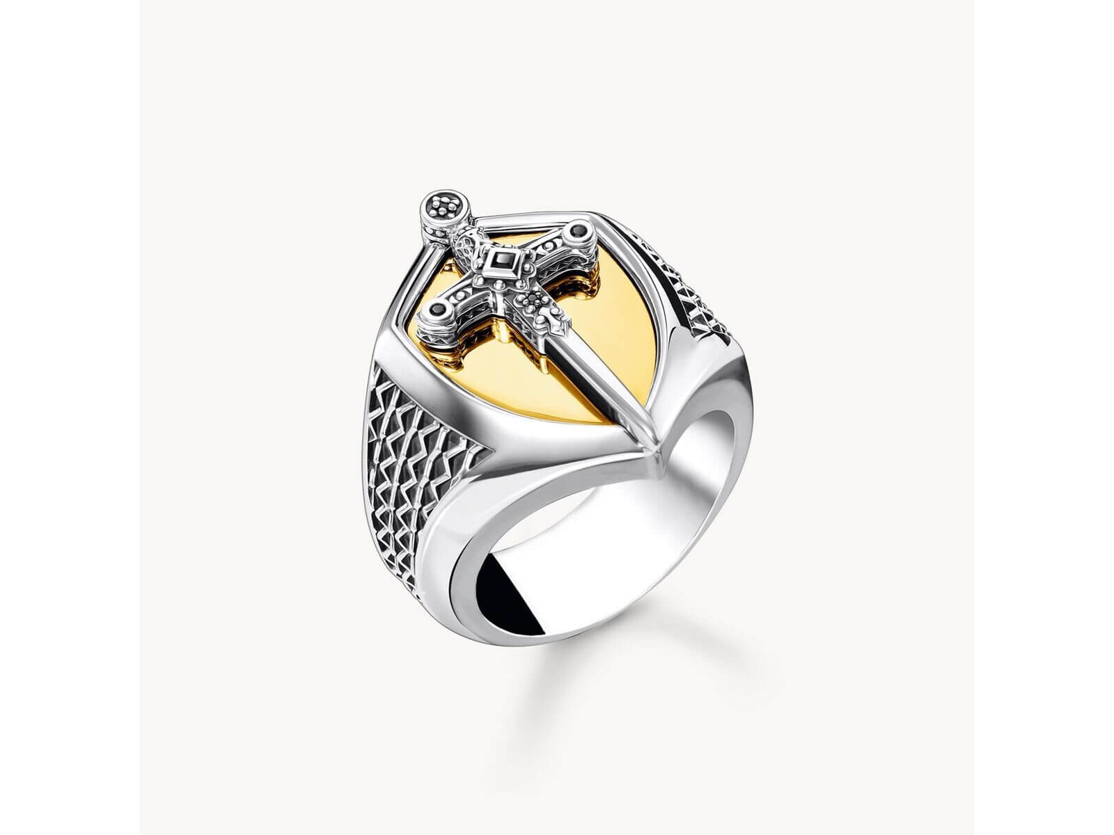 Découvrez la bague épée or, un bijou unique alliant élégance et symbole de puissance. Conçue en argent sterling 925 noirci, elle se pare d’oxydes de zirconium noirs sur un insert plaqué or jaune, rehaussée d’une gravure fine THOMAS SABO. Inspirée de la collection Rebel at Heart, cette chevalière incarne force et dignité, offrant un charisme exceptionnel à votre style. Un accessoire sophistiqué qui fascine par son design mythique et sa qualité remarquable