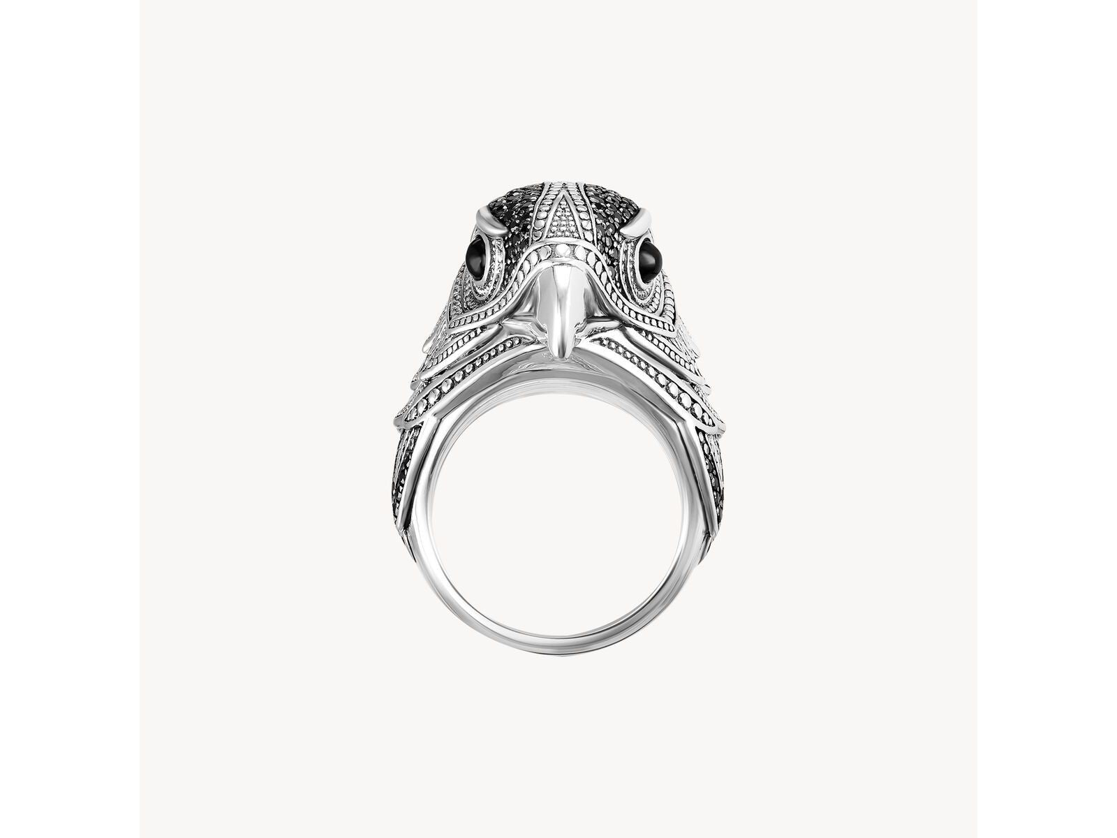 Apportez une touche d’audace et d’élégance à votre style avec cette bague faucon. Ses yeux en onyx brillants et son plumage délicatement scintillant captivent le regard, faisant de ce bijou un accessoire expressif et unique. Disponible uniquement sur nos boutiques en ligne et physiques THOMAS SABO, elle souligne avec finesse votre personnalité
