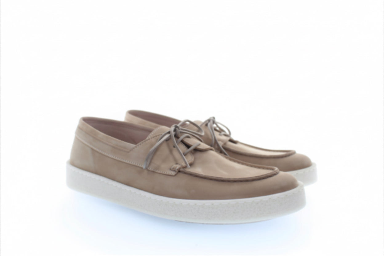 Élégant loafer aux lignes épurées, doté d'une semelle blanche imposante qui contraste magnifiquement avec la teinte naturelle Paik Sabbia. Les lacets discrets ajoutent une touche de sophistication à ce classique intemporel. Parfait pour une allure décontractée-chic, cette chaussure allie confort et raffinement minimaliste, idéale pour les garde-robes premium en quête de pièces polyvalentes.