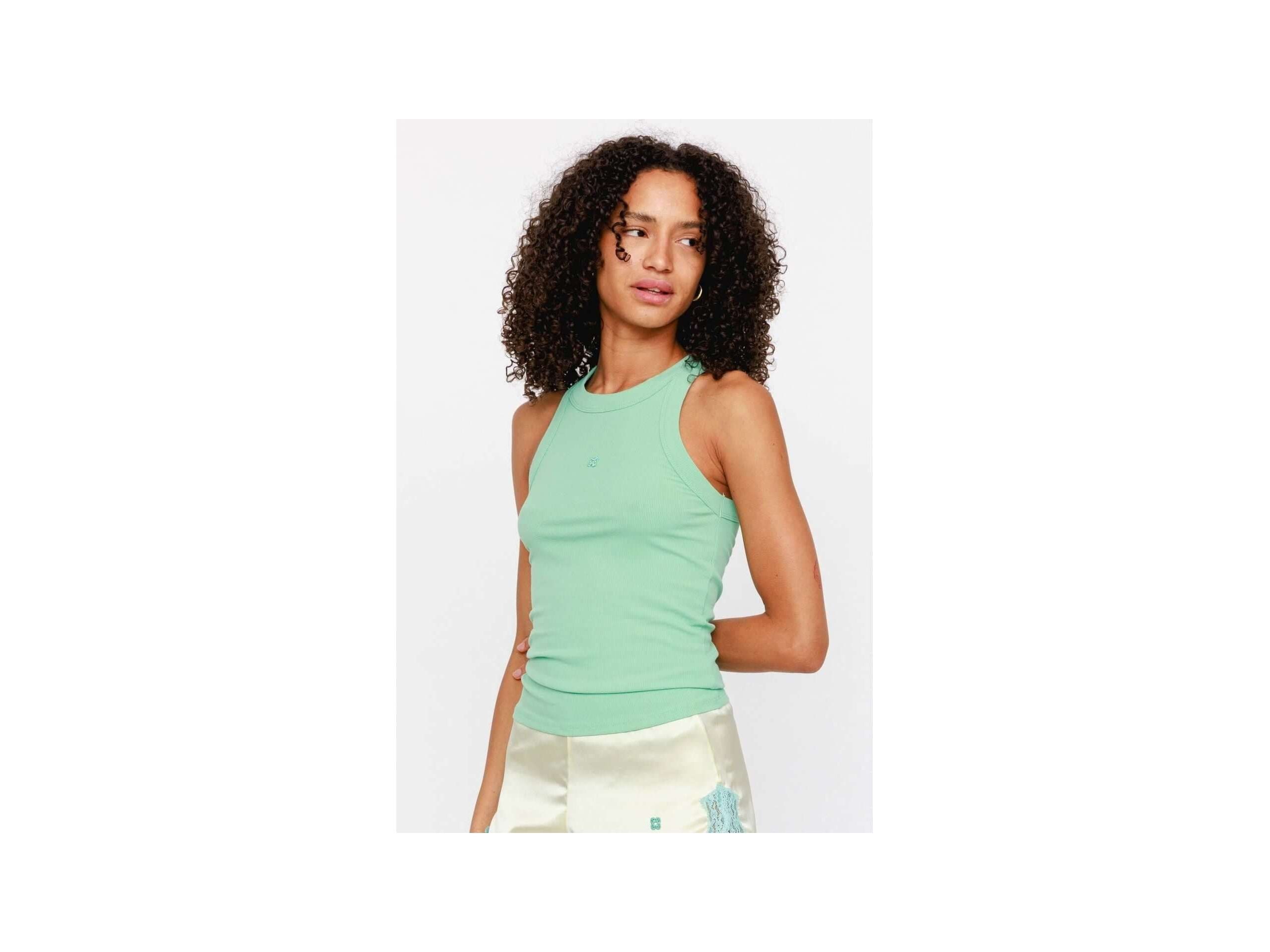 Débardeur en coton côtelé stretch léger, une matière parfaite avec une coupe ajustée pour épouser parfaitement vos formes. Broderie logo Vannina Vesperini sur le devant