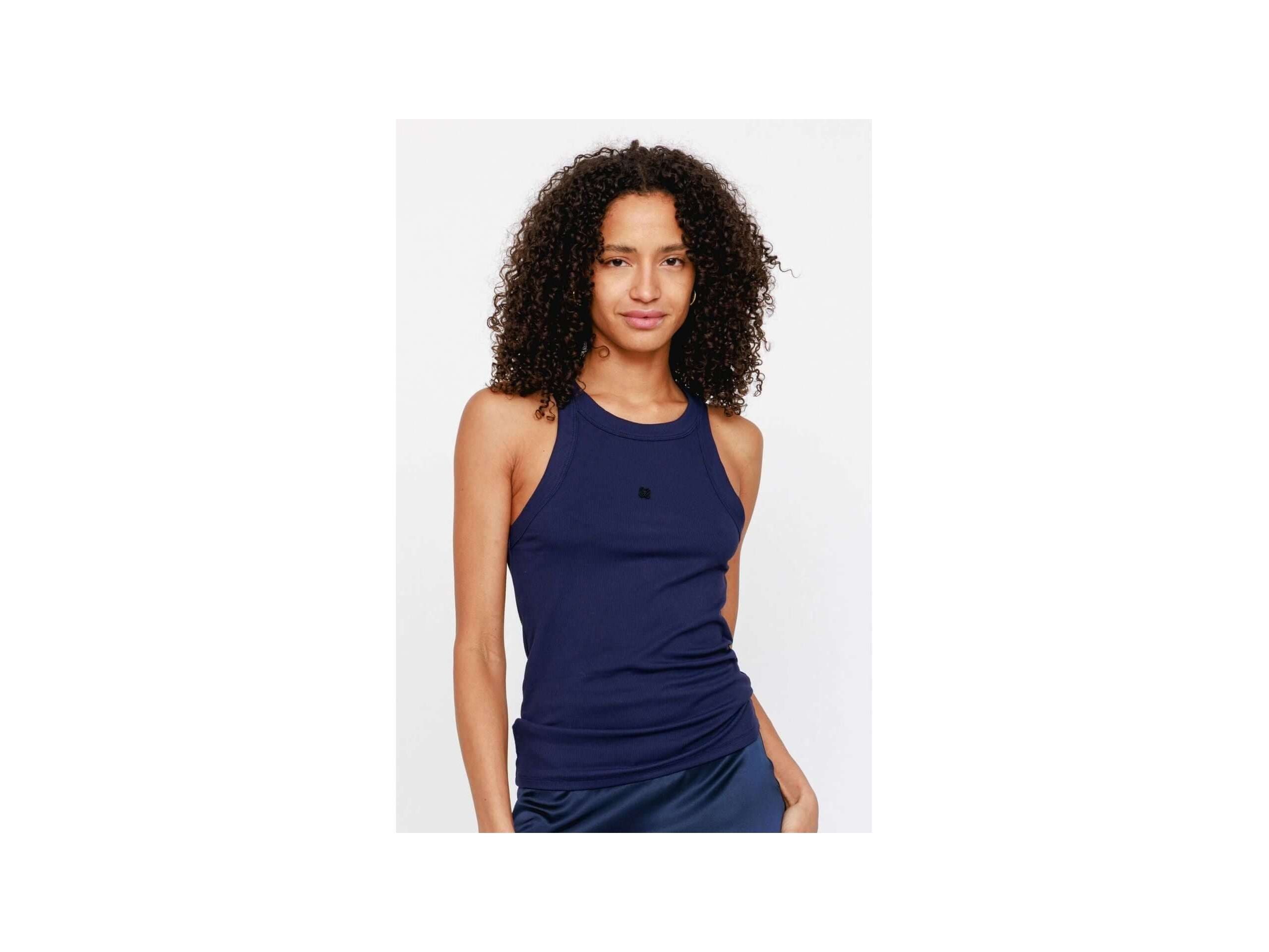 Débardeur en coton côtelé stretch léger, une matière parfaite avec une coupe ajustée pour épouser parfaitement vos formes. Broderie logo Vannina Vesperini sur le devant