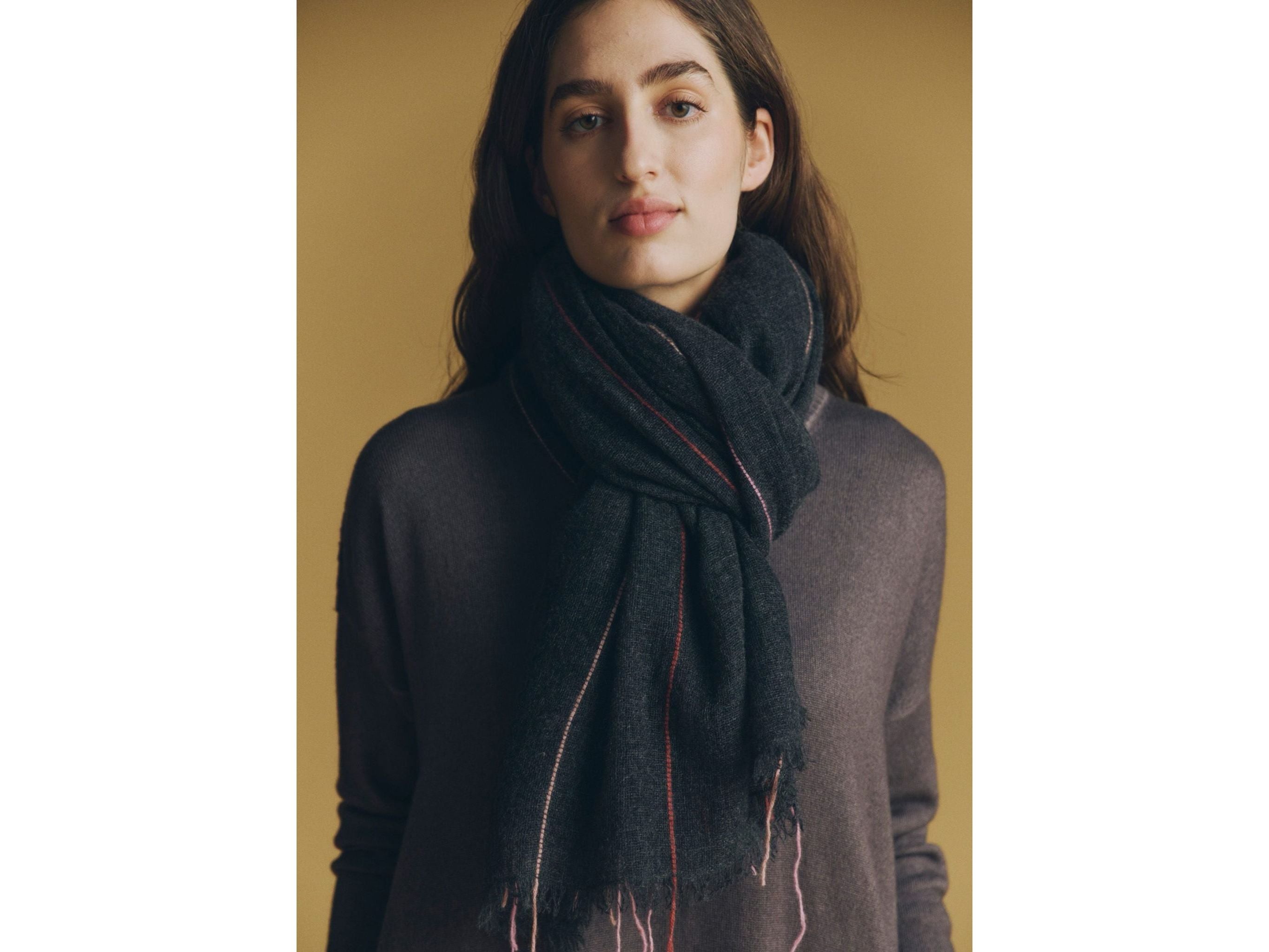 Découvrez l'Écharpe Soho Baby Cashmere, un accessoire d’exception alliant élégance et douceur. Tricotée à la main en pur baby cashmere, elle séduit par son tissage aérien et ses côtes contrastées qui lui apportent du caractère. Ses franges délicates adoucissent les bordures, offrant un style polyvalent qui sublime aussi bien les tenues décontractées que les looks plus formels. Sa finition exclusive patinée intensifie la profondeur des couleurs et rehausse la douceur du fil, pour un confort inégalé. Un incontournable pour enrichir votre garde-robe avec raffinement. 100X200